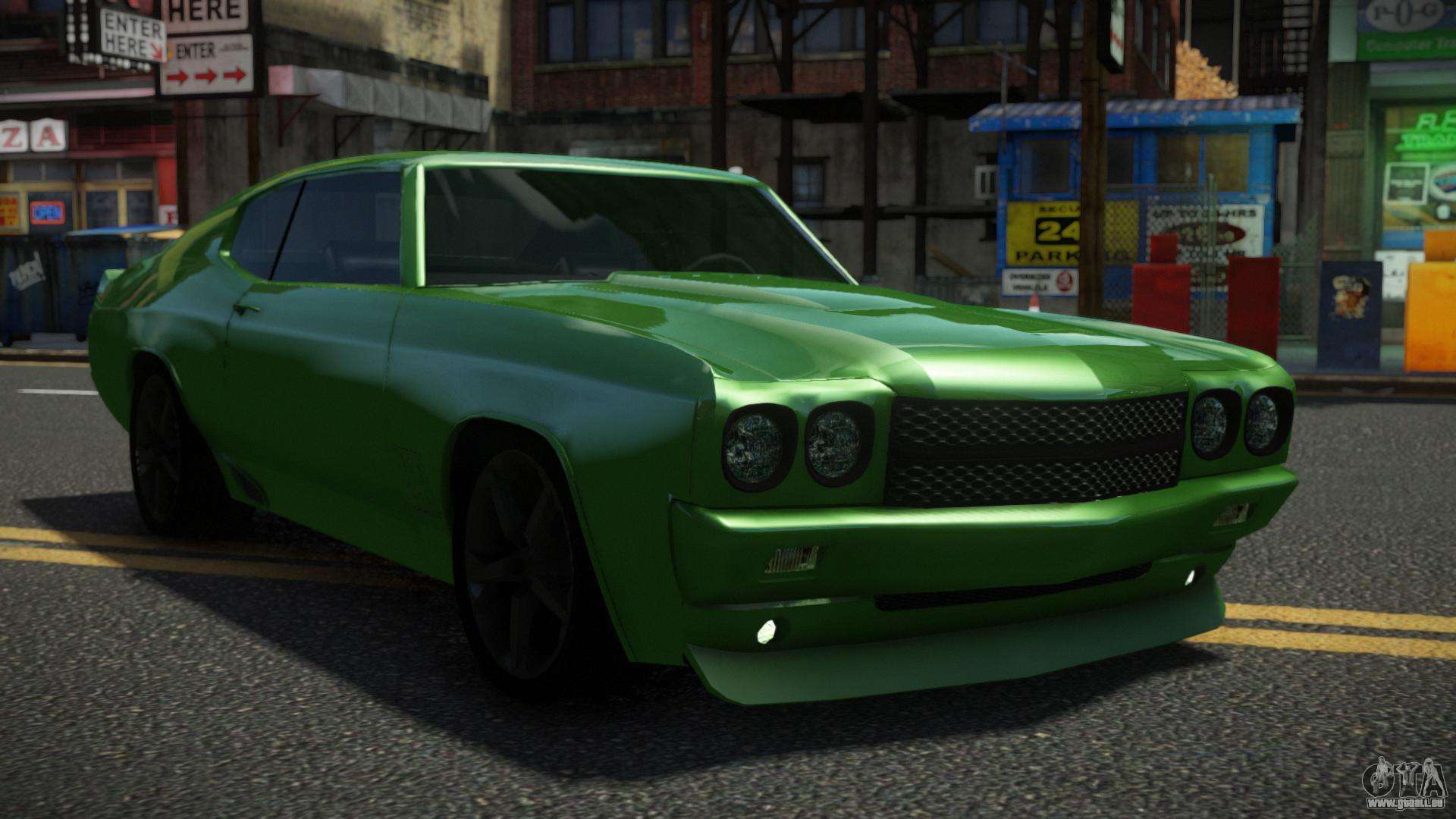 Um den Chevrolet Chevelle SS Reckilo Auto-Mod für GTA 4 kostenlos herunterzuladen, müssen Sie nur auf die Links unten auf der Seite klicken. Unser automatisiertes Installationsprogramm hilft Ihnen, den Sabre GT-Ersatz-Mod mit zwei Klicks zu installieren, oder Sie können ein anderes Standardfahrzeug im Spiel auswählen.