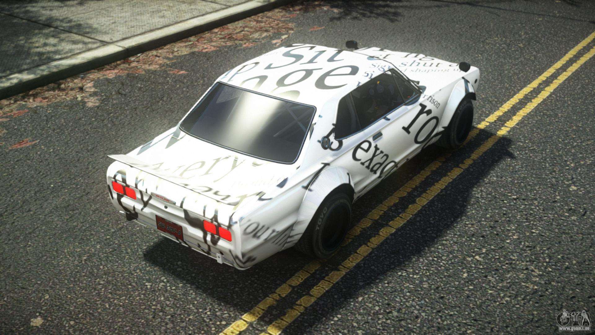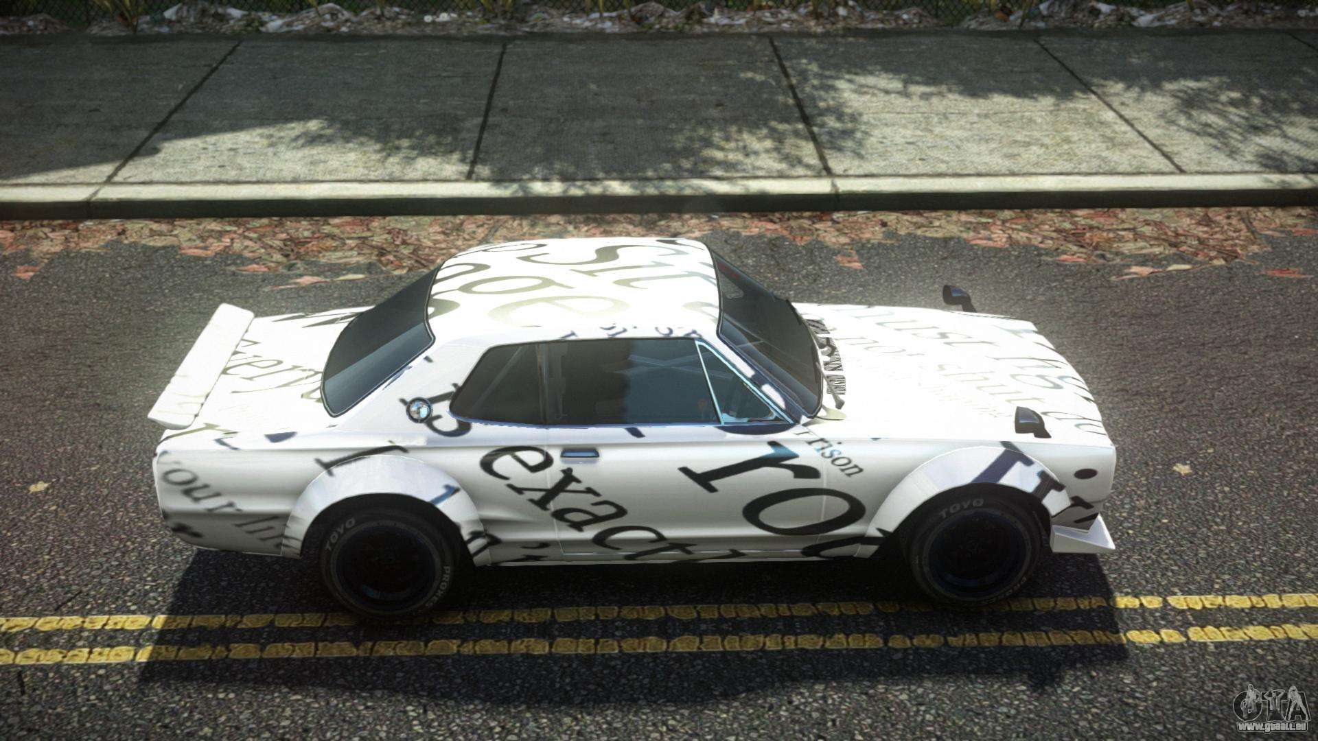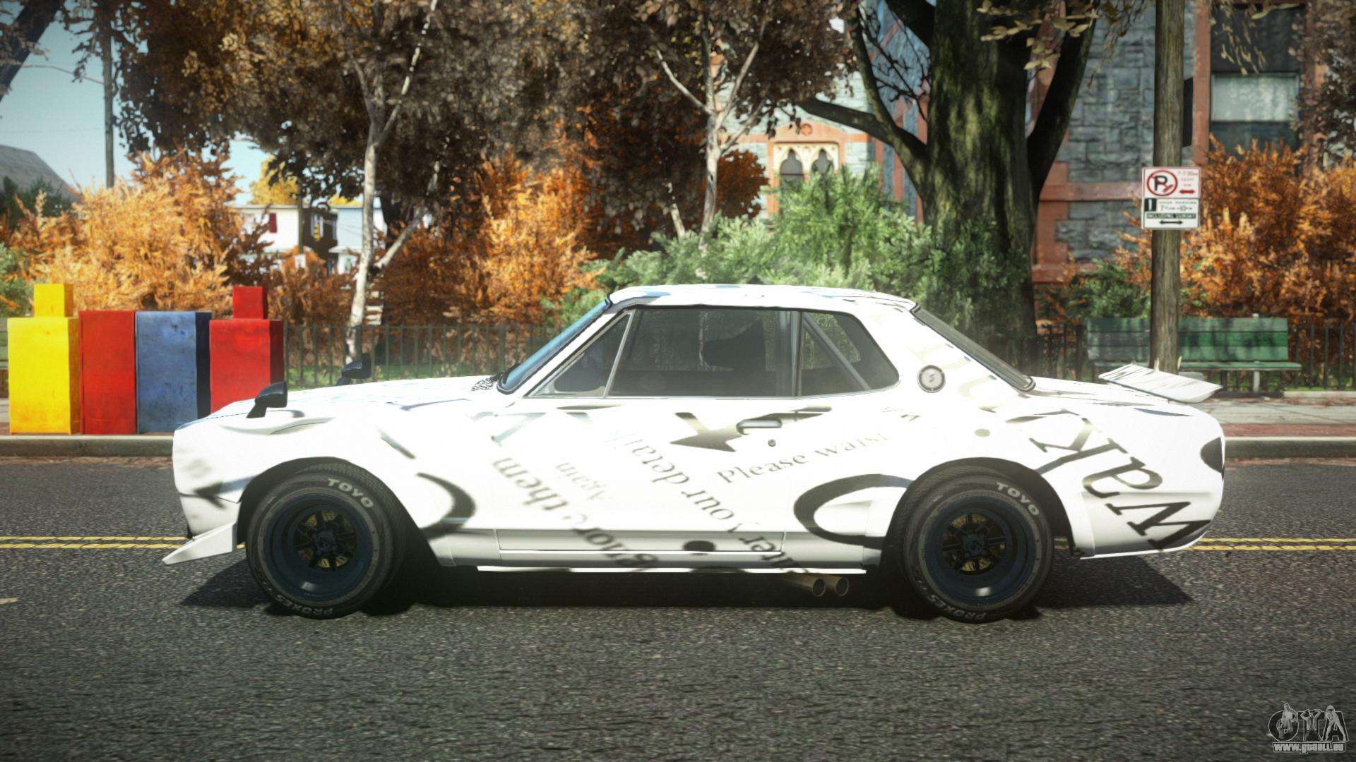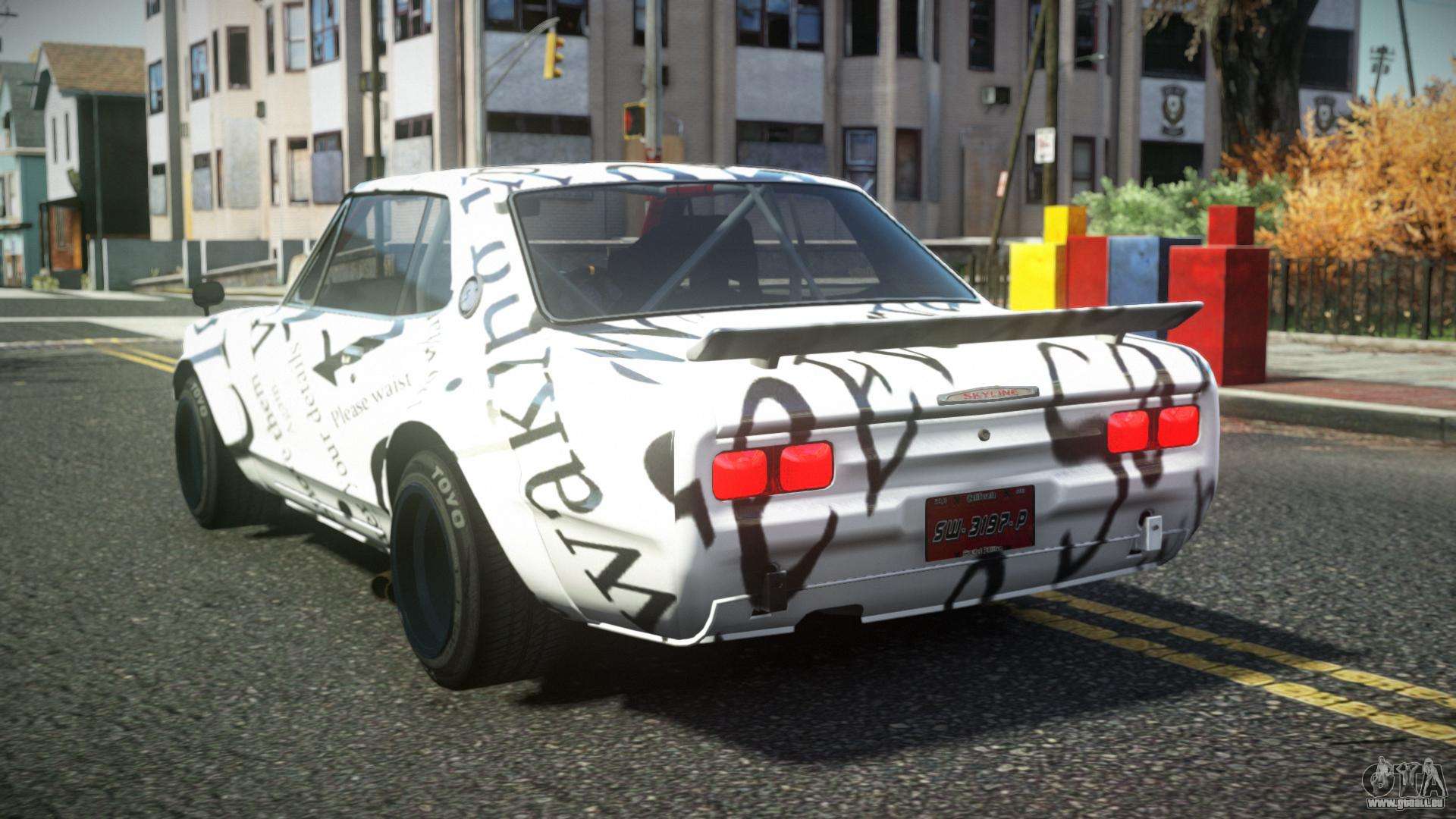Mod Nissan Skyline Kopaly S3 für GTA 4 kann unten unter den Links heruntergeladen werden. Die Modifikation wird standardmäßig automatisch installiert, um den Feltzer zu ersetzen, und mit Hilfe unseres Installers können Sie ihn durch jedes Standard-Spielfahrzeug ersetzen.