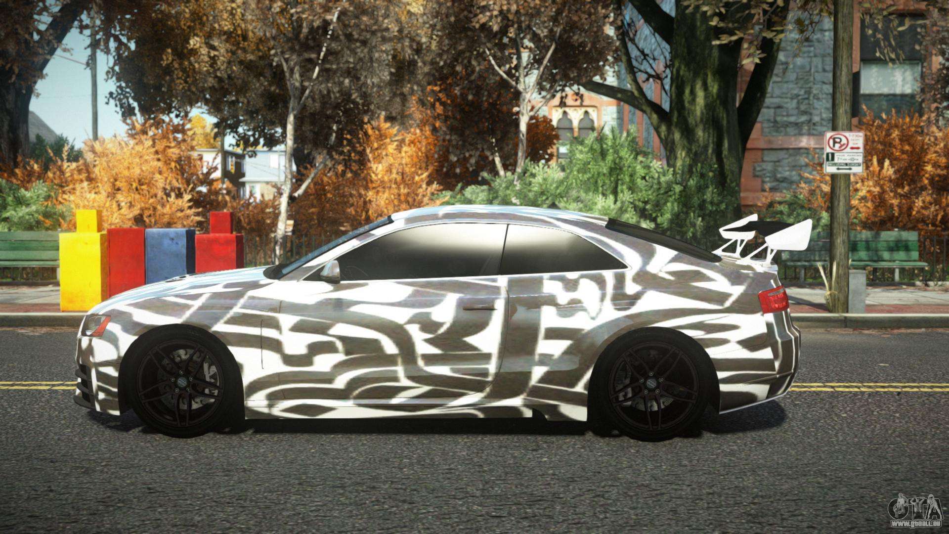 Guten Tag, Liebhaber des Fahrens schöner Autos! Hauchen Sie dem Verkehrsfluss auf den Straßen von Liberty City mit dem Audi S5 Frupalo S4 Auto-Mod für GTA 4 neues Leben ein. Die qualitativ hochwertige Arbeit des Autors wird es Ihnen ermöglichen, das Gefühl zu haben, ein hervorragendes Auto auf eine neue Art und Weise zu fahren.