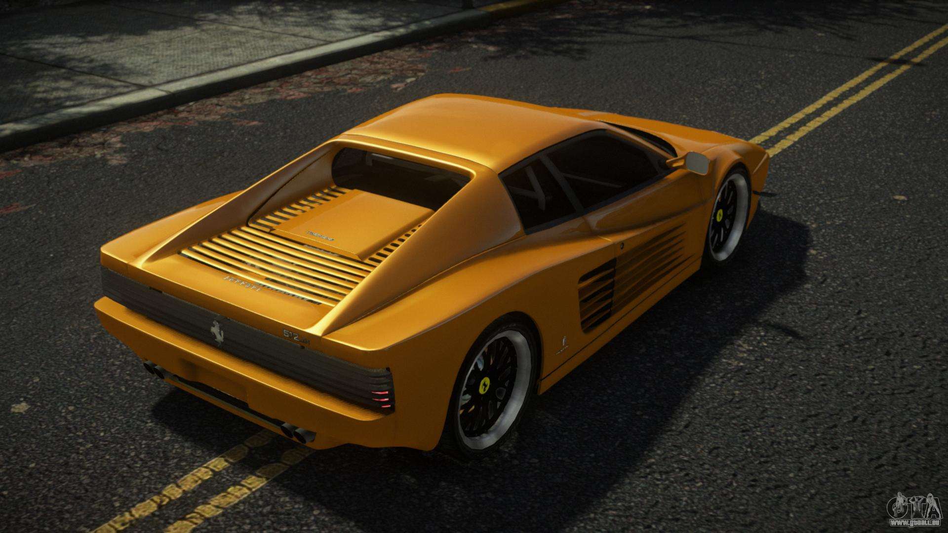 Guten Tag, Liebhaber des Fahrens schöner Autos! Hauchen Sie dem Verkehrsfluss auf den Straßen von Liberty City mit dem Ferrari 512 TR Buhac Mod für GTA 4 neues Leben ein. Die qualitativ hochwertige Arbeit des Autors wird es Ihnen ermöglichen, das Gefühl zu haben, ein hervorragendes Auto auf eine neue Art und Weise zu fahren.