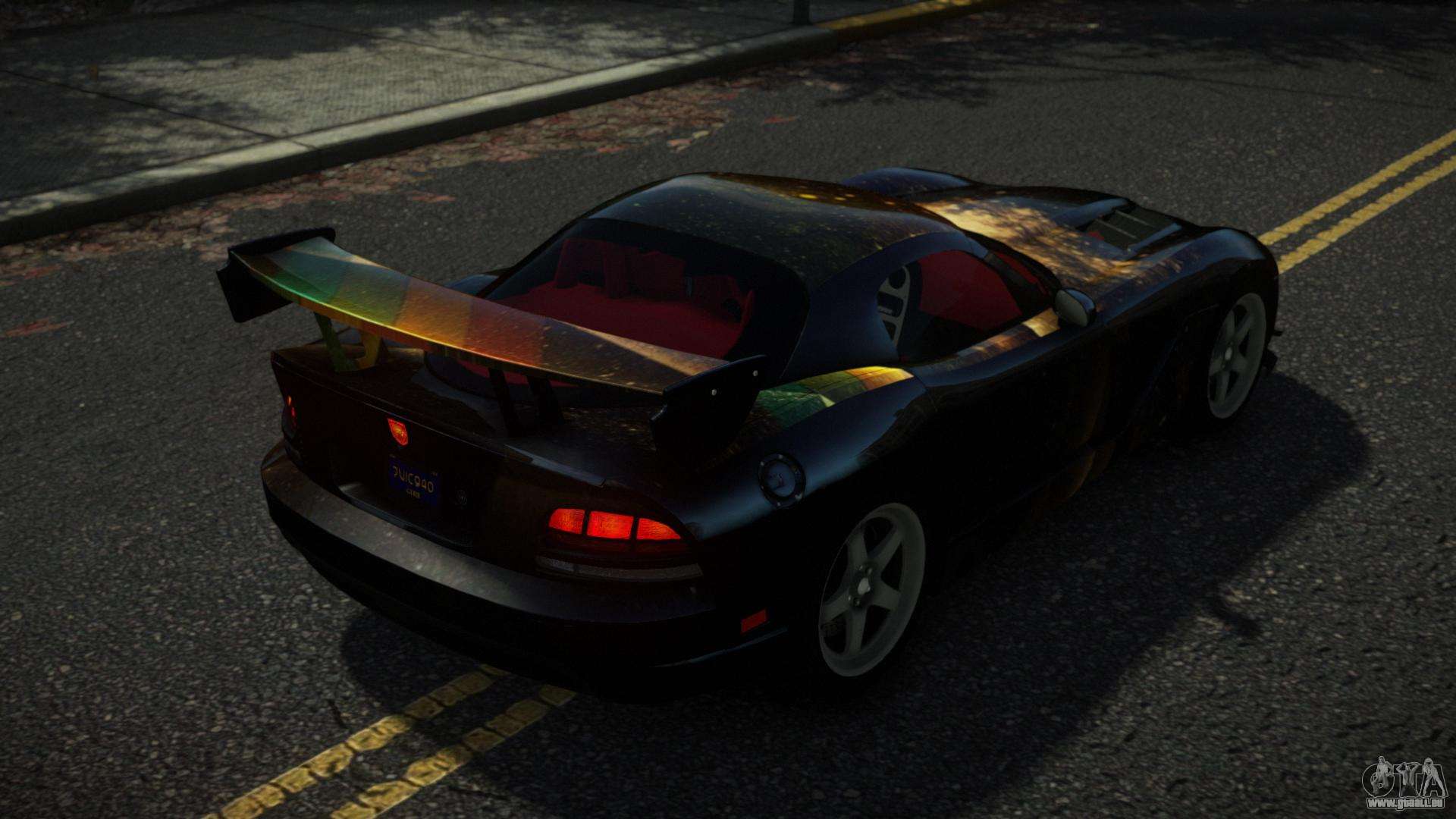 Der Dodge Viper Verhy S1 Mod für GTA 4 kann unten unter den Links heruntergeladen werden. Die Modifikation wird standardmäßig automatisch installiert, um die Banshee zu ersetzen, und mit Hilfe unseres Installers können Sie sie auch durch jedes Standard-Spielfahrzeug ersetzen.