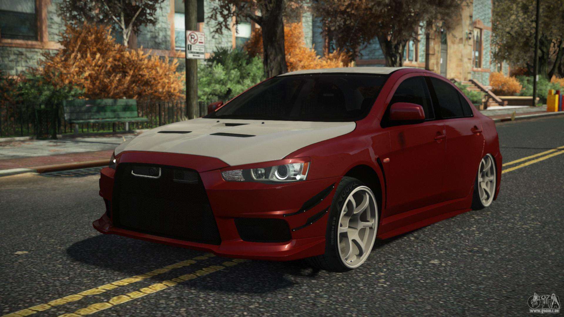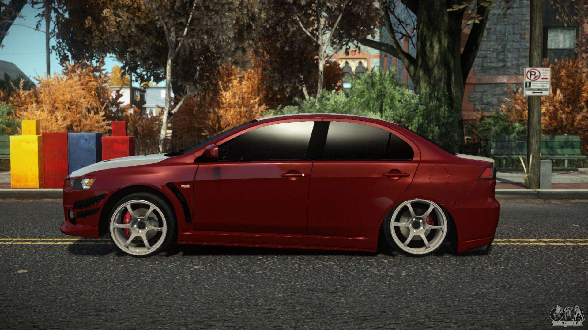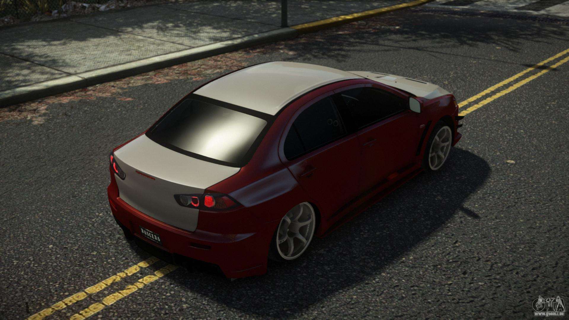 Der Mitsubishi Lancer Evolution X Volch Mod für GTA 4 kann unten unter den Links heruntergeladen werden. Die Modifikation wird standardmäßig automatisch installiert, um den Admiral zu ersetzen, und mit Hilfe unseres Installers können Sie sie auch durch jedes Standard-Spielfahrzeug ersetzen.