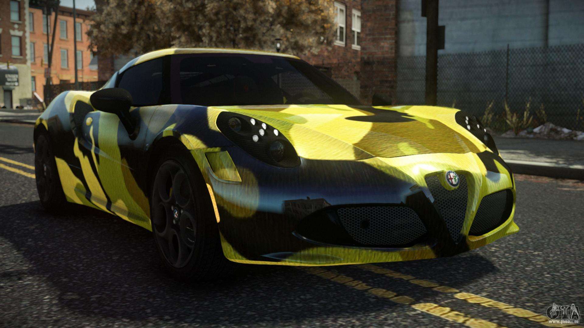 Sie können Alfa Romeo 4C Nukeem S9 für GTA 4 kostenlos herunterladen, indem Sie auf den unten stehenden Link klicken. Automatische Installation, standardmäßig, um die Banshee zu ersetzen, oder mit Hilfe des Installers können Sie ein beliebiges anderes Standardauto aus dem Spiel auswählen.