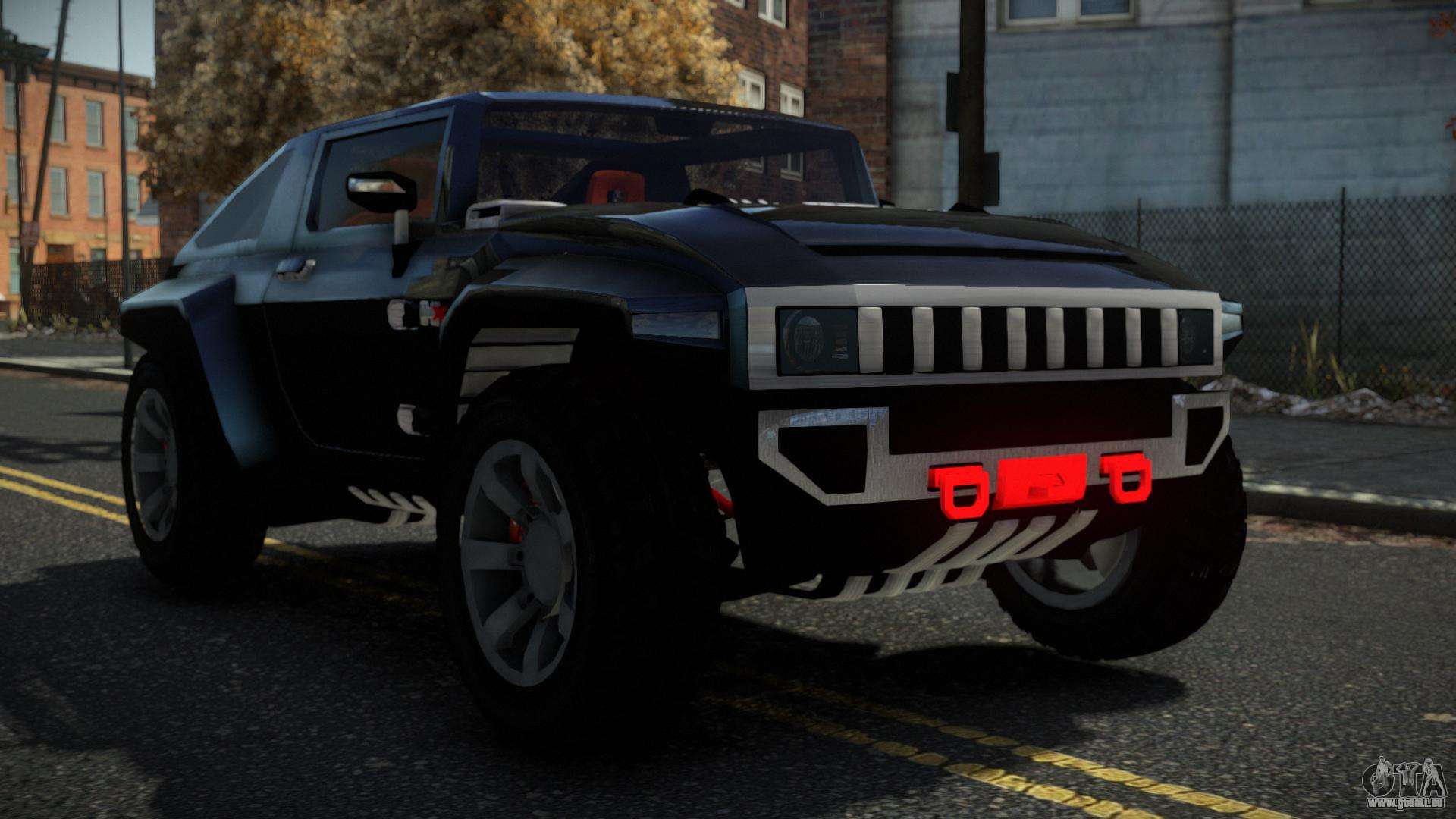 Müde von der Monotonie auf den Straßen von Liberty City, dann sind Sie hier genau richtig! Schauen Sie sich den Hummer HX Blosagu Auto-Mod für GTA 4 an. Spüren Sie den Komfort und die hohe Verarbeitungsqualität. Diversifizieren Sie die Straßen mit diesem Auto, und Sie werden zufrieden sein.