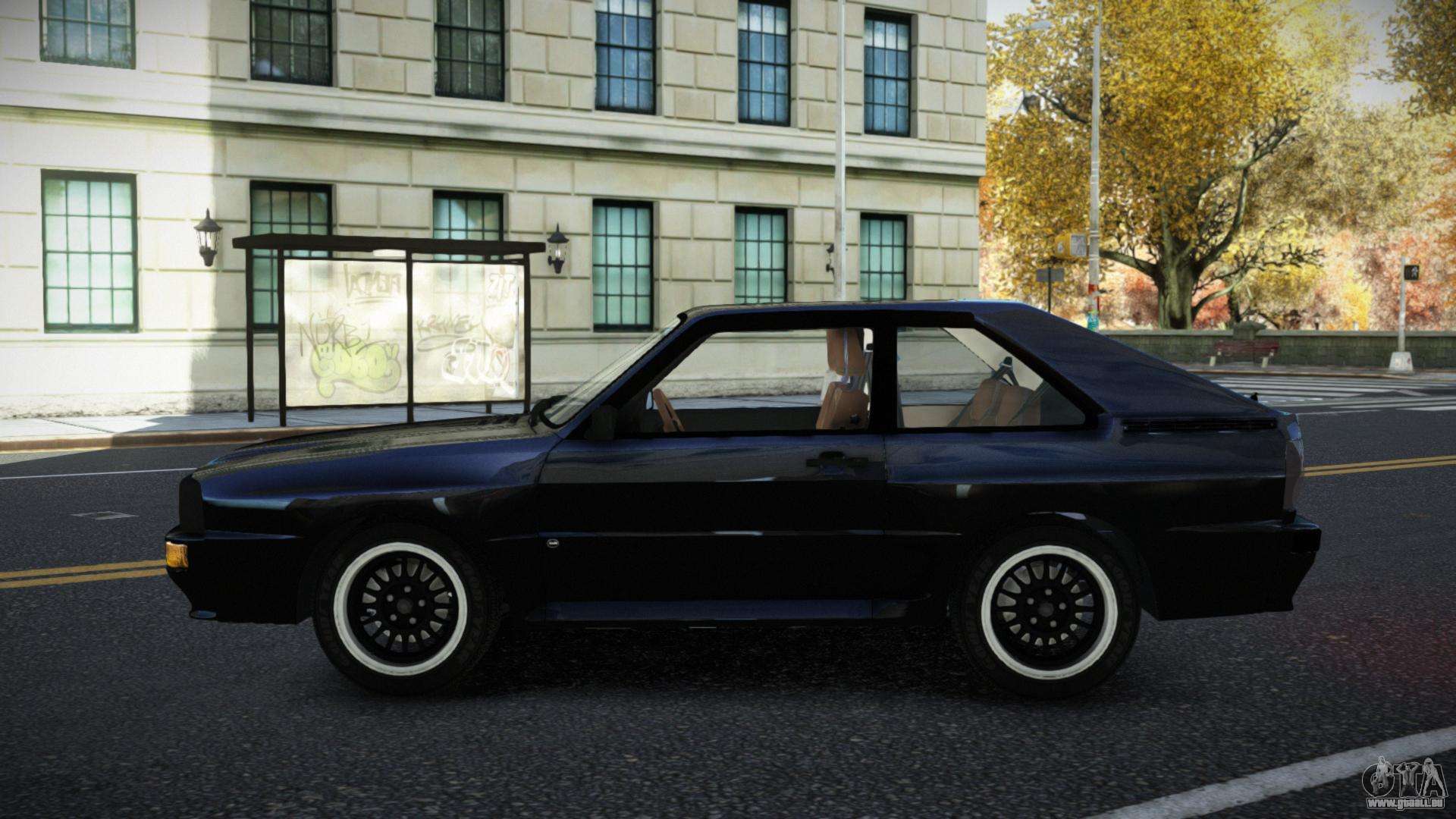 Entdecke ein einzigartiges Auto, das Design, Technologie und Leistung vereint: der aufregende Audi Sport Quattro Yixqideyo für GTA 4. Stilvoll, sportlich und praktisch, ist es das perfekte Auto für Ihre Reisen.
