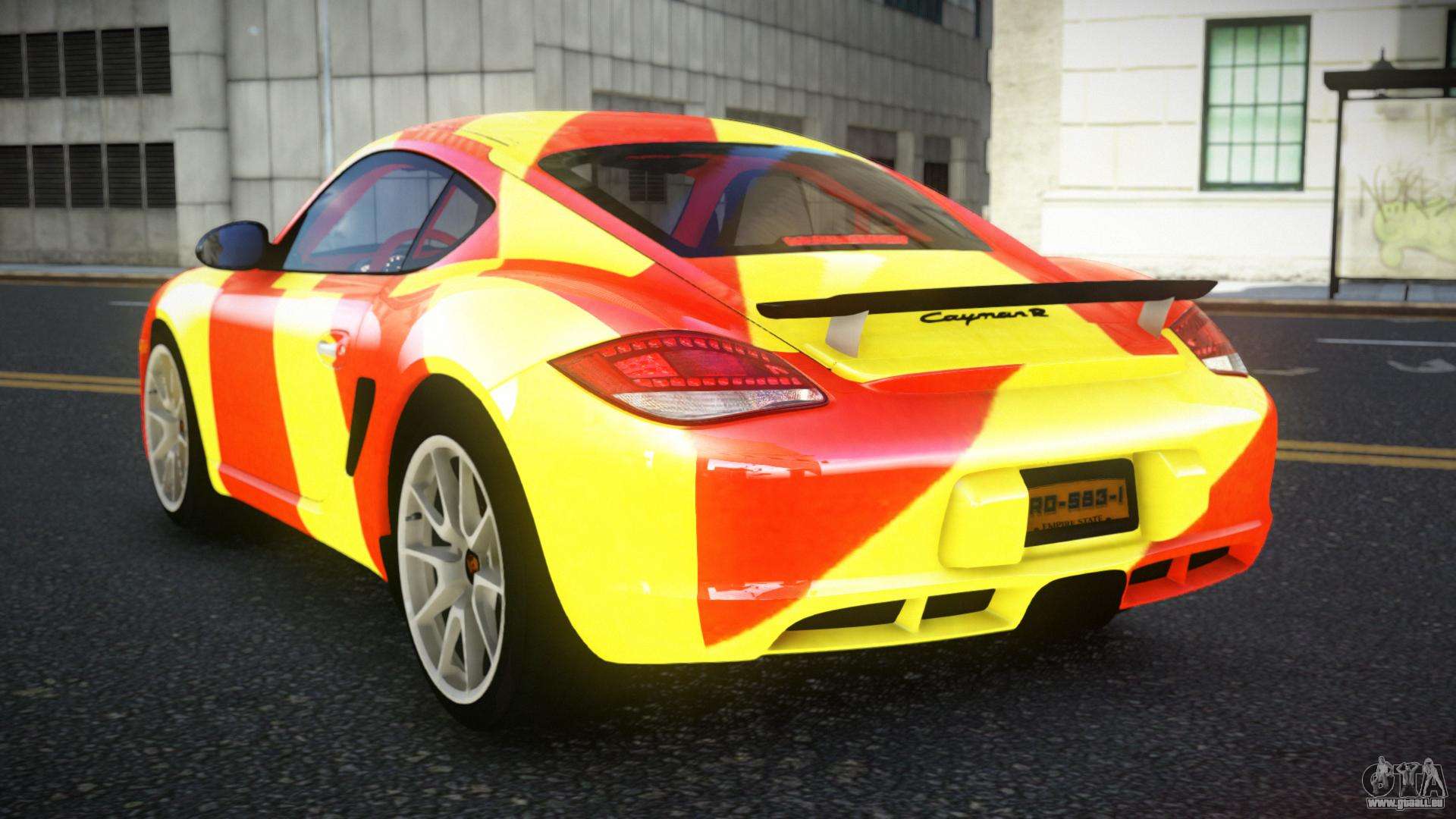 Der Porsche Cayman Ronthy S3 Mod für GTA 4 kann unten unter den Links heruntergeladen werden. Die Modifikation wird standardmäßig automatisch installiert, um den Feltzer zu ersetzen, und mit Hilfe unseres Installers können Sie ihn durch jedes Standard-Spielfahrzeug ersetzen.