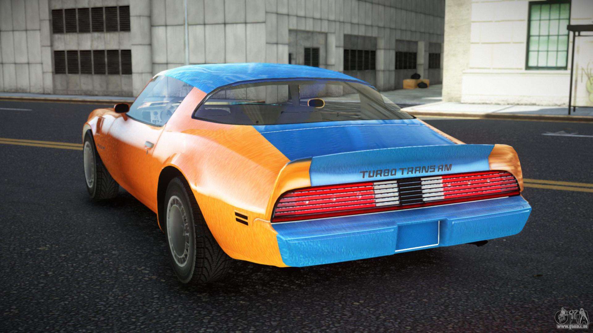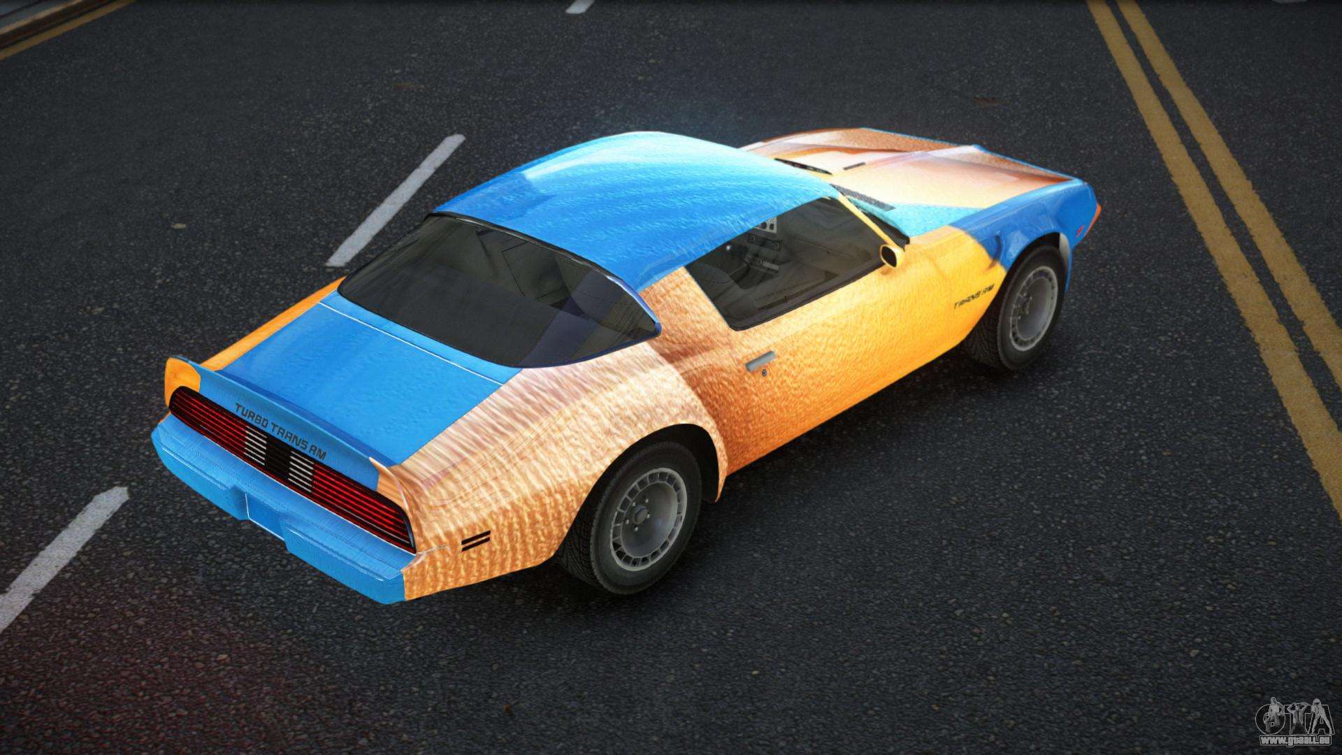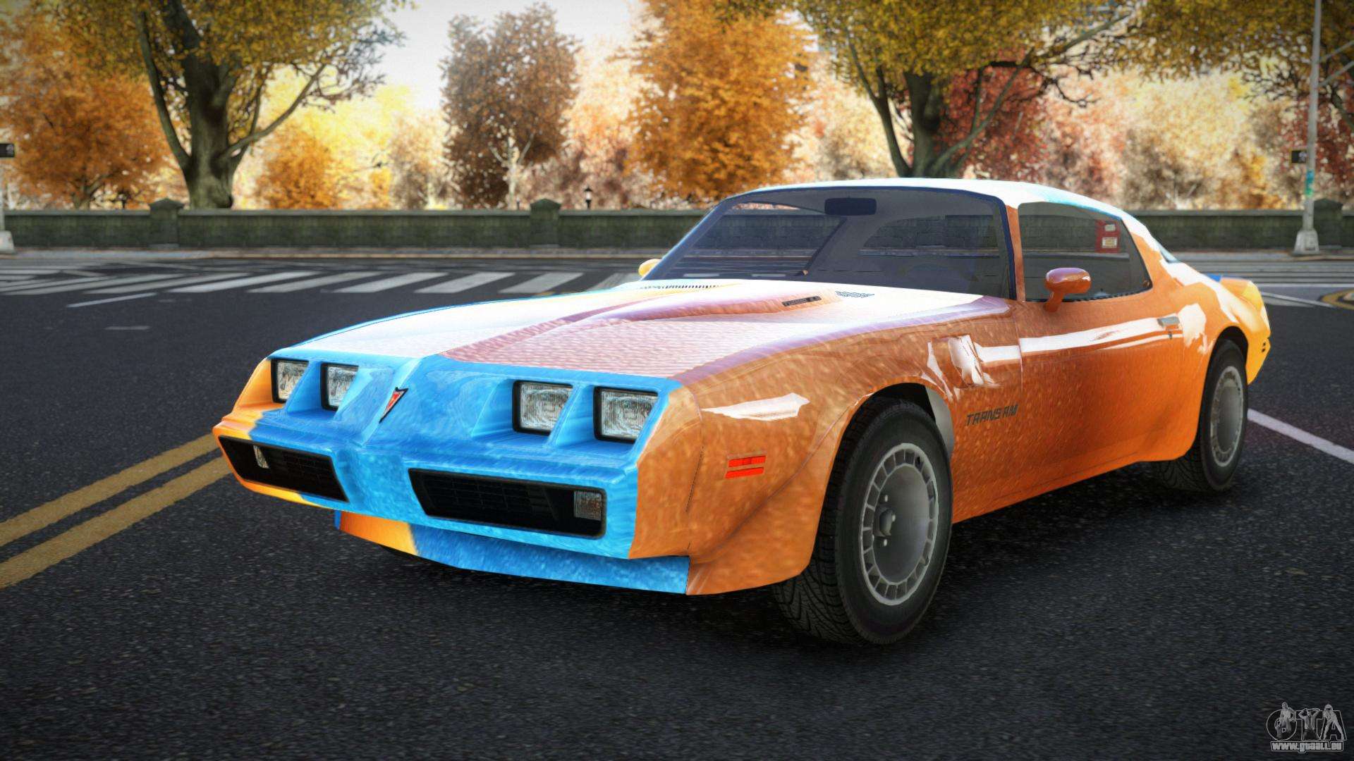 Sie können den Pontiac Trans AM Tyolas S3 Auto-Mod für GTA 4 kostenlos herunterladen, indem Sie auf den unten stehenden Link klicken. Automatische Installation, standardmäßig um Feltzer zu ersetzen, oder mit Hilfe des Installers können Sie ein beliebiges anderes Standardauto aus dem Spiel auswählen.