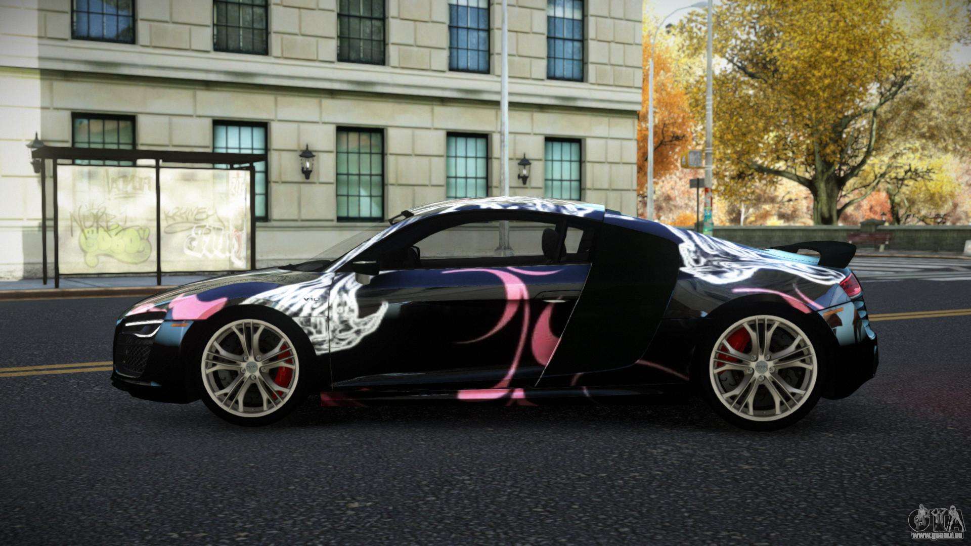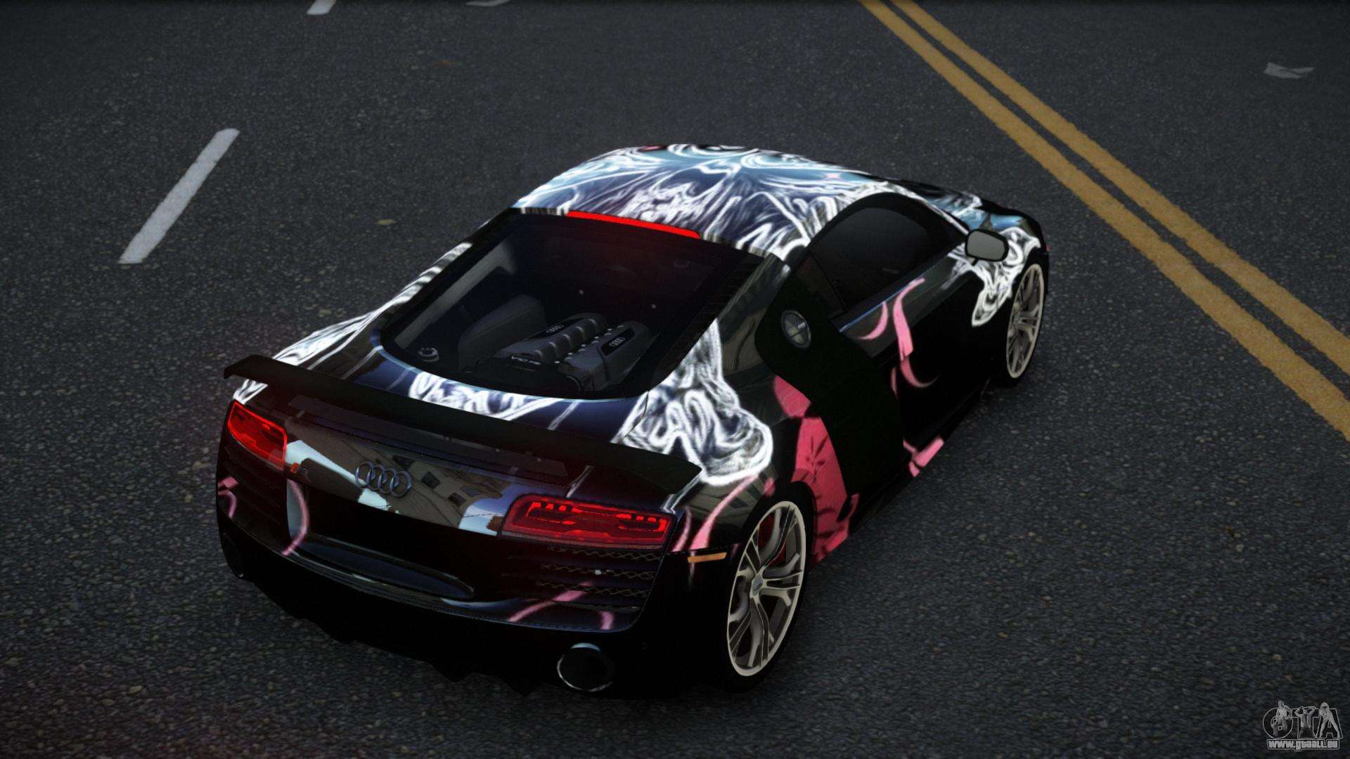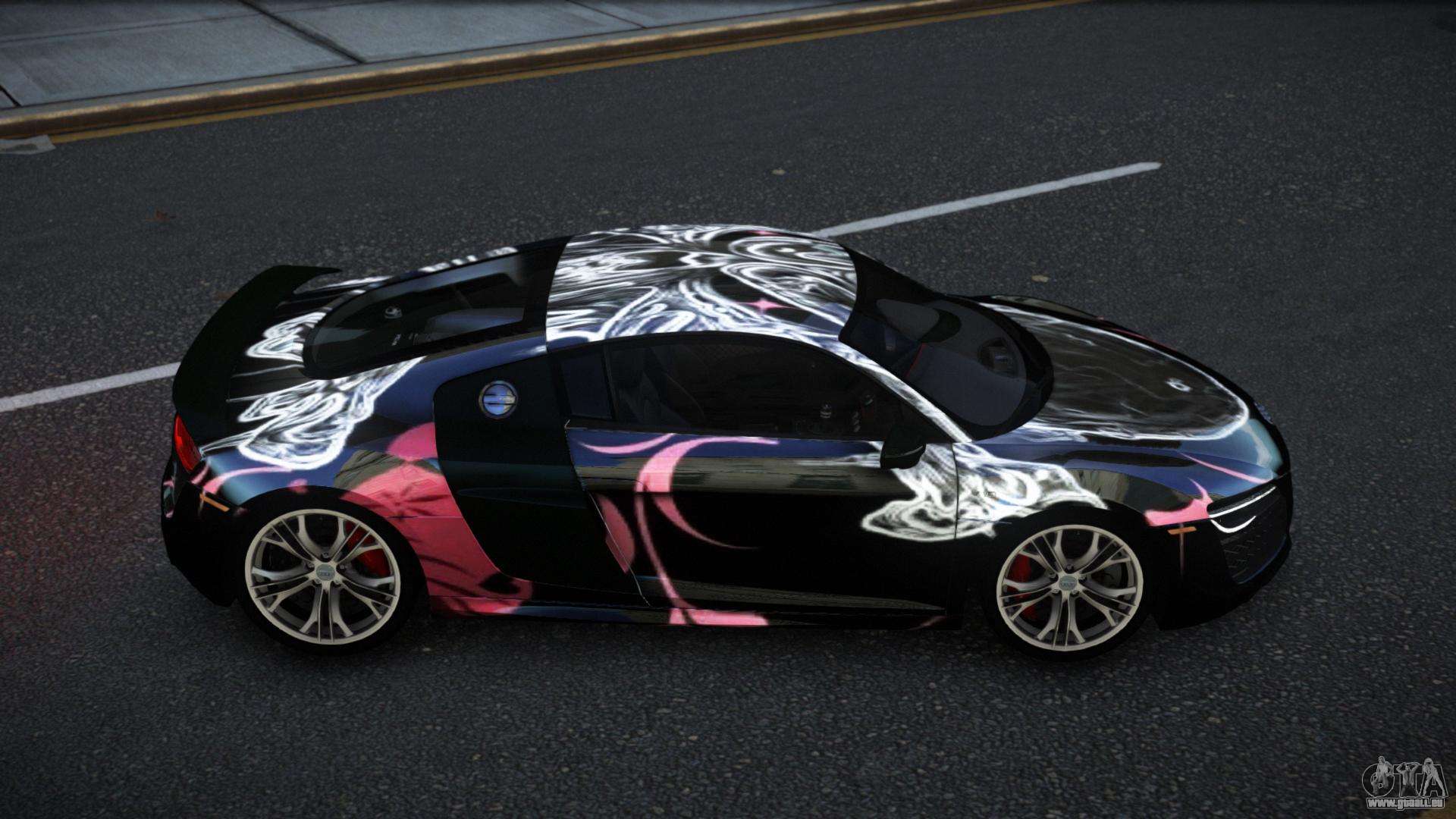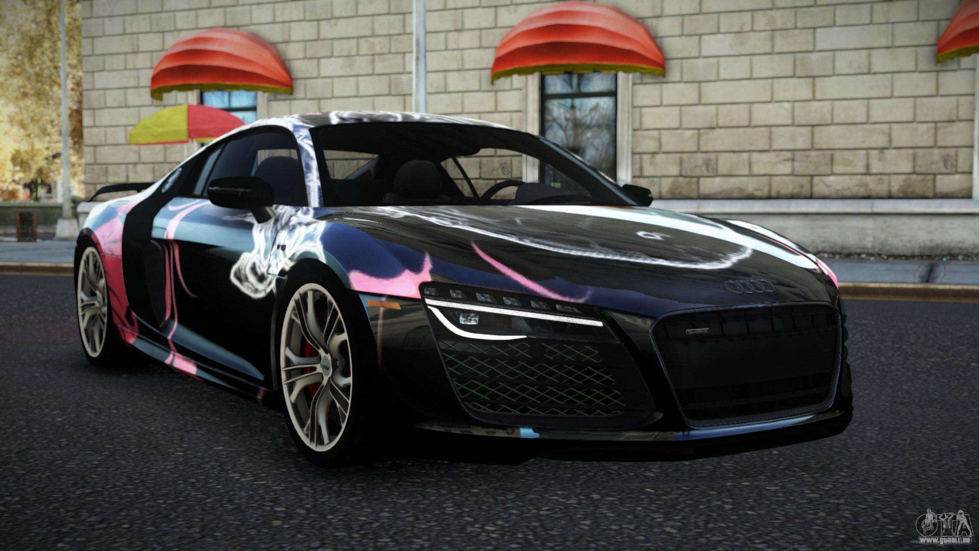 Mod Audi R8 Sonerle S13 für GTA 4 kann unten unter den Links heruntergeladen werden. Die Modifikation wird standardmäßig automatisch installiert, um die Banshee zu ersetzen, und mit Hilfe unseres Installers können Sie sie auch durch jedes Standard-Spielfahrzeug ersetzen.
