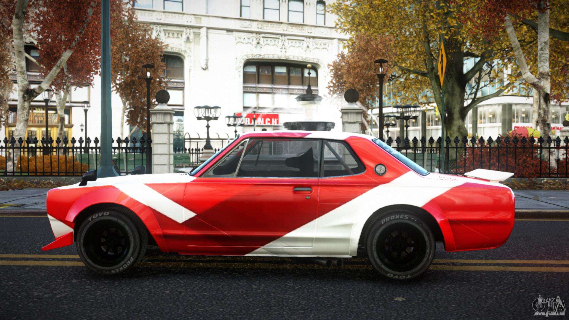 Der Nissan Skyline Deian S1 Mod für GTA 4 kann unten unter den Links heruntergeladen werden. Die Modifikation wird standardmäßig automatisch installiert, um den Feltzer zu ersetzen, und mit Hilfe unseres Installers können Sie ihn durch jedes Standard-Spielfahrzeug ersetzen.