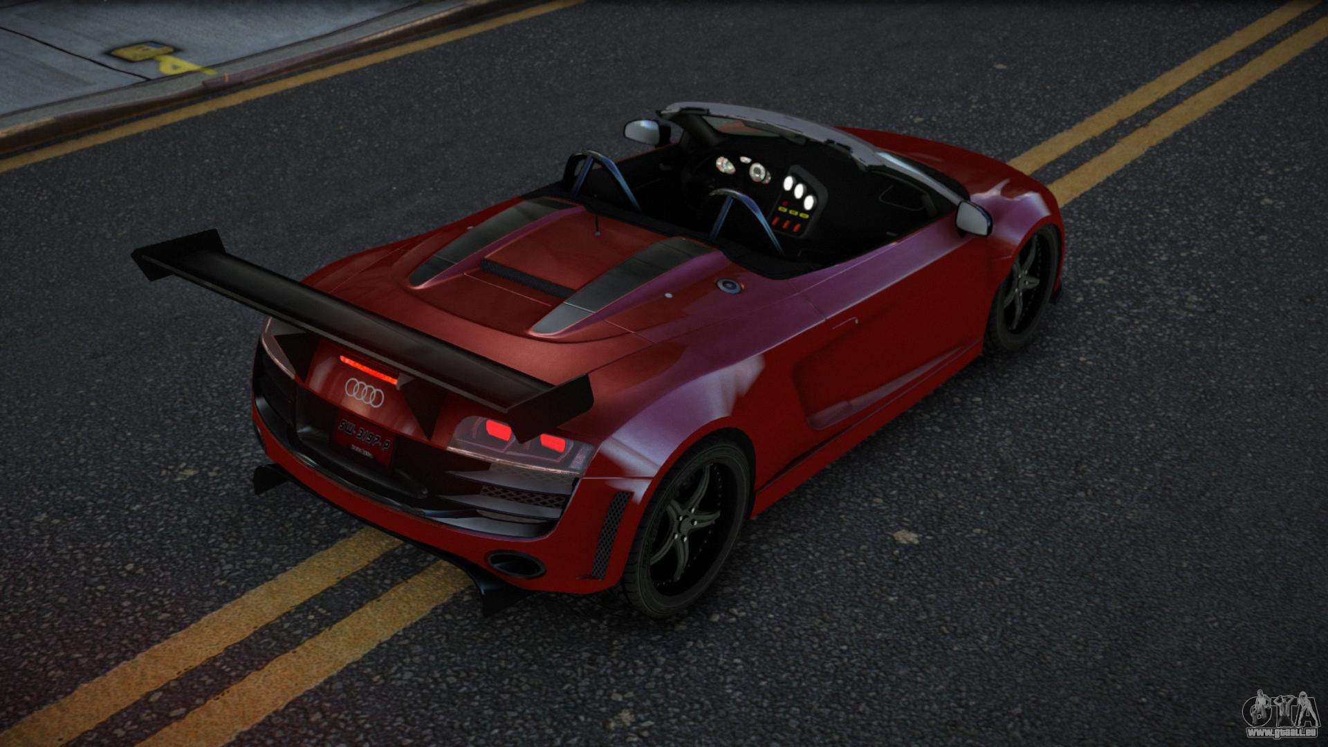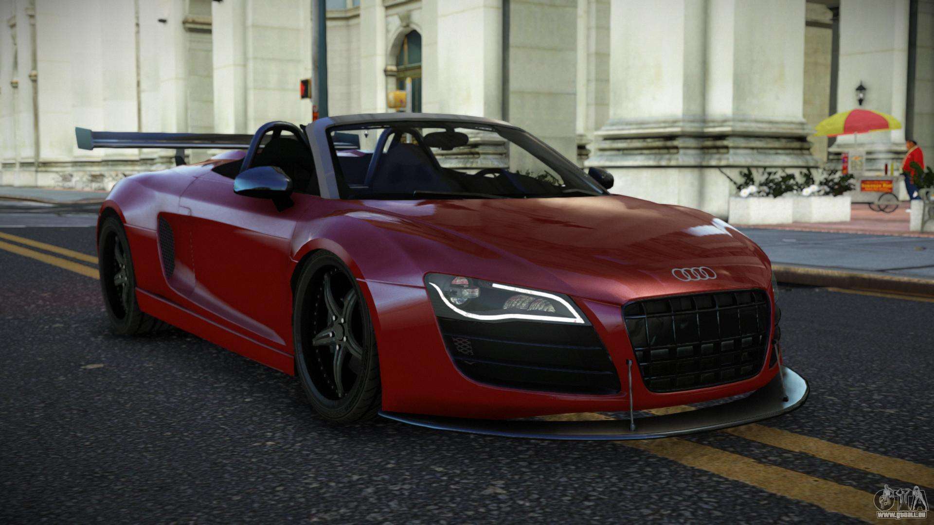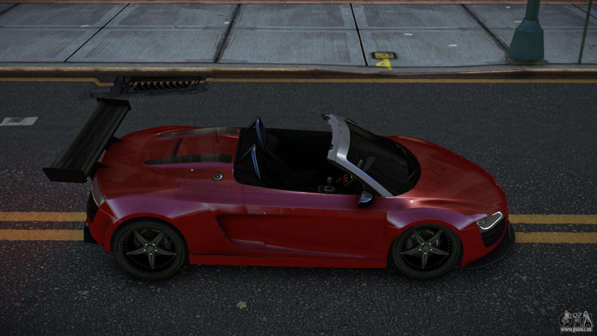 Über die unten stehenden Links können Sie den Audi R8 Tagyes Auto-Mod für GTA 4 kostenlos herunterladen. Standardmäßig ersetzt der Mod das Auto automatisch durch einen Turismo. Mit Hilfe unseres Installateurs können Sie das Auto durch ein anderes Standardfahrzeug ersetzen.