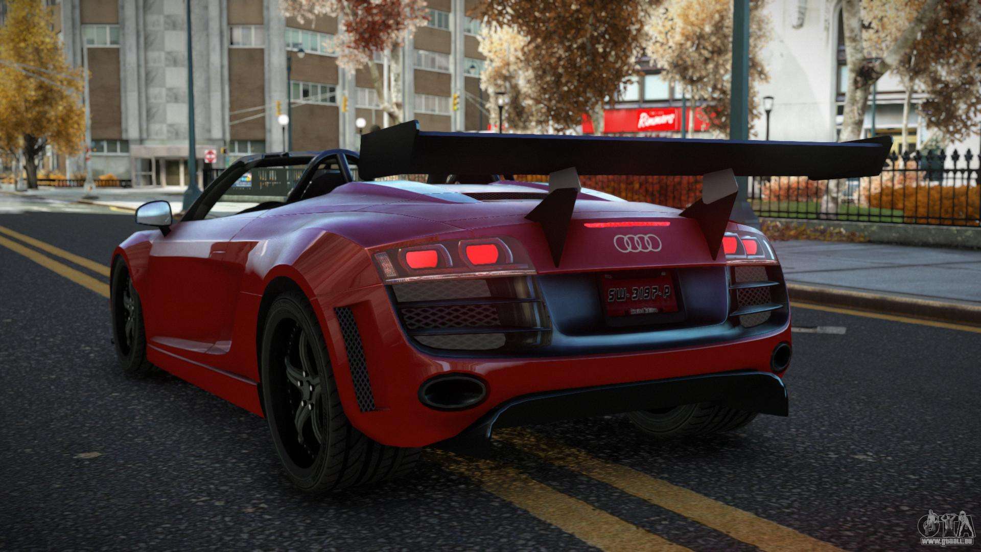 Guten Tag, Liebhaber des Fahrens schöner Autos! Hauchen Sie dem Verkehrsfluss auf den Straßen von Liberty City mit dem Audi R8 Tagyes Car Mod für GTA 4 neues Leben ein. Die qualitativ hochwertige Arbeit des Autors wird es Ihnen ermöglichen, das Gefühl zu haben, ein hervorragendes Auto auf eine neue Art und Weise zu fahren.