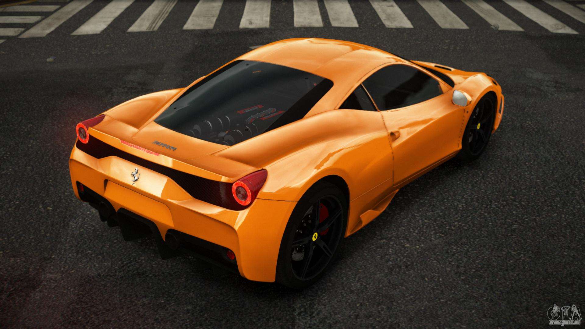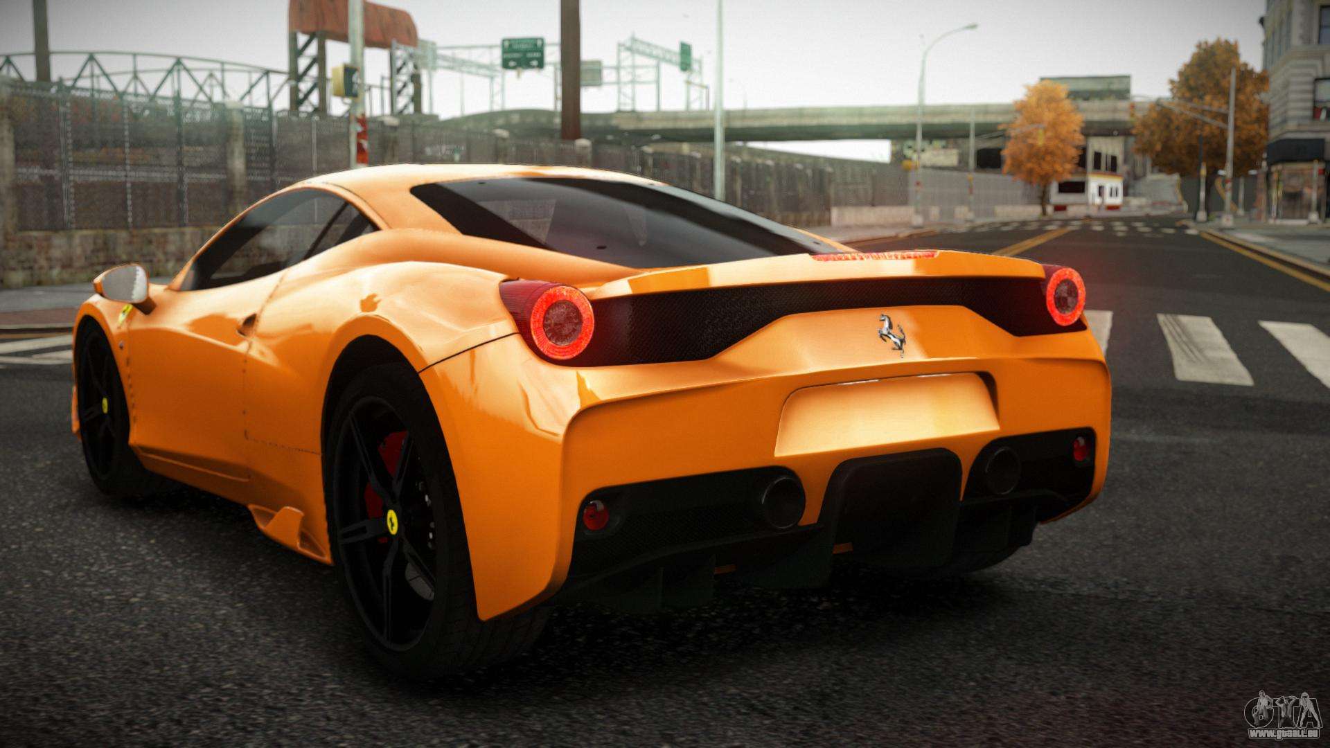 Über die unten stehenden Links können Sie den Ferrari 458 Zeqwufige Auto-Mod für GTA 4 kostenlos herunterladen. Standardmäßig ersetzt der Mod das Auto automatisch durch einen Turismo. Mit Hilfe unseres Installateurs können Sie das Auto durch ein anderes Standardfahrzeug ersetzen.