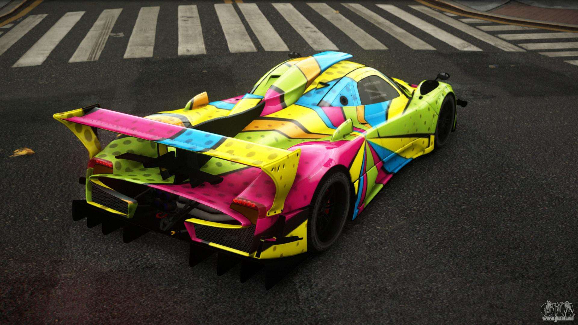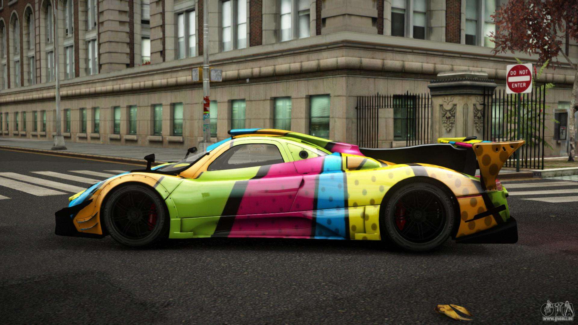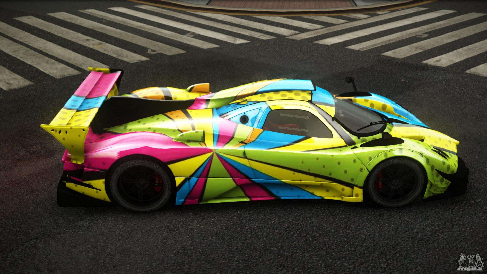 Der Pagani Zonda Kelorgo S3 Mod für GTA 4 kann unten unter den Links heruntergeladen werden. Die Modifikation wird standardmäßig automatisch installiert, um die Banshee zu ersetzen, und mit Hilfe unseres Installers können Sie sie auch durch jedes Standard-Spielfahrzeug ersetzen.