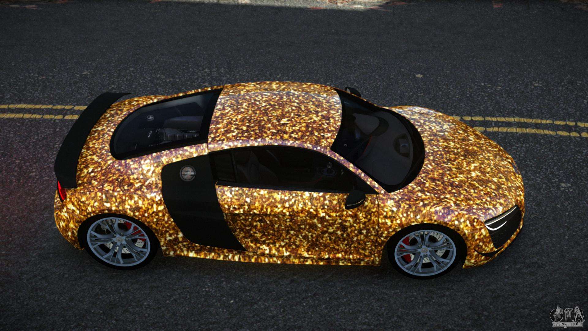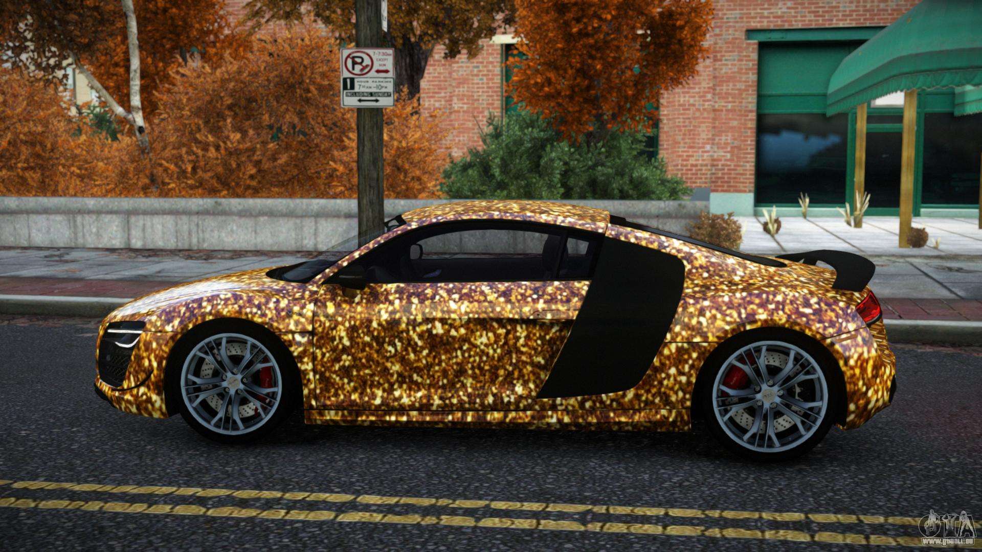 Mod Audi R8 Saria S3 für GTA 4 kann unten unter den Links heruntergeladen werden. Die Modifikation wird standardmäßig automatisch installiert, um die Banshee zu ersetzen, und mit Hilfe unseres Installers können Sie sie auch durch jedes Standard-Spielfahrzeug ersetzen.