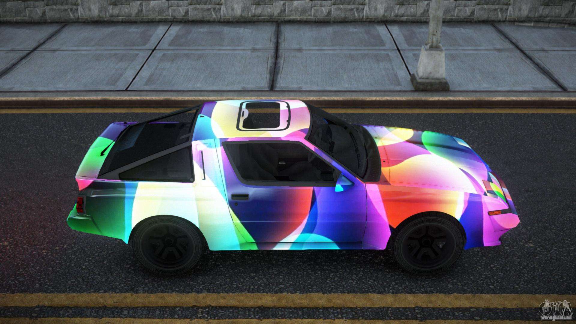 Der Mitsubishi Starion Menase S3 Mod für GTA 4 kann unten unter den Links heruntergeladen werden. Die Modifikation wird standardmäßig automatisch installiert, um die Banshee zu ersetzen, und mit Hilfe unseres Installers können Sie sie auch durch jedes Standard-Spielfahrzeug ersetzen.
