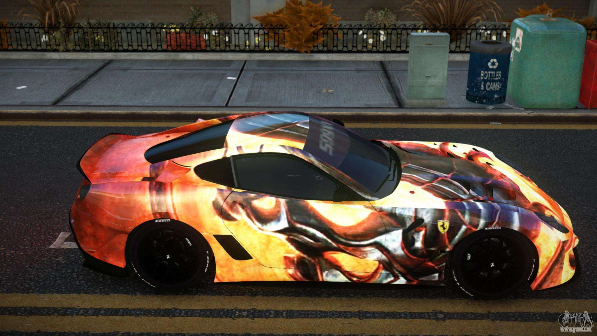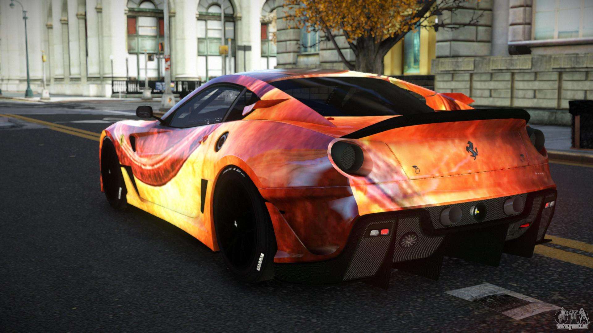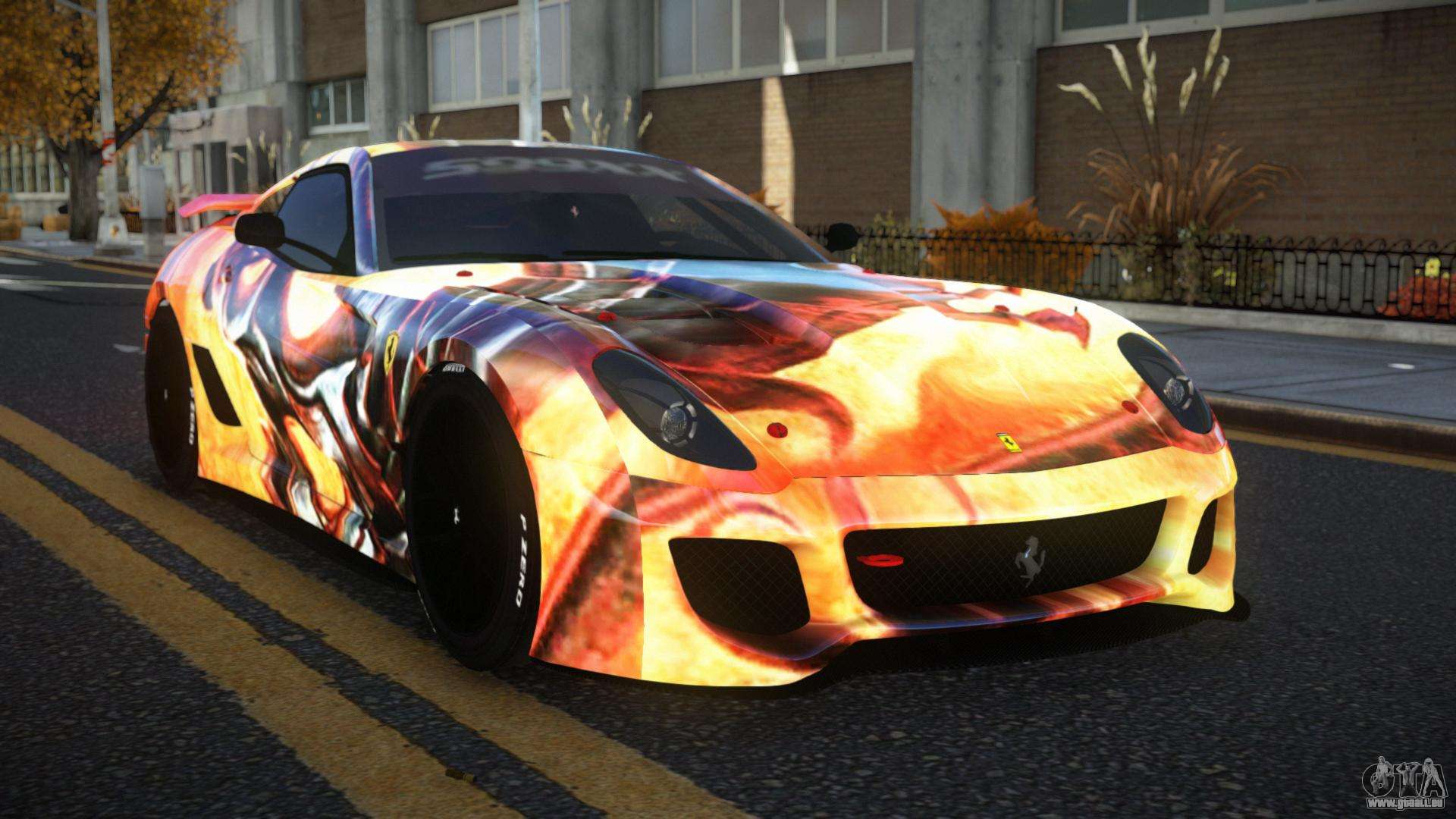 Der Ferrari 599 Lesrisen S3 Mod für GTA 4 kann unten unter den Links heruntergeladen werden. Die Modifikation wird standardmäßig automatisch installiert, um die Banshee zu ersetzen, und mit Hilfe unseres Installers können Sie sie auch durch jedes Standard-Spielfahrzeug ersetzen.