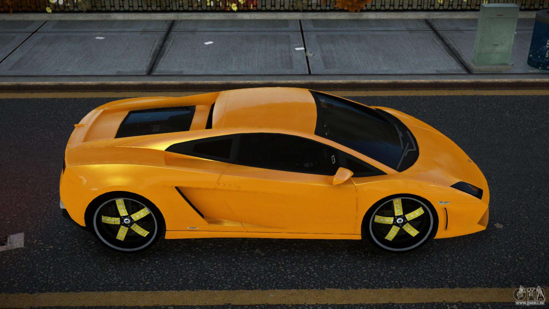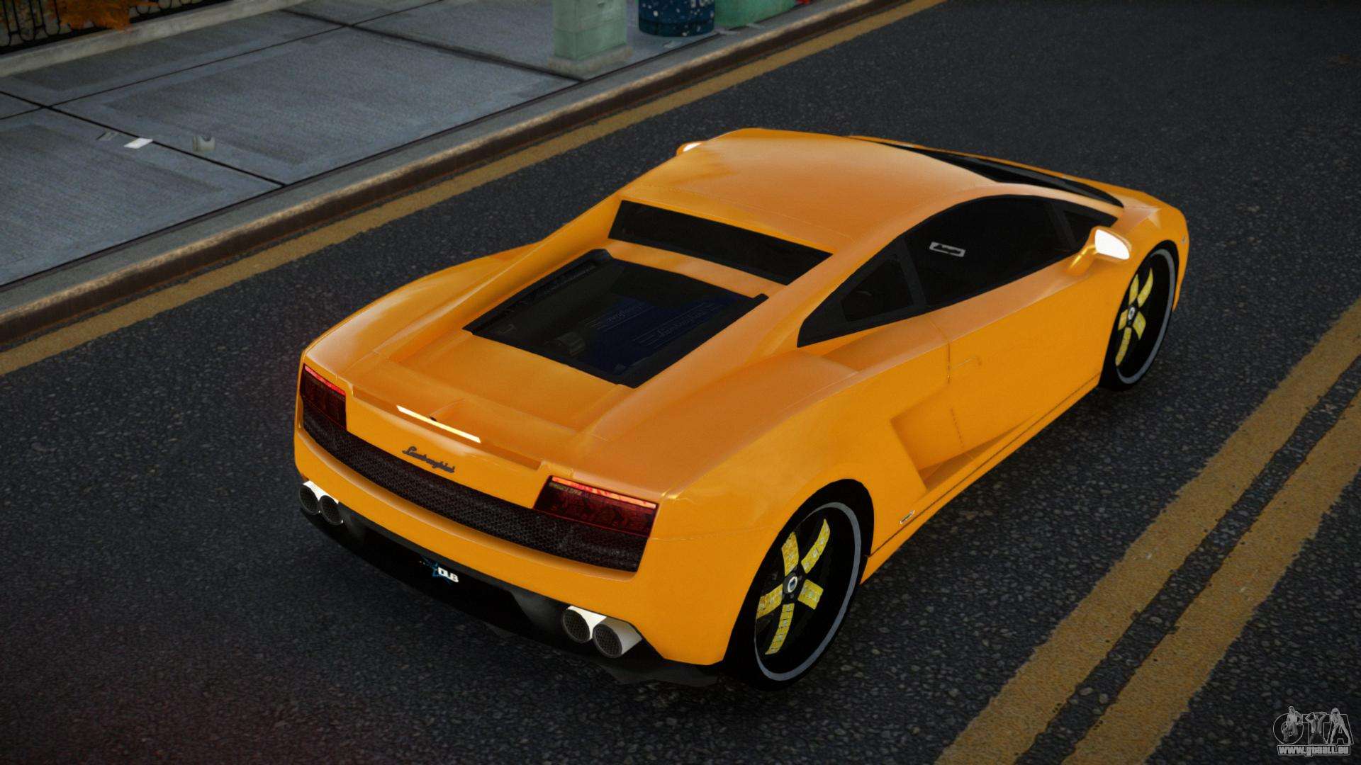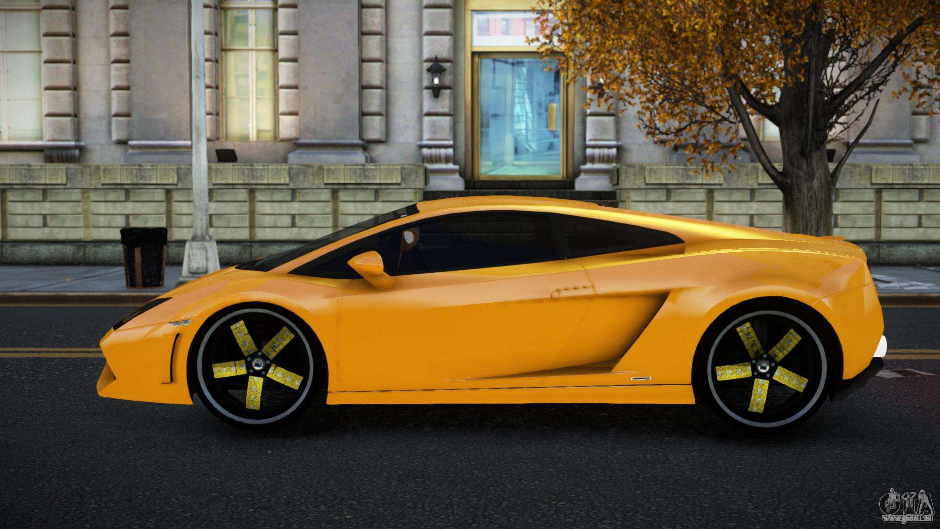 Über die unten stehenden Links können Sie den Lamborghini Gallardo Cujabuyib Auto-Mod für GTA 4 kostenlos herunterladen. Standardmäßig ersetzt der Mod das Auto automatisch durch einen Turismo. Mit Hilfe unseres Installateurs können Sie das Auto durch ein anderes Standardfahrzeug ersetzen.