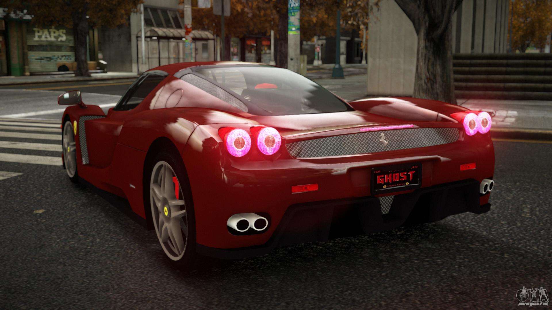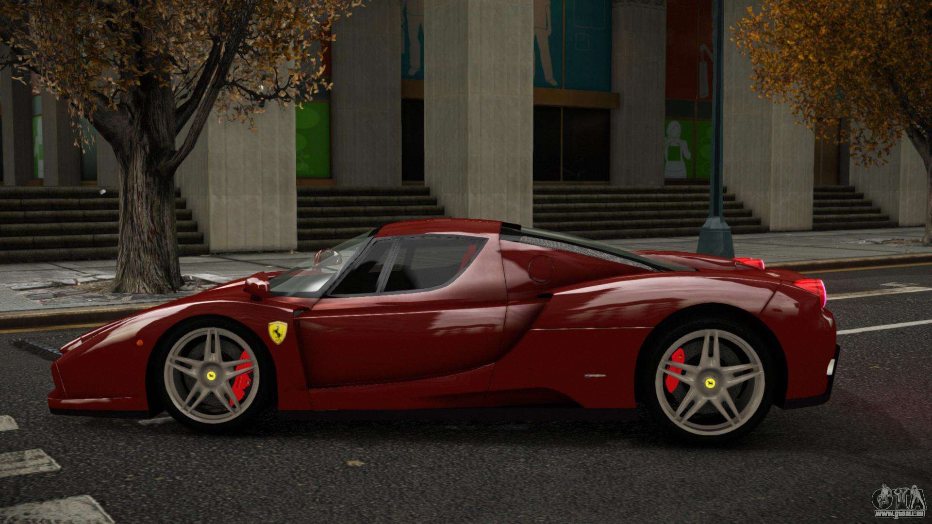 Über die unten stehenden Links können Sie den Ferrari Enzo Kupise Auto-Mod für GTA 4 kostenlos herunterladen. Standardmäßig ersetzt der Mod das Auto automatisch durch einen Turismo. Mit Hilfe unseres Installateurs können Sie das Auto durch ein anderes Standardfahrzeug ersetzen.