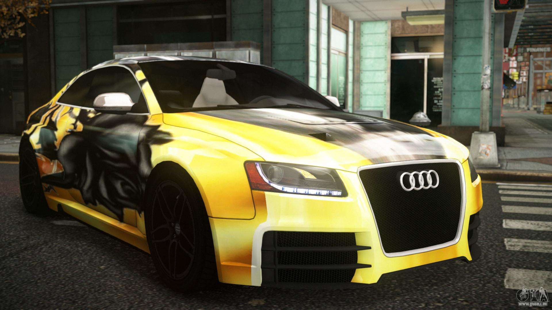 Mod Audi S5 Hanisca S13 für GTA 4 kann unten unter den Links heruntergeladen werden. Die Modifikation wird standardmäßig automatisch installiert, um die Banshee zu ersetzen, und mit Hilfe unseres Installers können Sie sie auch durch jedes Standard-Spielfahrzeug ersetzen.