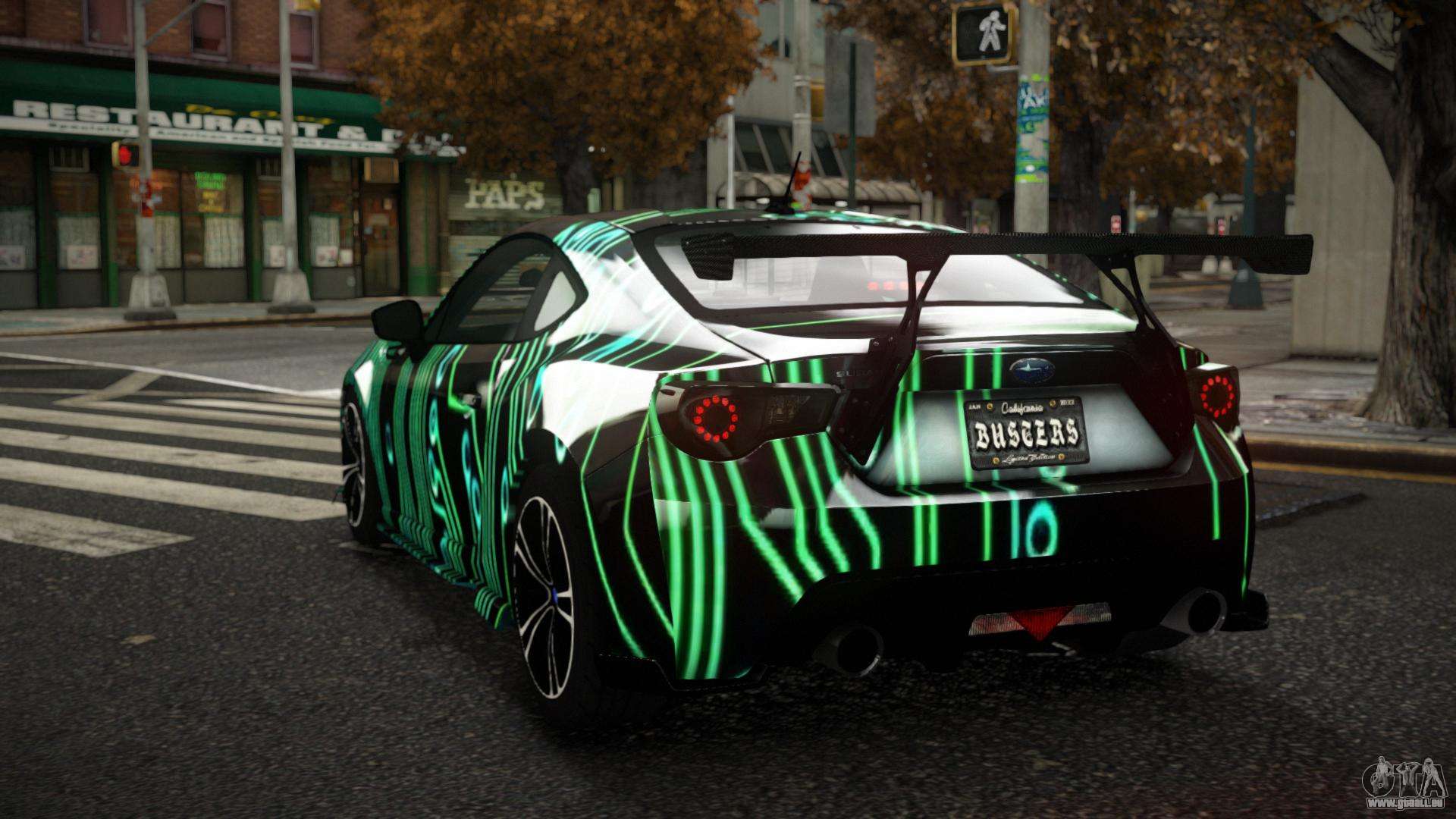 Sie können den Subaru BRZ Neyrin S5 Auto-Mod für GTA 4 kostenlos herunterladen, indem Sie auf den unten stehenden Link klicken. Automatische Installation, standardmäßig um Feltzer zu ersetzen, oder mit Hilfe des Installers können Sie ein beliebiges anderes Standardauto aus dem Spiel auswählen.