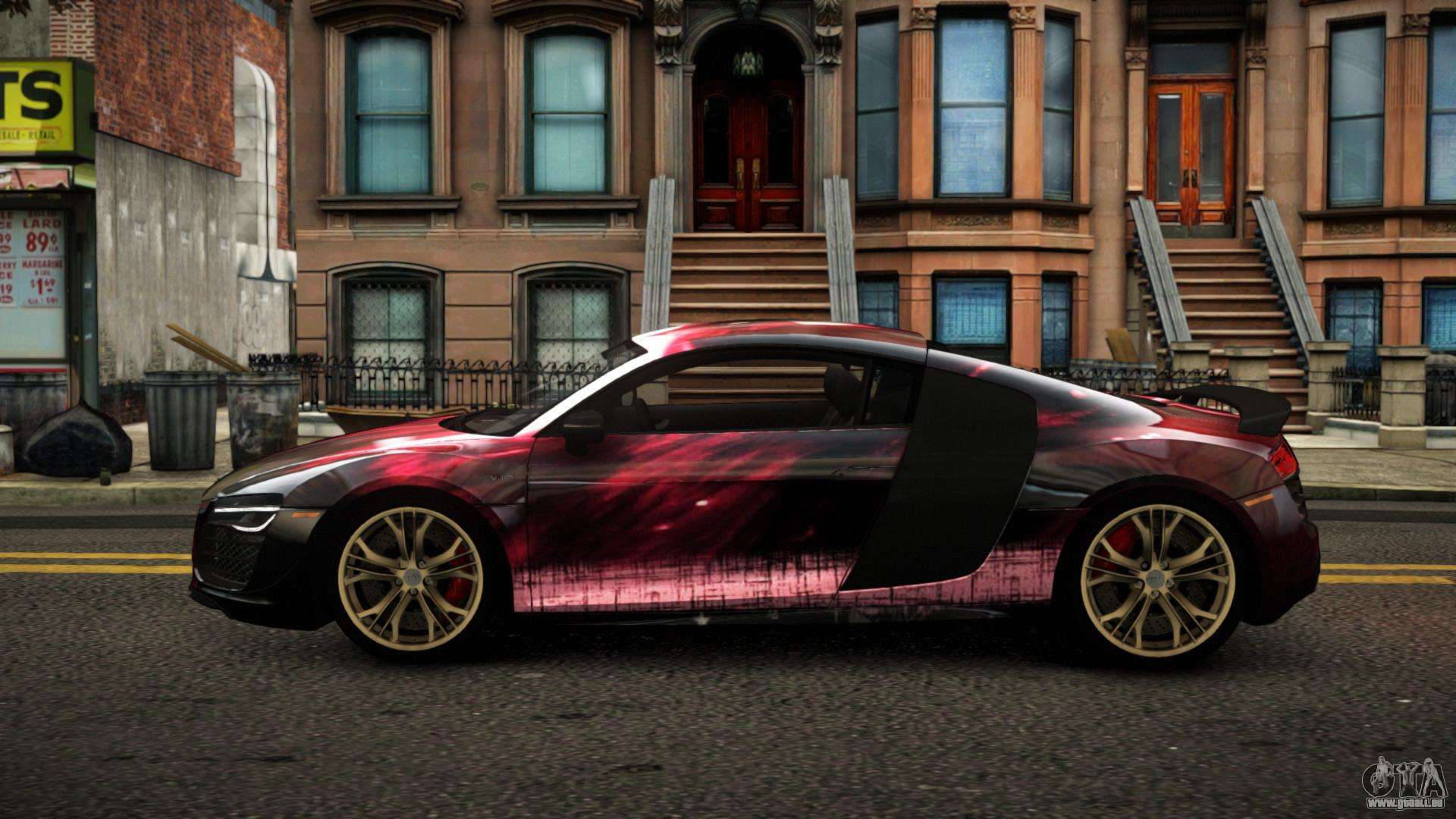 Um den Audi R8 Negelly S1 Mod für GTA 4 kostenlos herunterzuladen, folgen Sie den untenstehenden Links. Der automatische Installer ersetzt standardmäßig den Banshee, aber du kannst absolut jedes Standardfahrzeug aus dem Spiel wählen, das du durch ein neues Modell ersetzen möchtest.