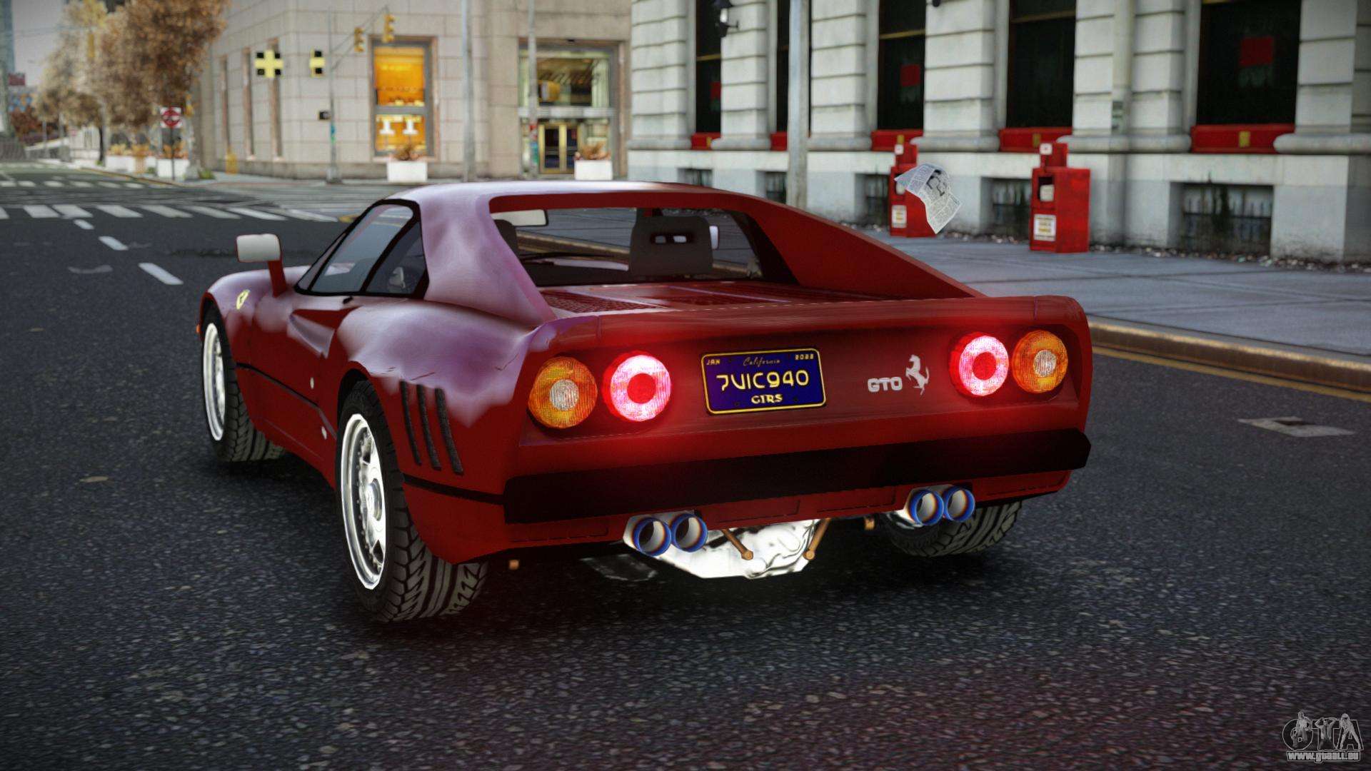 Müde von der Monotonie auf den Straßen von Liberty City, dann sind Sie hier genau richtig! Schau dir den Ferrari 288 Oqep Mod für GTA 4 an. Spüren Sie den Komfort und die hohe Qualität der Verarbeitung. Diversifizieren Sie die Straßen mit diesem Auto, und Sie werden zufrieden sein.