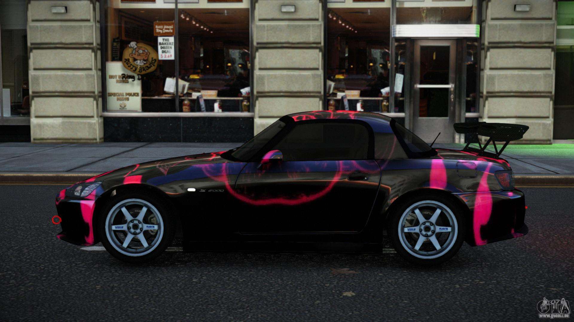 Mod Honda S2000 Wixis S13 für GTA 4 kann unten unter den Links heruntergeladen werden. Die Modifikation wird standardmäßig automatisch installiert, um den Banshee zu ersetzen, und mit Hilfe unseres Installateurs kannst du sie auch durch jedes Standard-Spielfahrzeug ersetzen.