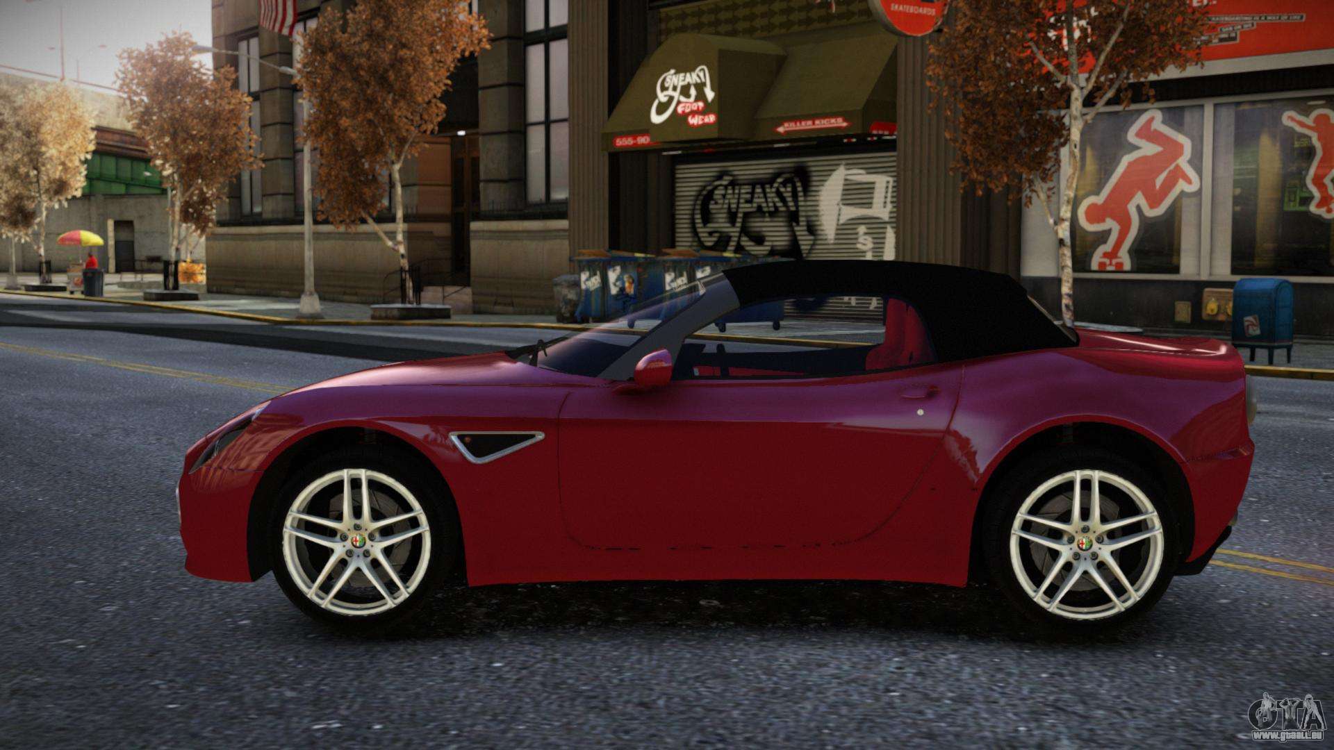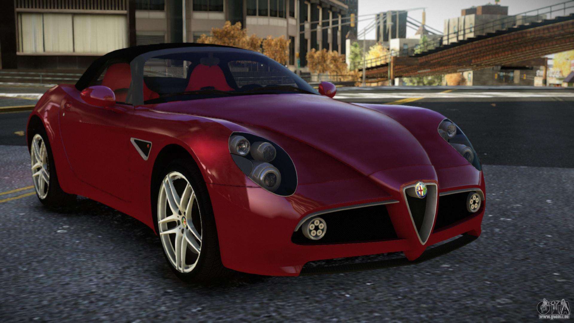 Um den Alfa Romeo 8C Pirefovoc Mod für GTA 4 kostenlos herunterzuladen, folgen Sie den untenstehenden Links. Der automatische Installer ersetzt standardmäßig den Banshee, aber du kannst absolut jedes Standardfahrzeug aus dem Spiel wählen, das du durch ein neues Modell ersetzen möchtest.
