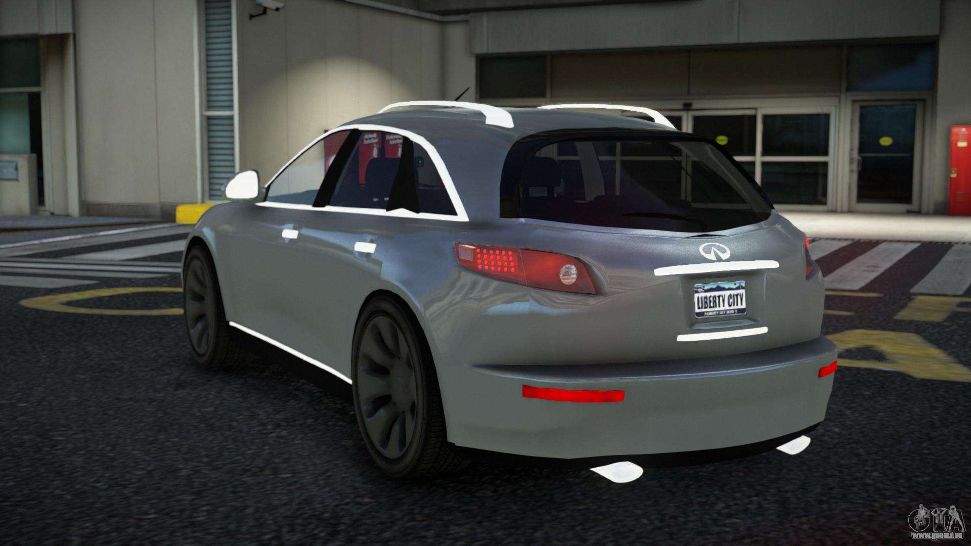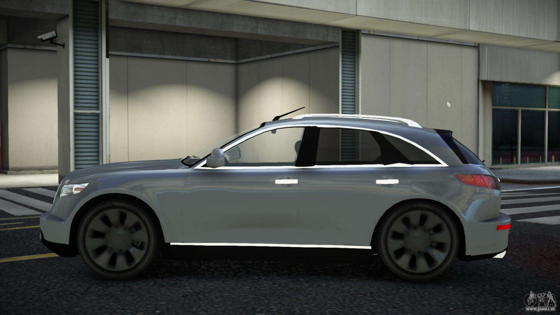 Werfen Sie einen Blick auf den Infiniti FX45 Niwi Car Mod für GTA 4, der die perfekte Balance zwischen Stil, Raffinesse und Athletik bietet. Wenn Sie Abenteuer mögen, dann ist dieses Auto genau das Richtige für Sie. Der robuste Stil lässt keinen Zweifel daran, dass das Auto ein großartiger Begleiter sein wird.