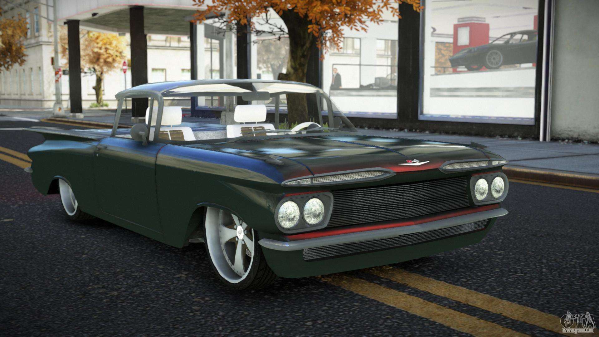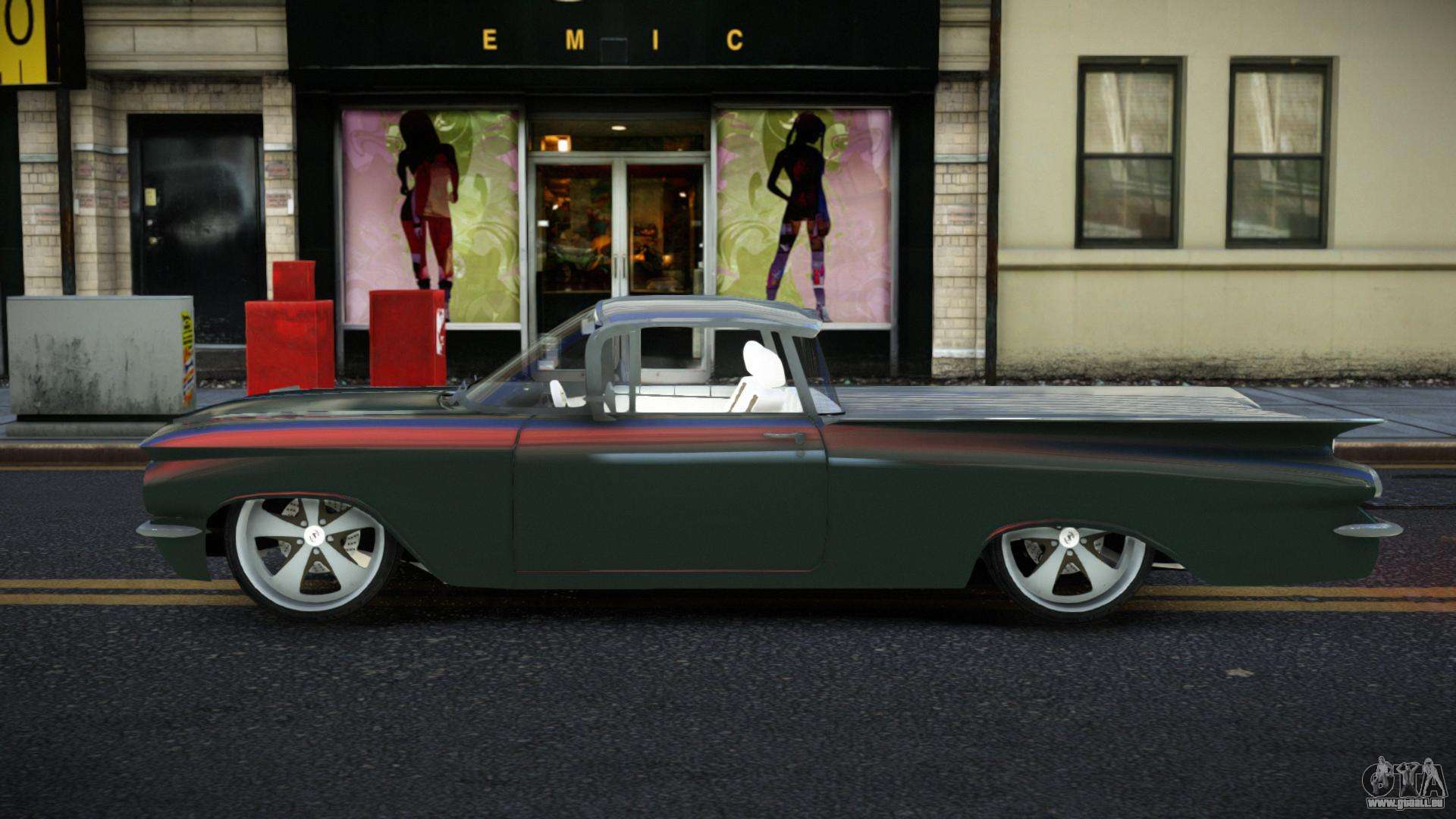 Der Chevrolet El Camino Xoowa Mod für GTA 4 kann unten unter den Links heruntergeladen werden. Die Modifikation wird standardmäßig automatisch installiert, um den Feltzer zu ersetzen, und mit Hilfe unseres Installateurs kannst du sie durch jedes Standard-Spielfahrzeug ersetzen.
