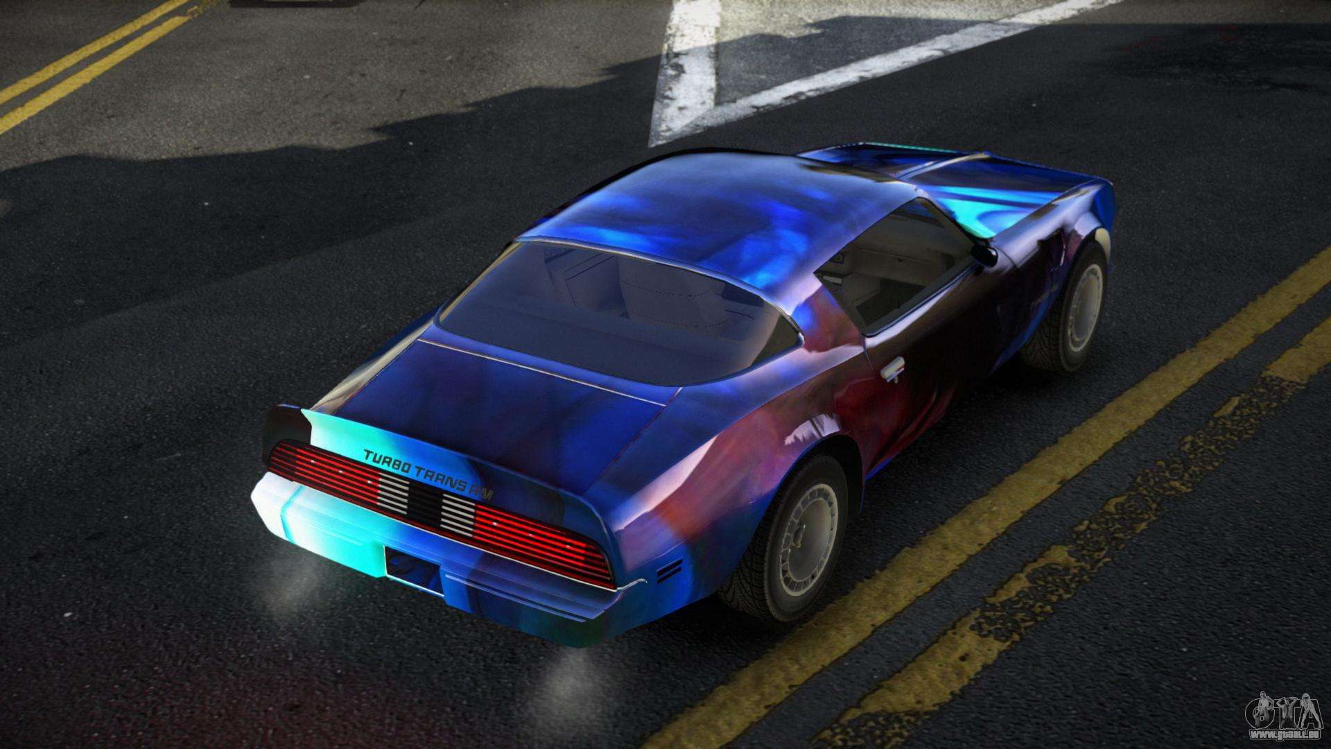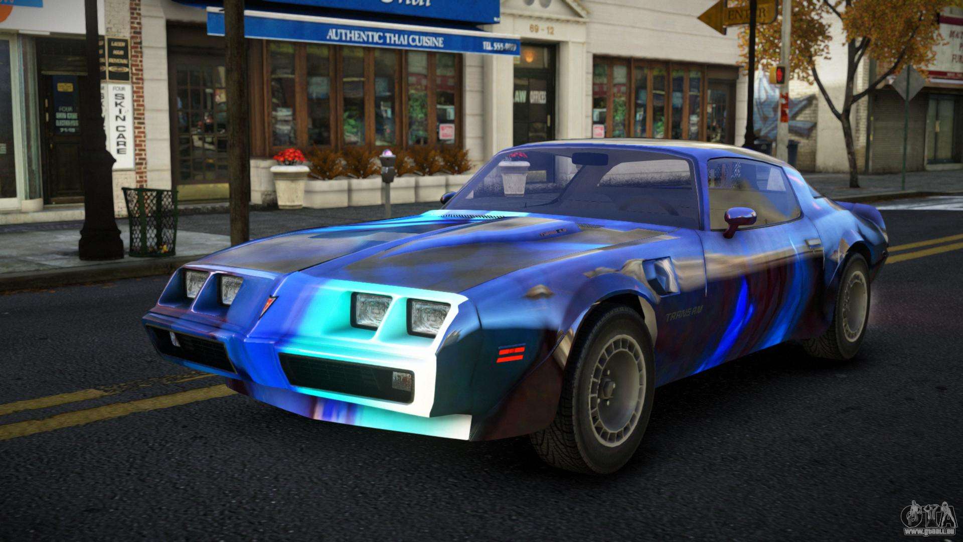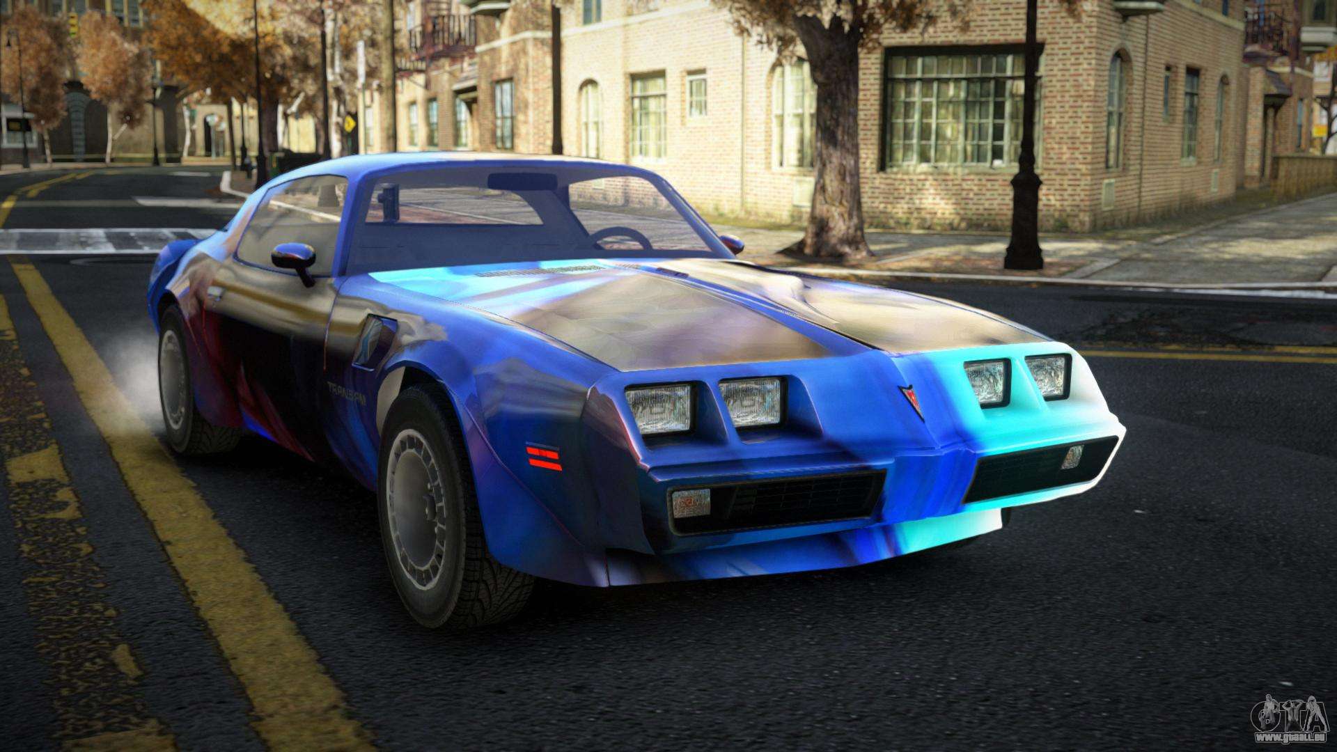 Der Pontiac Trans AM Exabin S11 Mod für GTA 4 kann unten über die Links heruntergeladen werden. Die Modifikation wird standardmäßig automatisch installiert, um den Feltzer zu ersetzen, und mit Hilfe unseres Installateurs kannst du sie durch jedes Standard-Spielfahrzeug ersetzen.