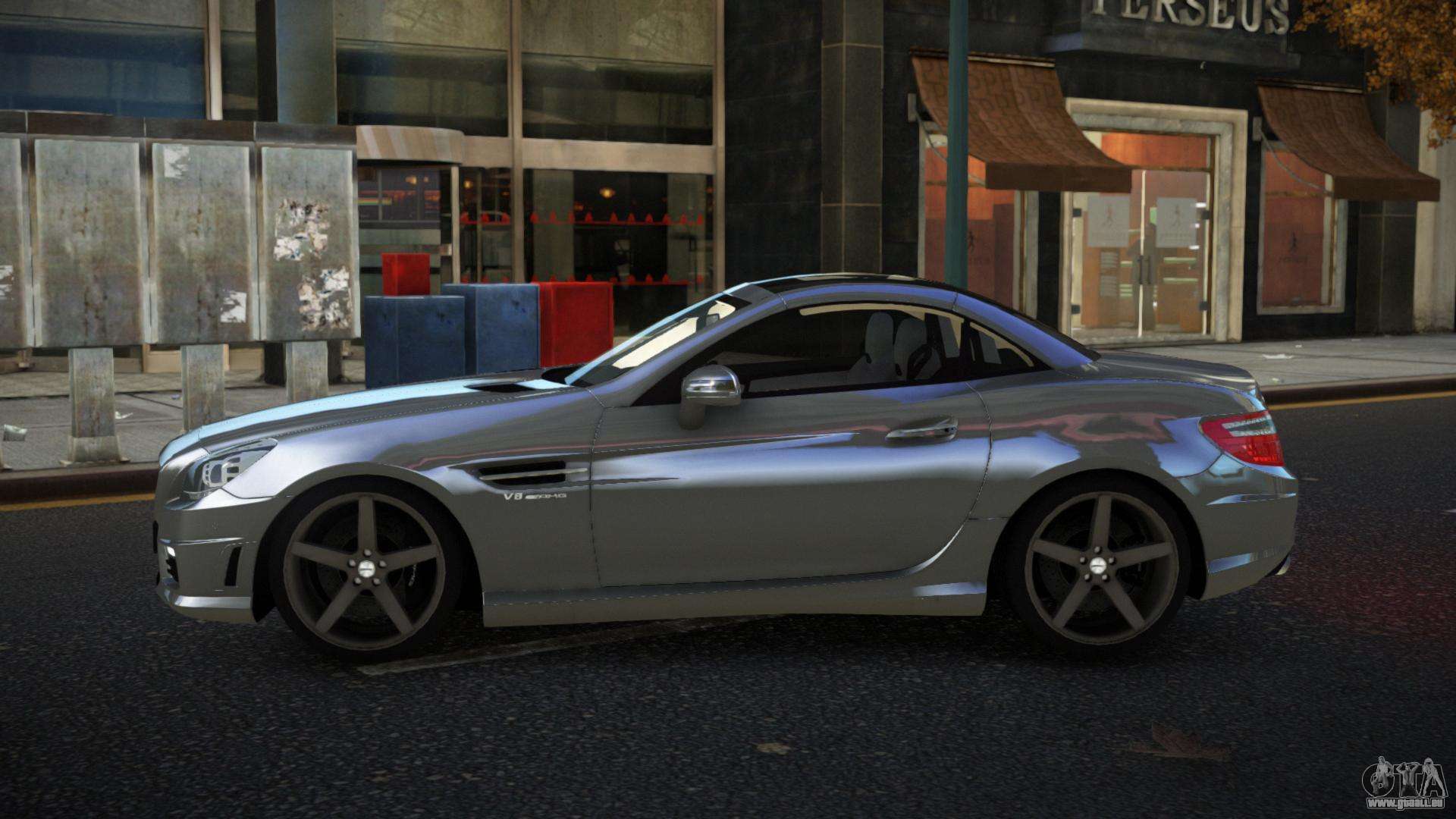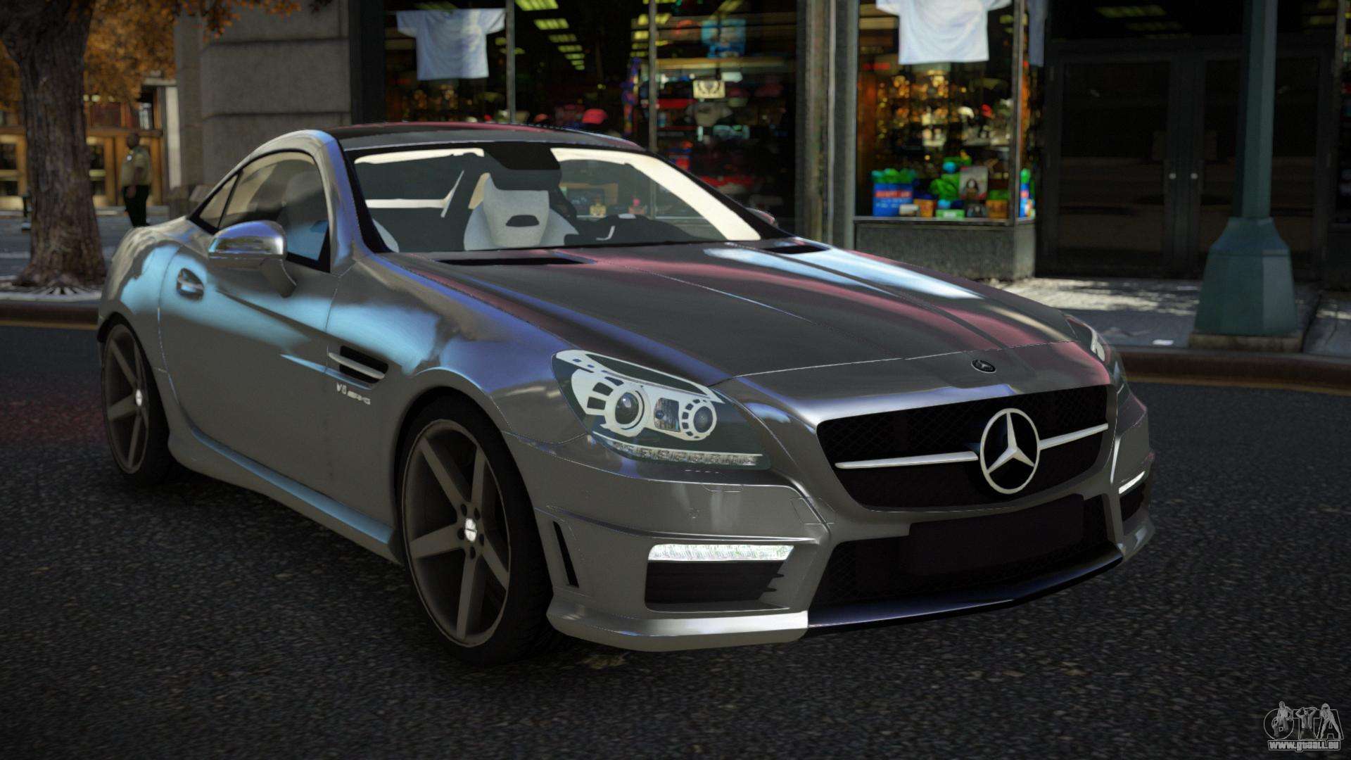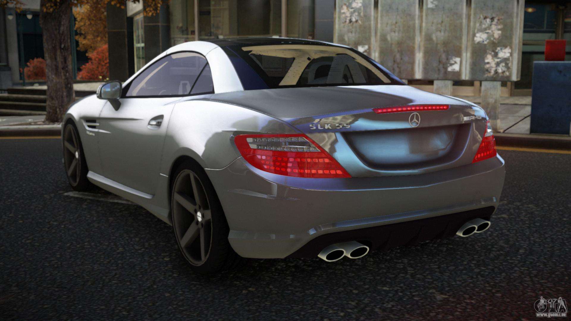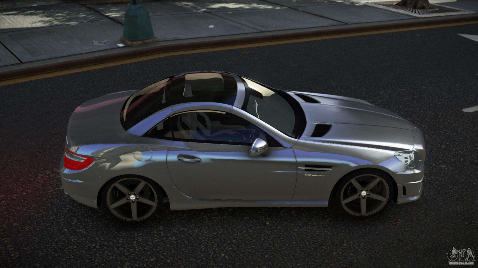 Mod Mercedes-Benz SLK55 AMG Qiwa für GTA 4 kann unten über die Links heruntergeladen werden. Die Modifikation wird standardmäßig automatisch installiert, um den Feltzer zu ersetzen, und mit Hilfe unseres Installateurs kannst du sie durch jedes Standard-Spielfahrzeug ersetzen.