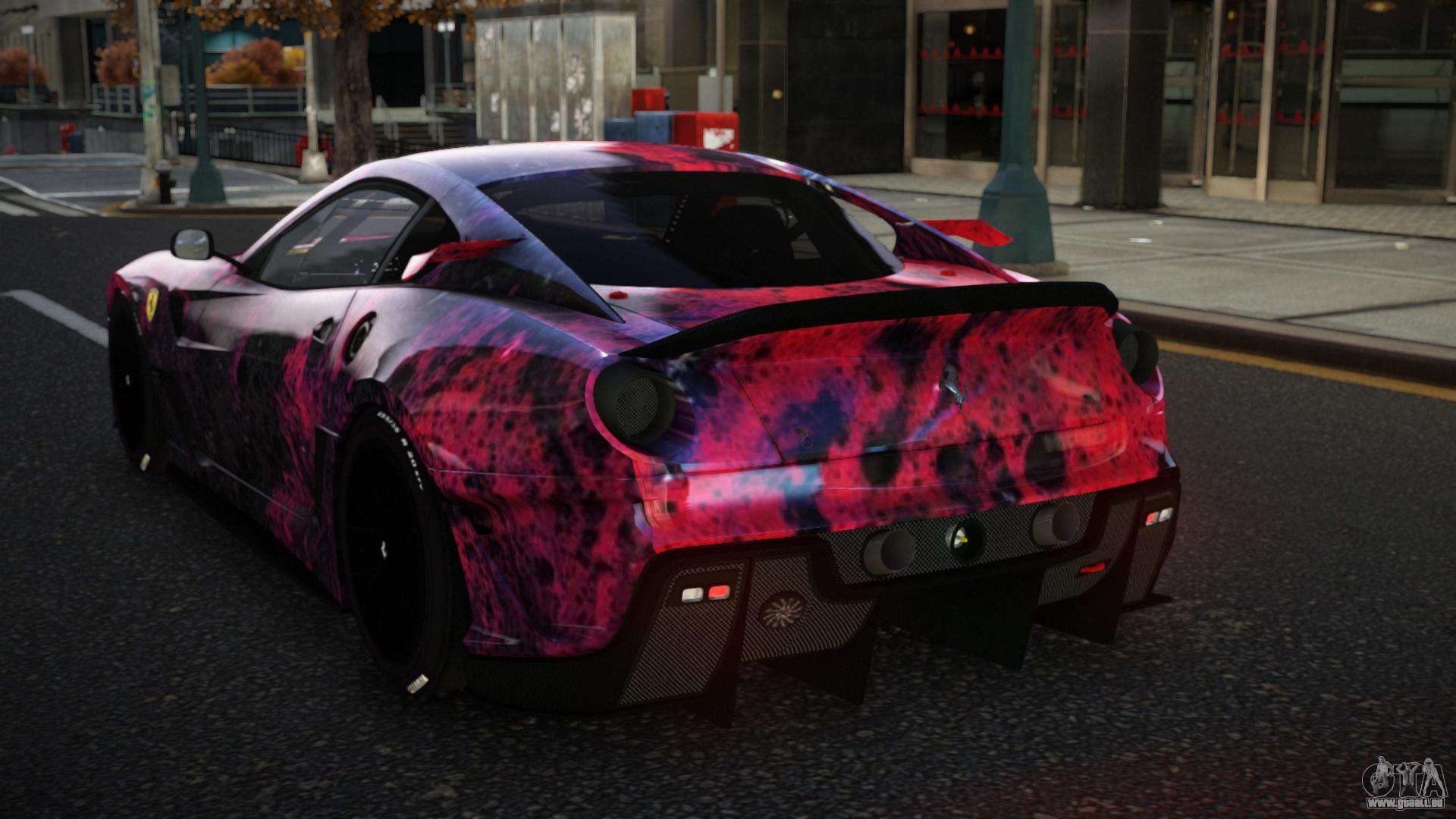 Mod Ferrari 599XX Hunsy S3 für GTA 4 kann unten über die Links heruntergeladen werden. Die Modifikation wird standardmäßig automatisch installiert, um den Banshee zu ersetzen, und mit Hilfe unseres Installateurs kannst du sie auch durch jedes Standard-Spielfahrzeug ersetzen.
