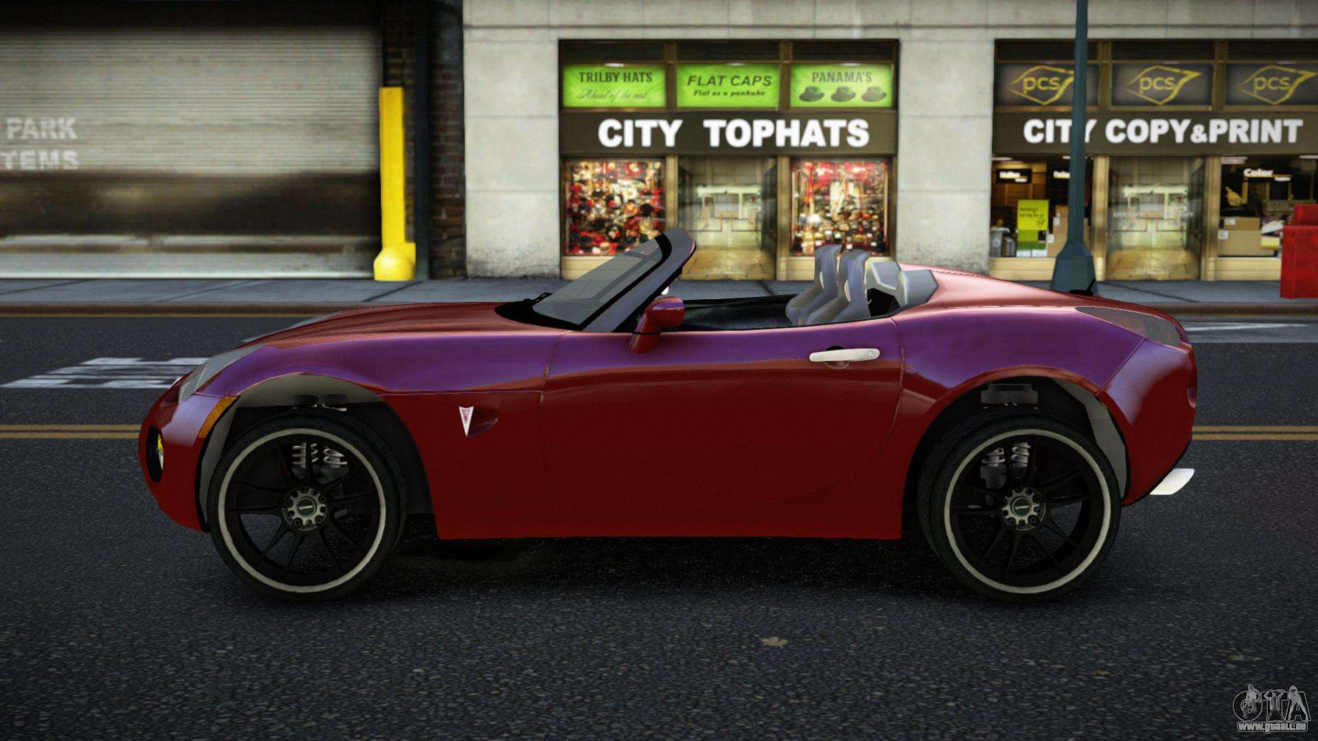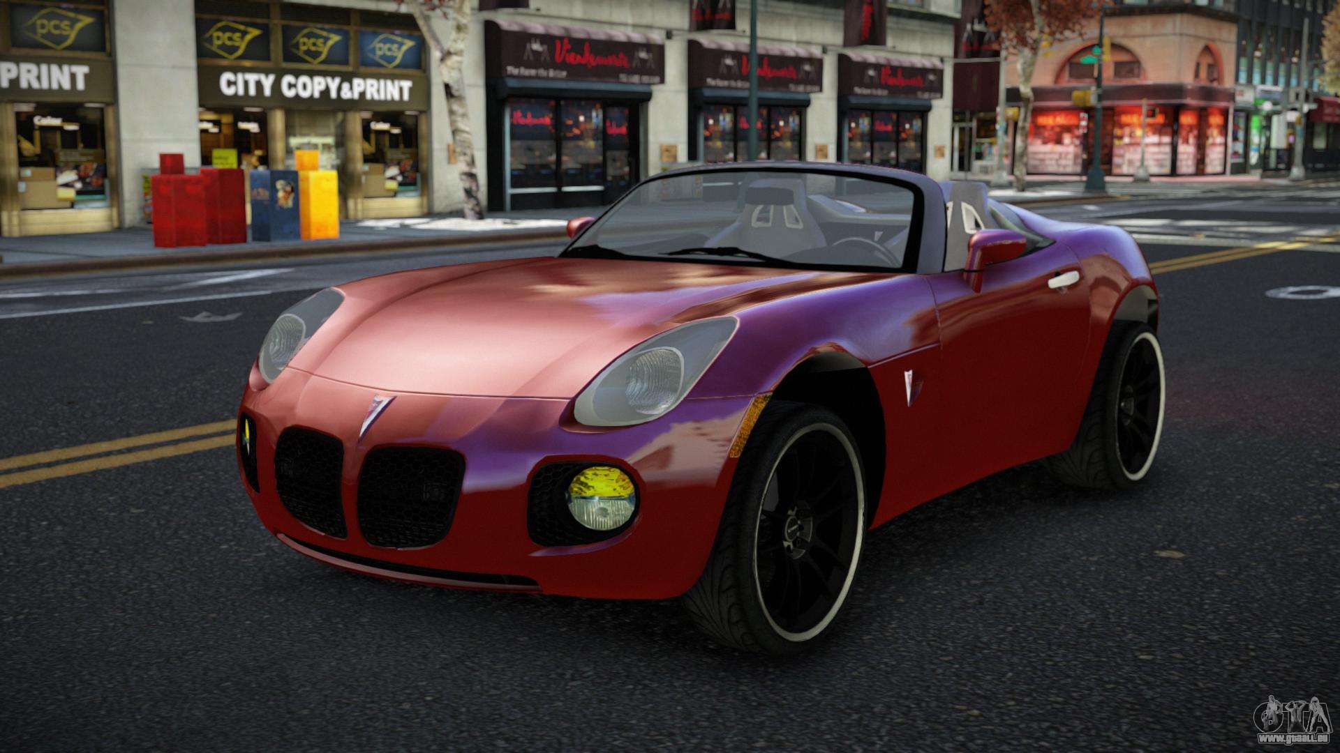 Entdecken Sie ein einzigartiges Auto, das Design, Technologie und Leistung im spannenden Pontiac Solstice Fozwiwi für GTA 4 verbindet. Stilvoll, sportlich und praktisch – es ist das perfekte Auto für Ihre Reisen.