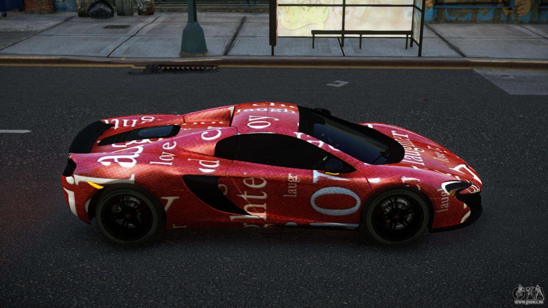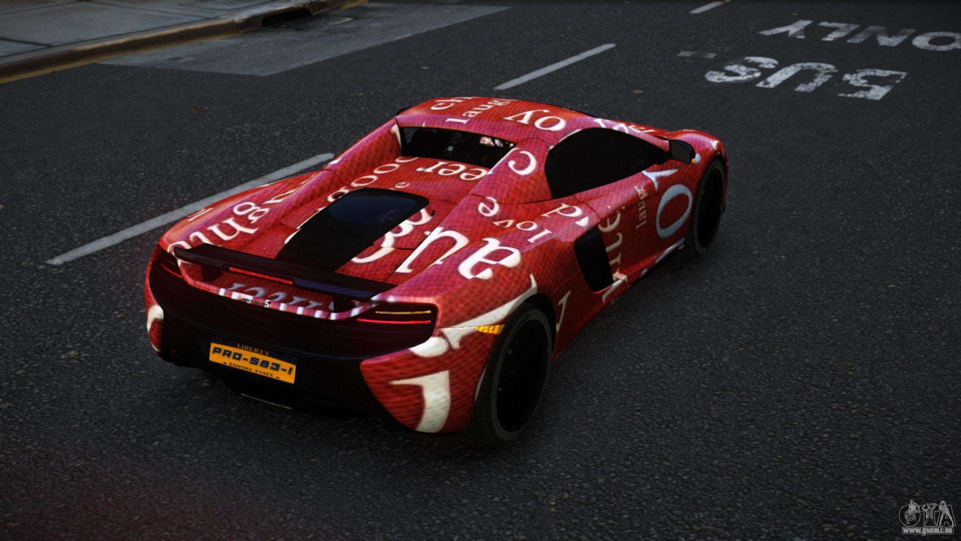 Grüße, Grand-Diebstahl-Auto-Liebhaber! Ich empfehle, auf den McLaren 650S Tinley S2 Mod für GTA 4 zu achten. Spüren Sie all die Kraft, Qualität und Anmut dieses Autos selbst!