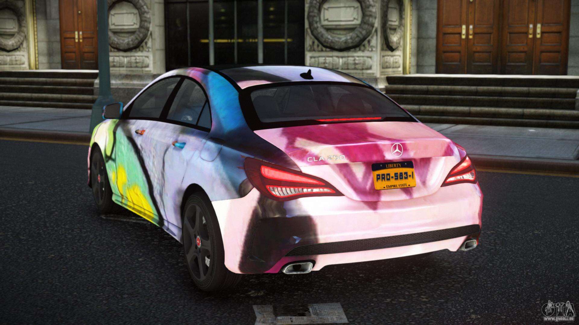 Mod Mercedes-Benz CLA AMG Kayah S3 für GTA 4 kann unten über die Links heruntergeladen werden. Die Modifikation wird standardmäßig automatisch installiert, um den Admiral zu ersetzen, und mit Hilfe unseres Installateurs können Sie sie auch durch jedes Standard-Spielfahrzeug ersetzen.