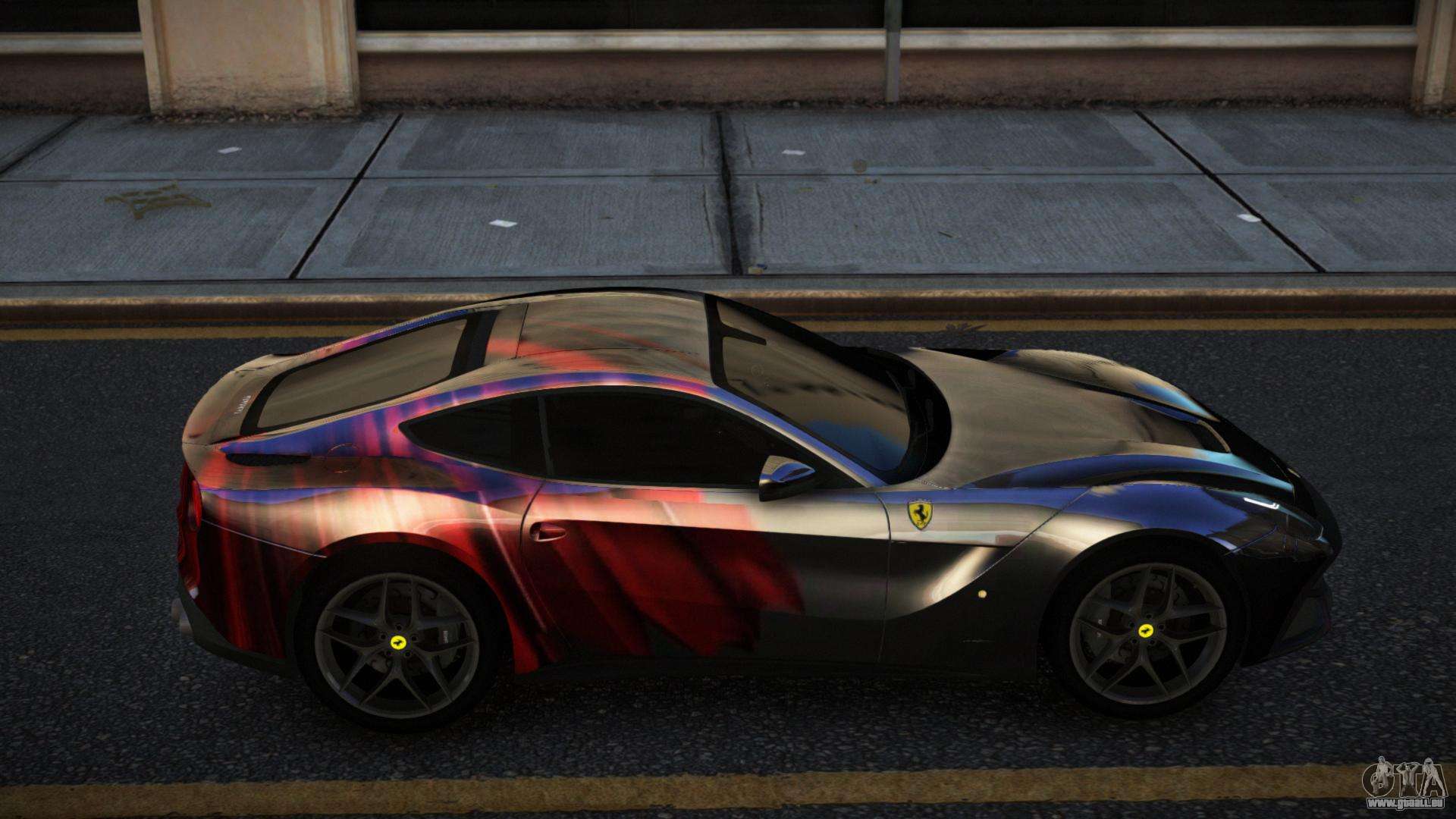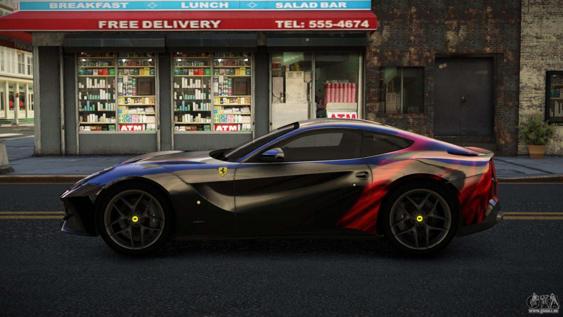 Der Ferrari F12 Gelmake S1 Mod für GTA 4 kann unten über die Links heruntergeladen werden. Die Modifikation wird standardmäßig automatisch installiert, um den Feltzer zu ersetzen, und mit Hilfe unseres Installateurs kannst du sie durch jedes Standard-Spielfahrzeug ersetzen.
