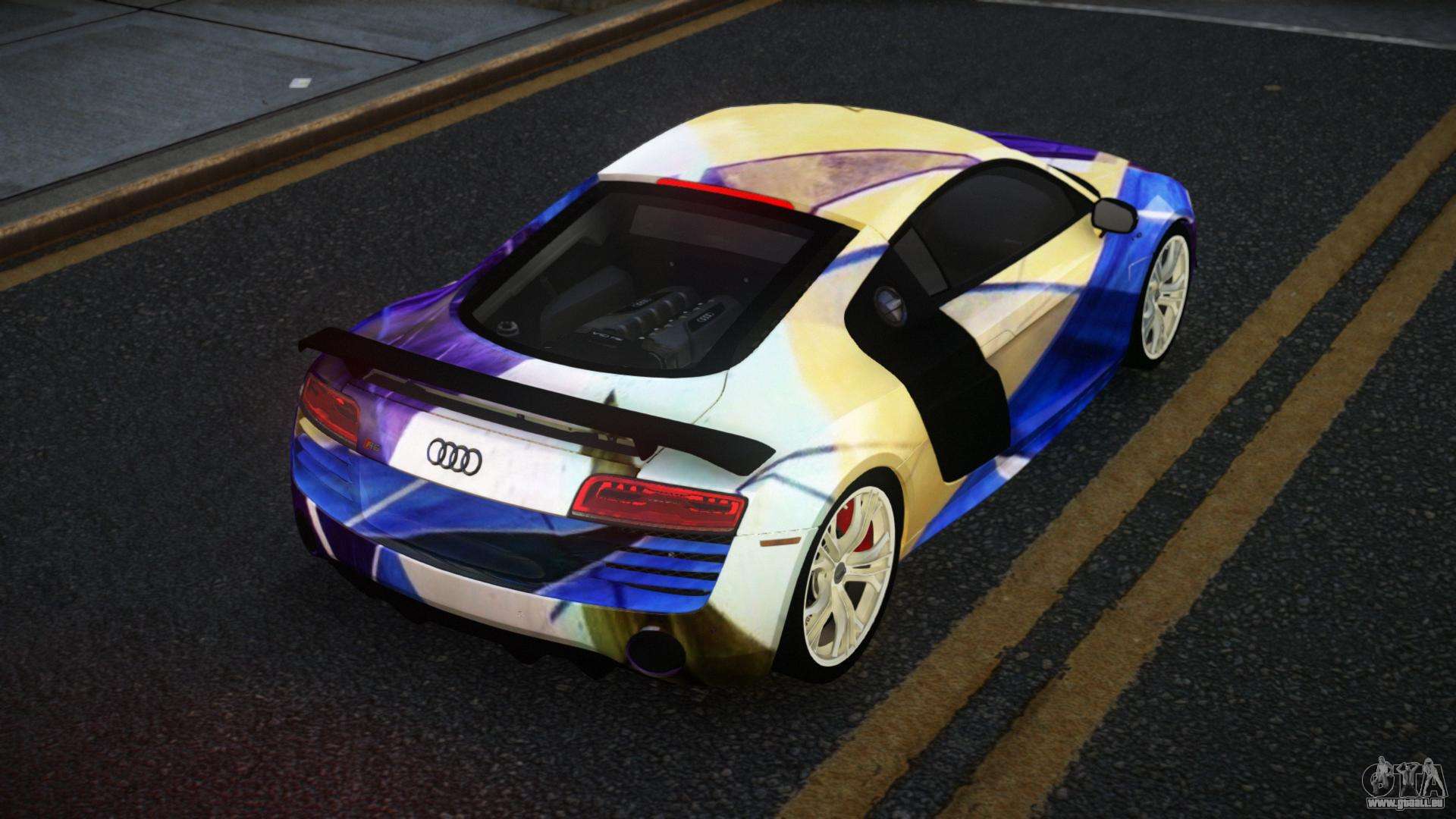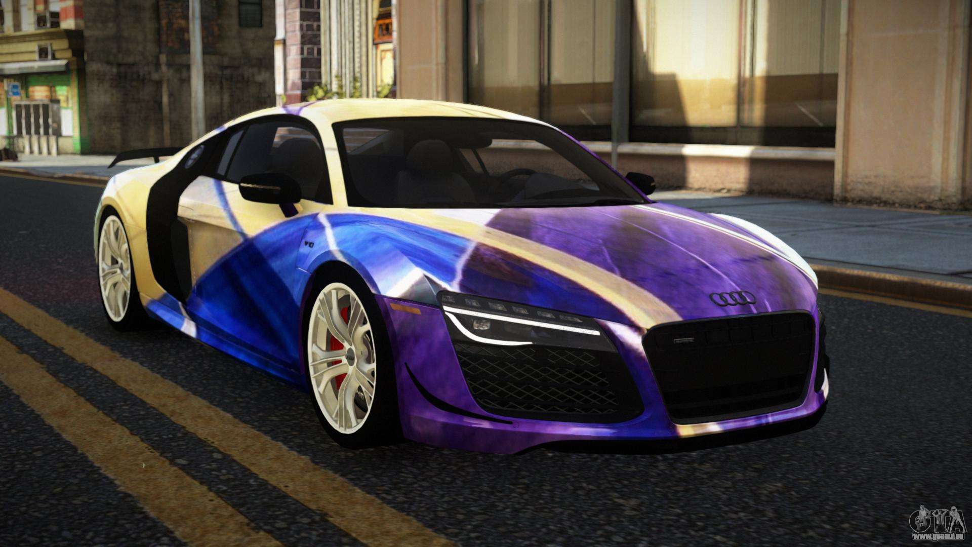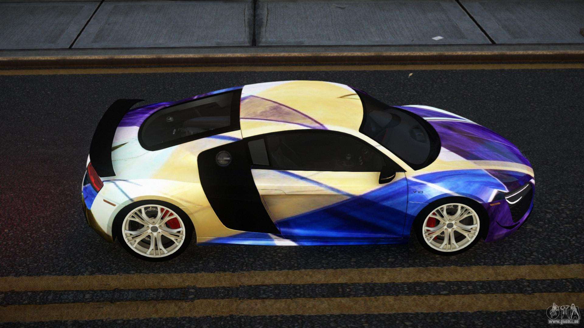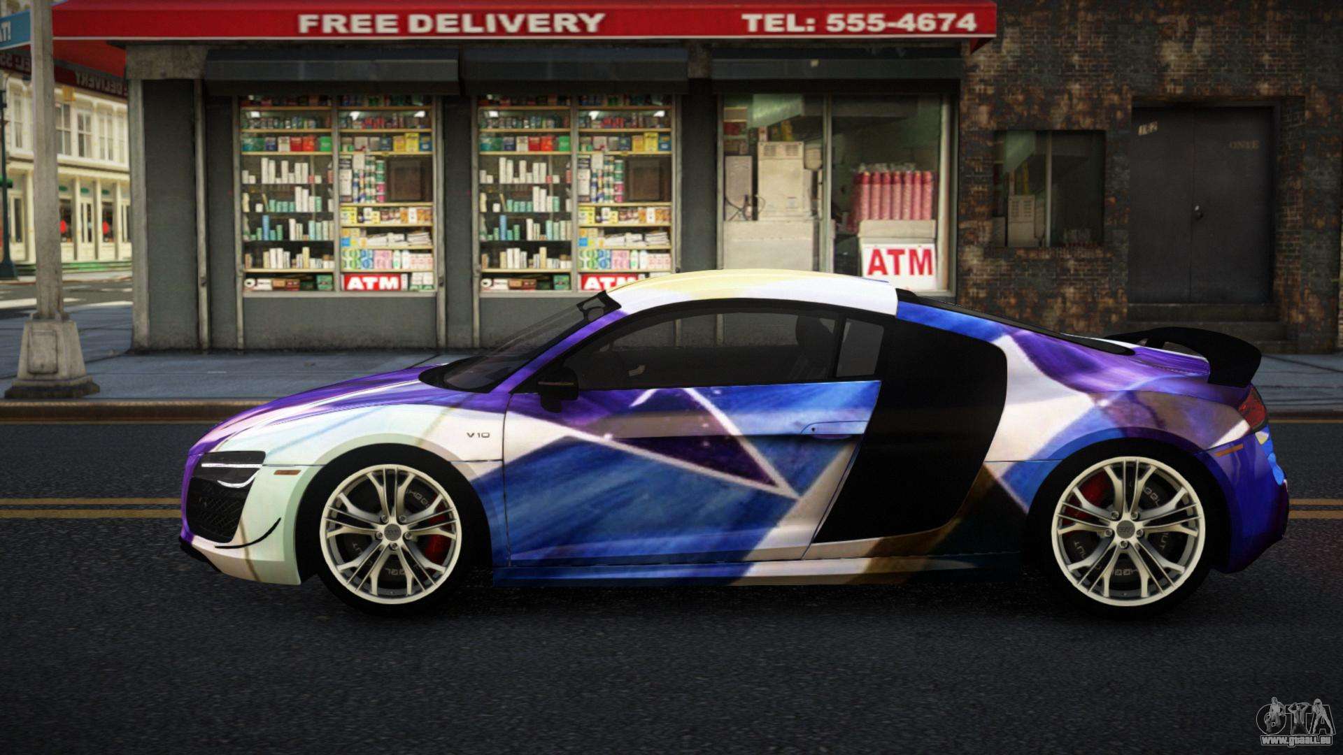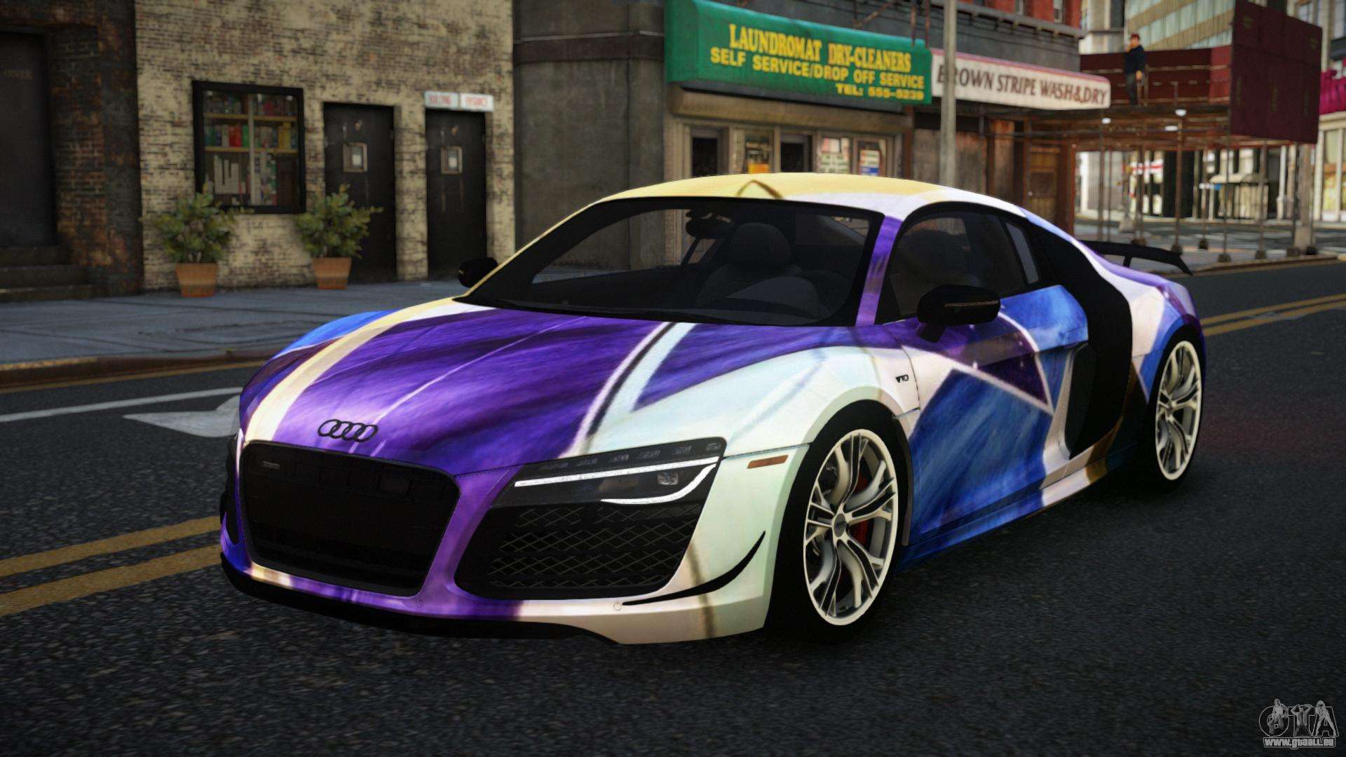 Mod Audi R8 Lychfer S13 für GTA 4 kann unten über die Links heruntergeladen werden. Die Modifikation wird standardmäßig automatisch installiert, um den Banshee zu ersetzen, und mit Hilfe unseres Installateurs kannst du sie auch durch jedes Standard-Spielfahrzeug ersetzen.