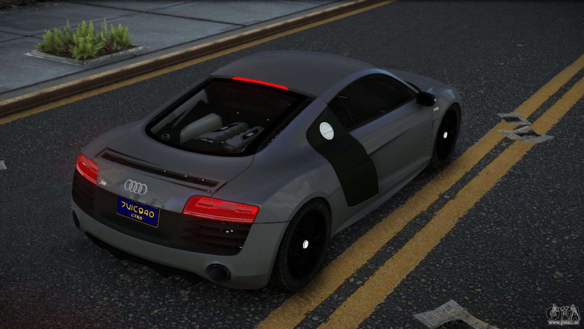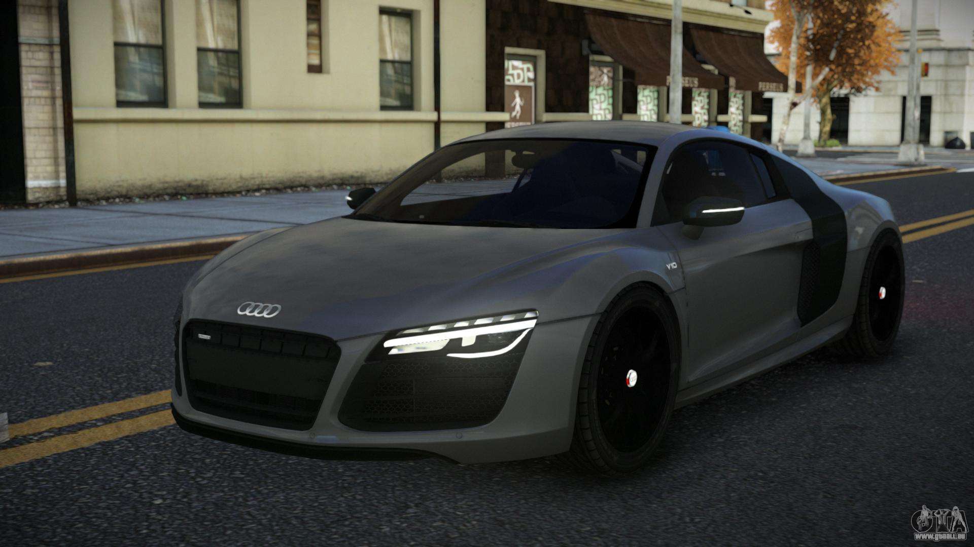 Den Audi R8 Ezav Auto-Mod für GTA 4 können Sie kostenlos herunterladen, indem Sie auf den untenstehenden Link klicken. Automatische Installation, standardmäßig um Infernus zu ersetzen, oder mit Hilfe des Installateurs kannst du jedes andere Standardauto aus dem Spiel wählen.