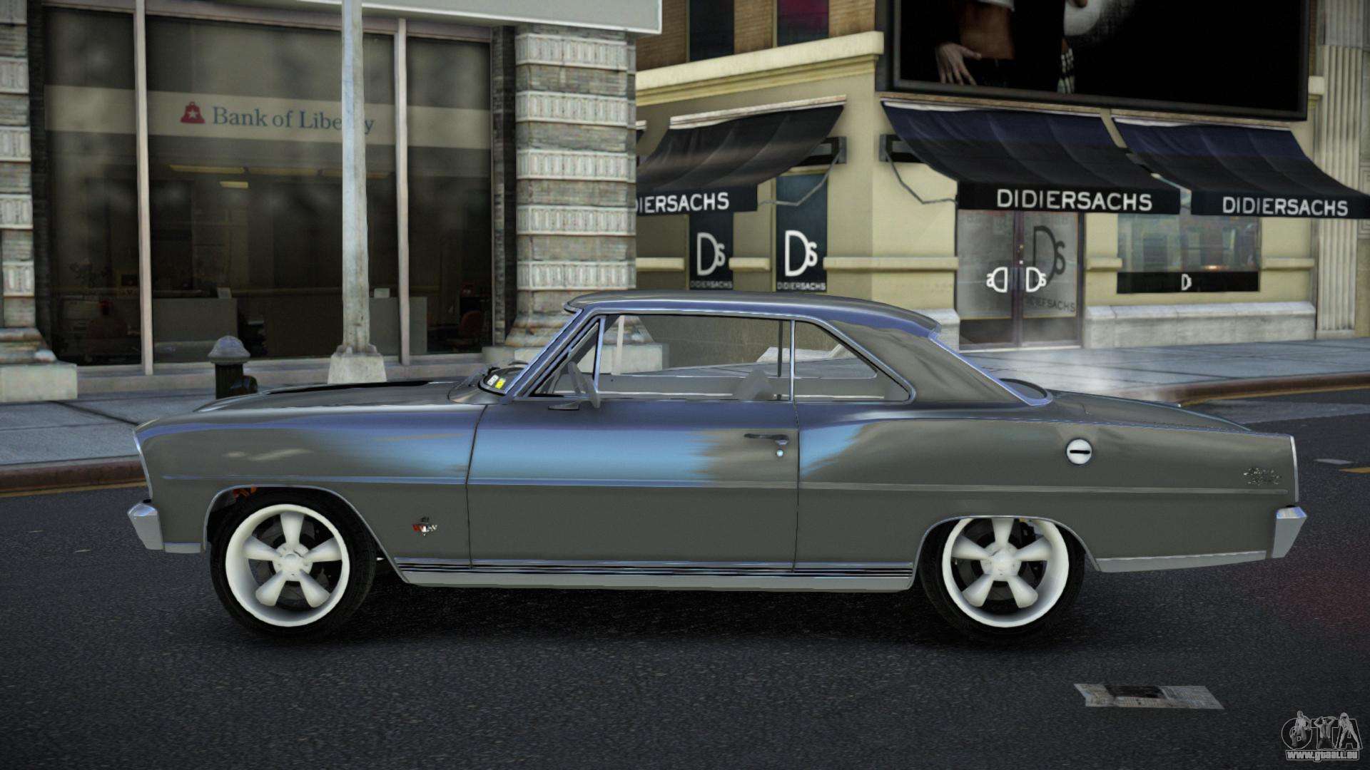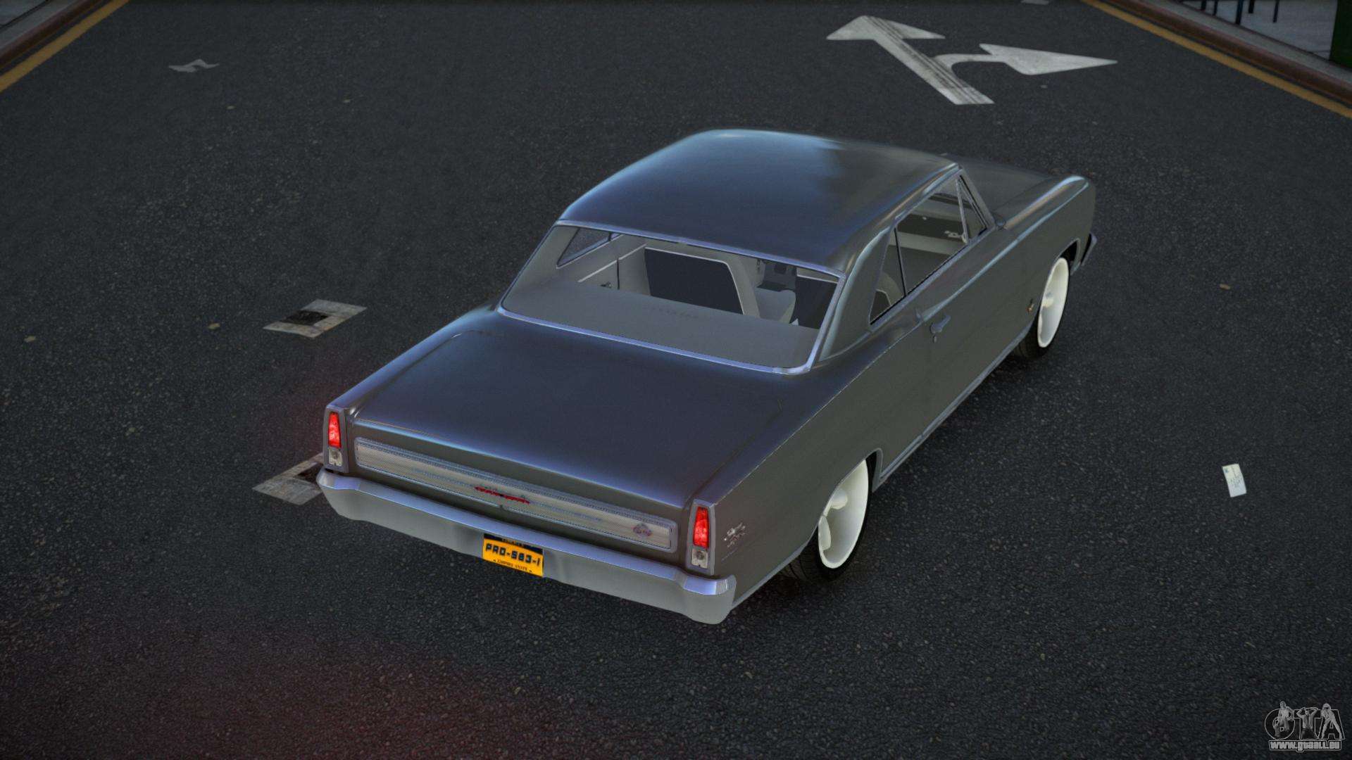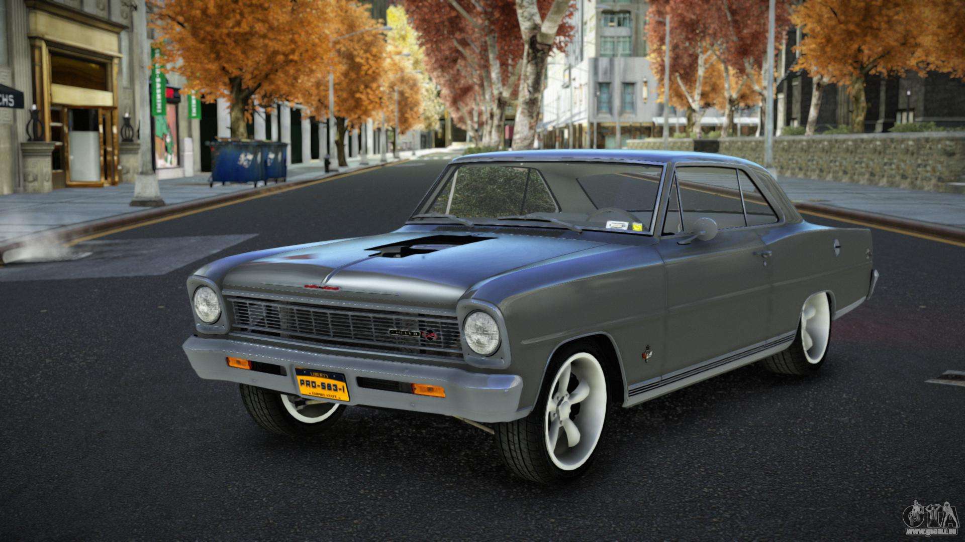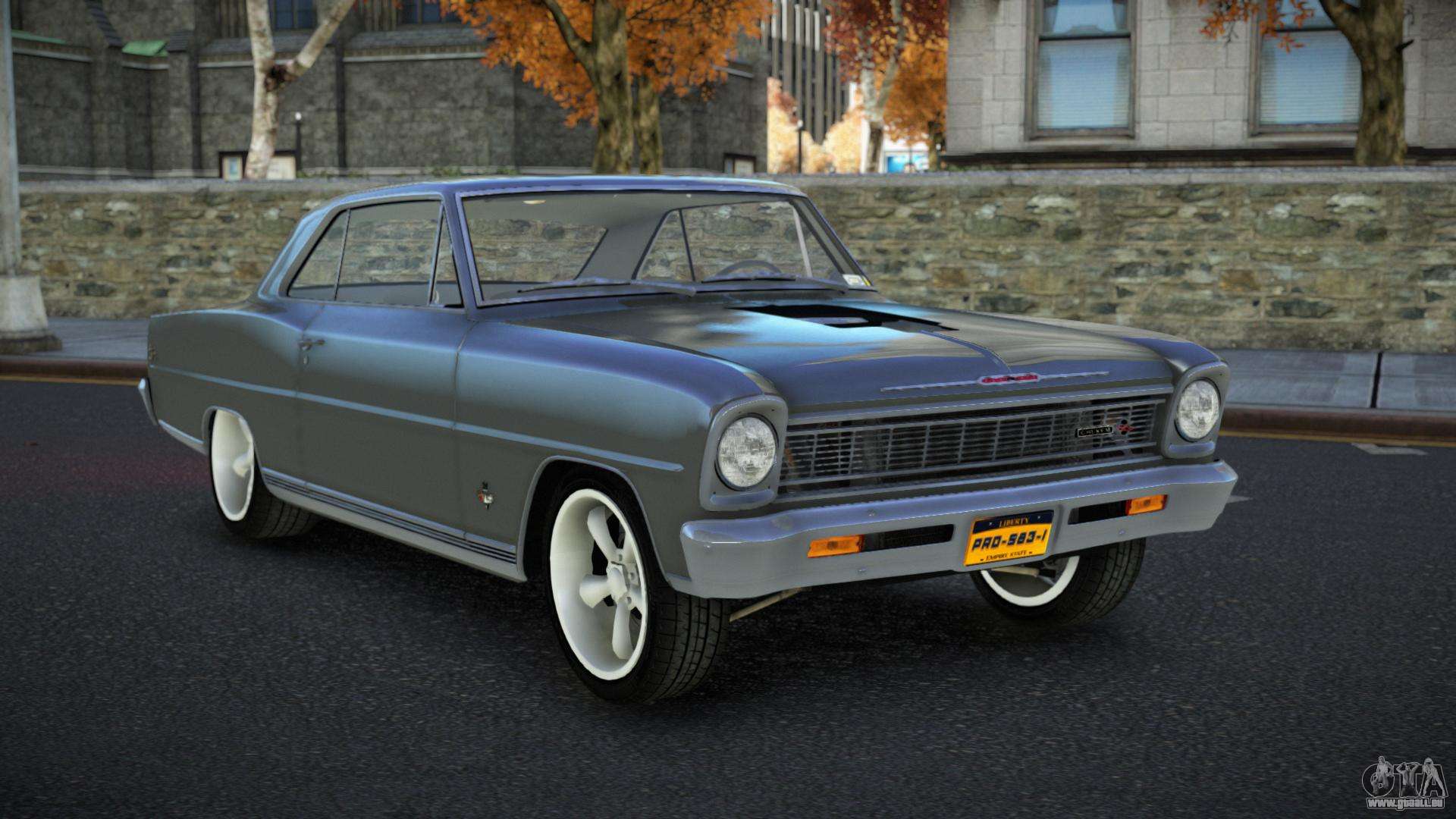 Der Chevrolet Nova Onuz Mod für GTA 4 kann unten über die Links heruntergeladen werden. Die Modifikation wird standardmäßig automatisch installiert, um den Sabre GT zu ersetzen, und mit Hilfe unseres Installateurs können Sie sie durch jedes Standard-Spielfahrzeug ersetzen.