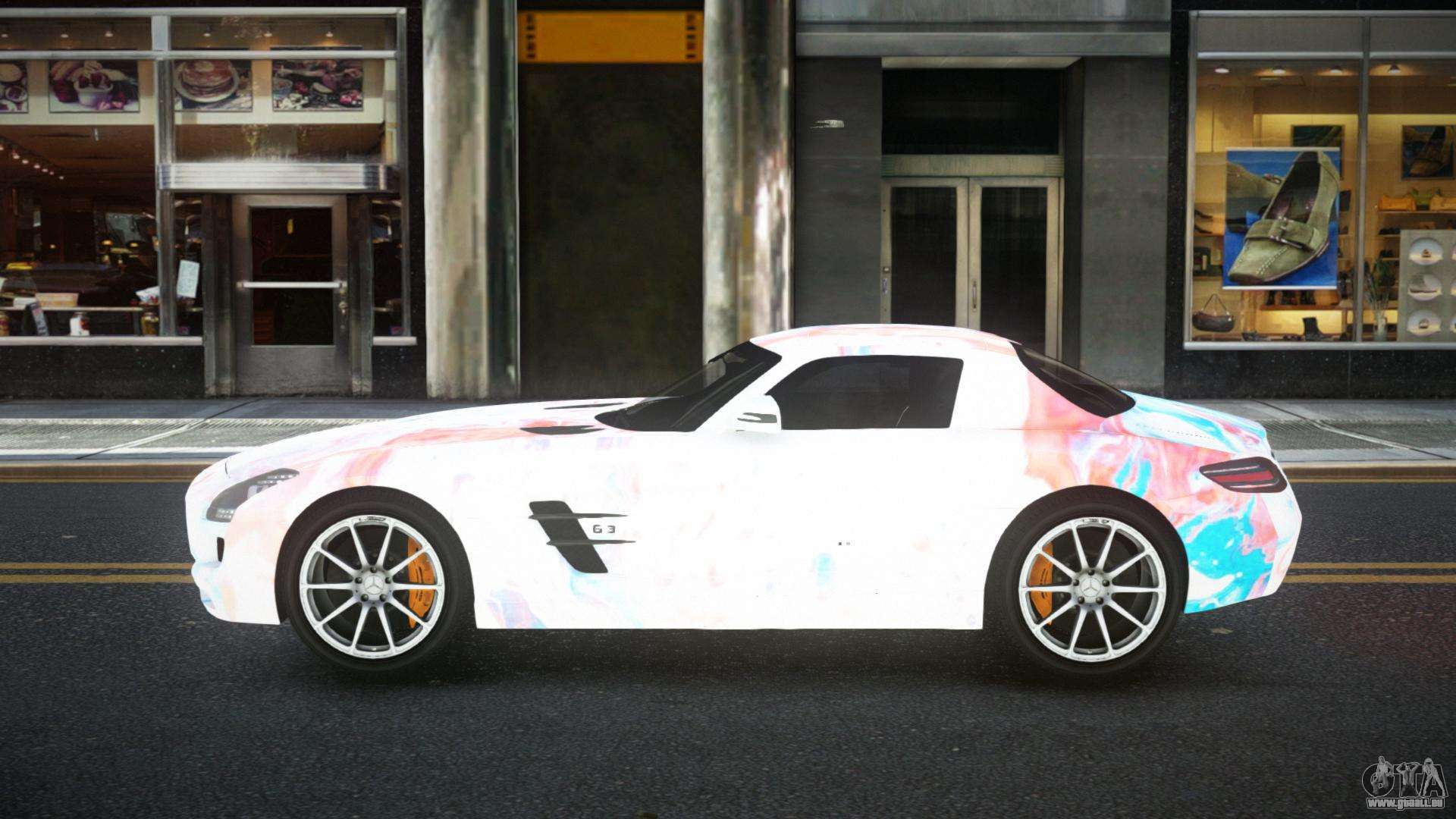 Sie können den ganzen Charme des Autos genießen, indem Sie den Mercedes-Benz SLS Tuid S12 Mod für GTA 4 herunterladen, indem Sie auf die untenstehenden Links klicken. Der Mod wird automatisch mit zwei Klicks installiert, standardmäßig ersetzt er die Banshee oder wählt ein anderes Fahrzeug aus dem Spiel, das du transformieren möchtest.