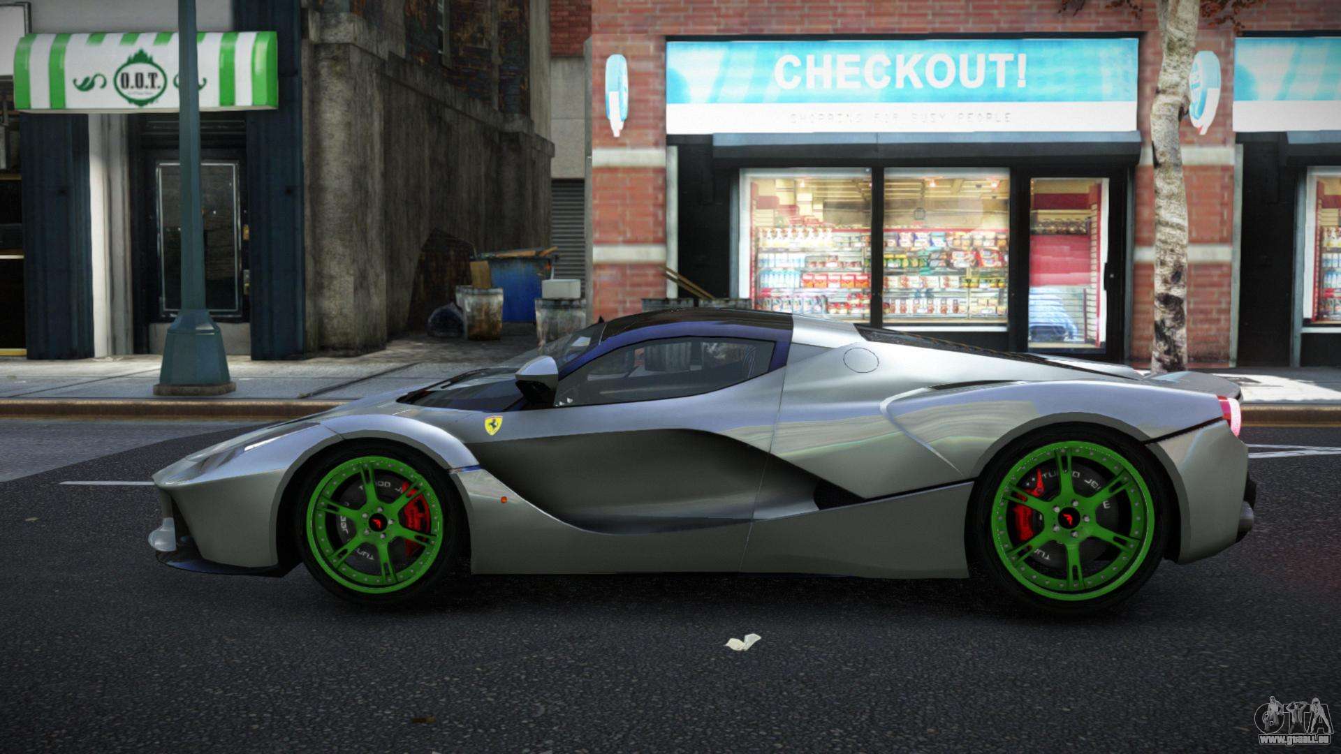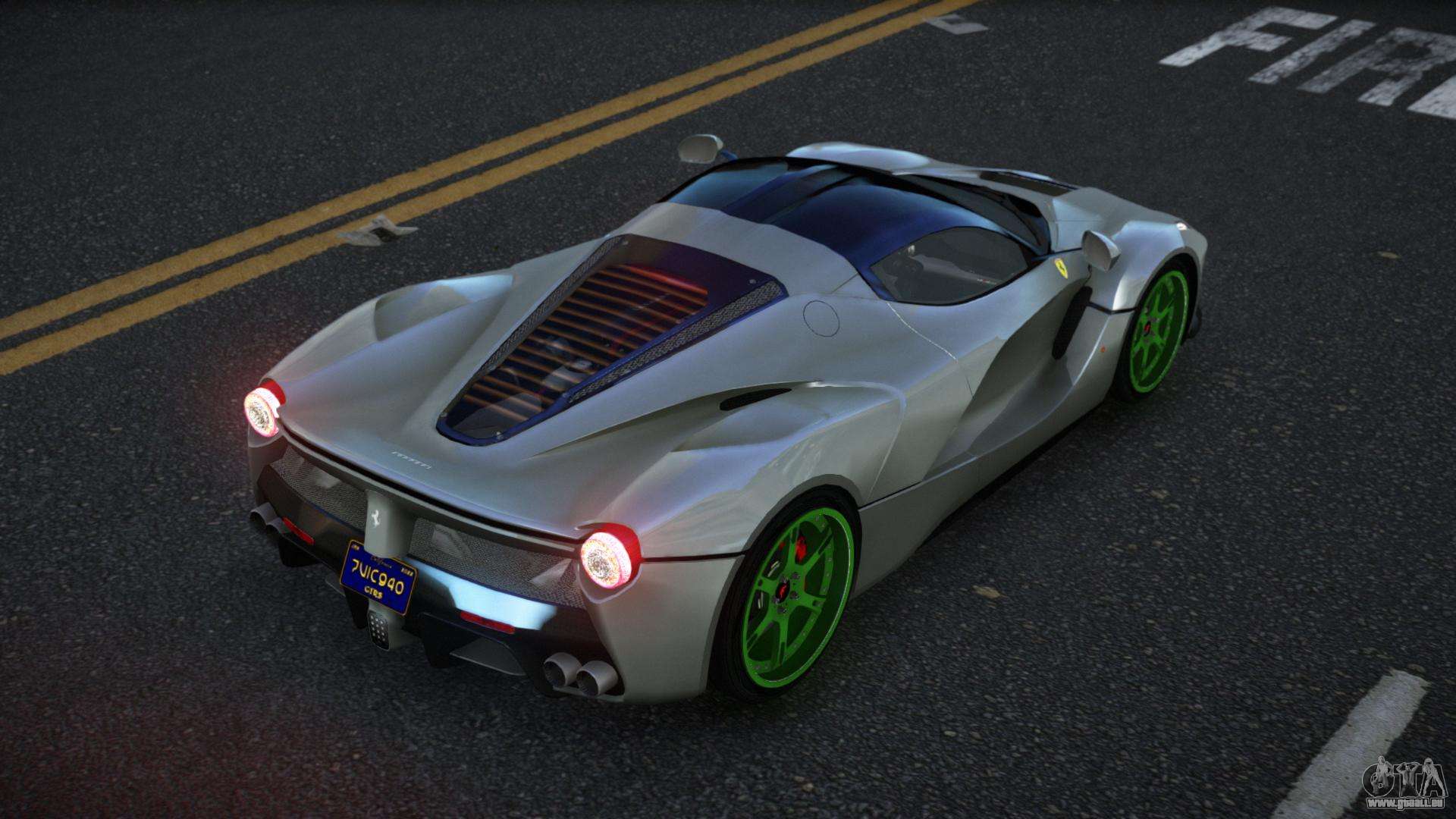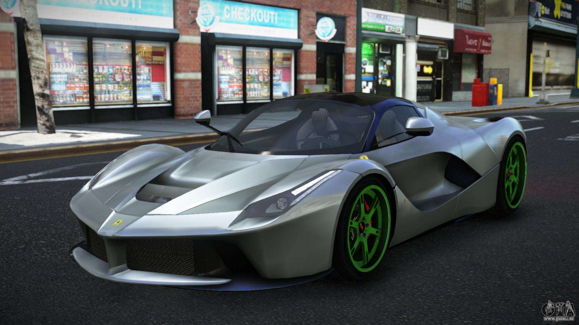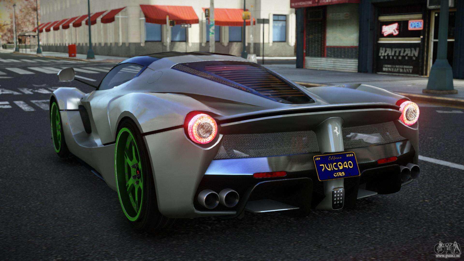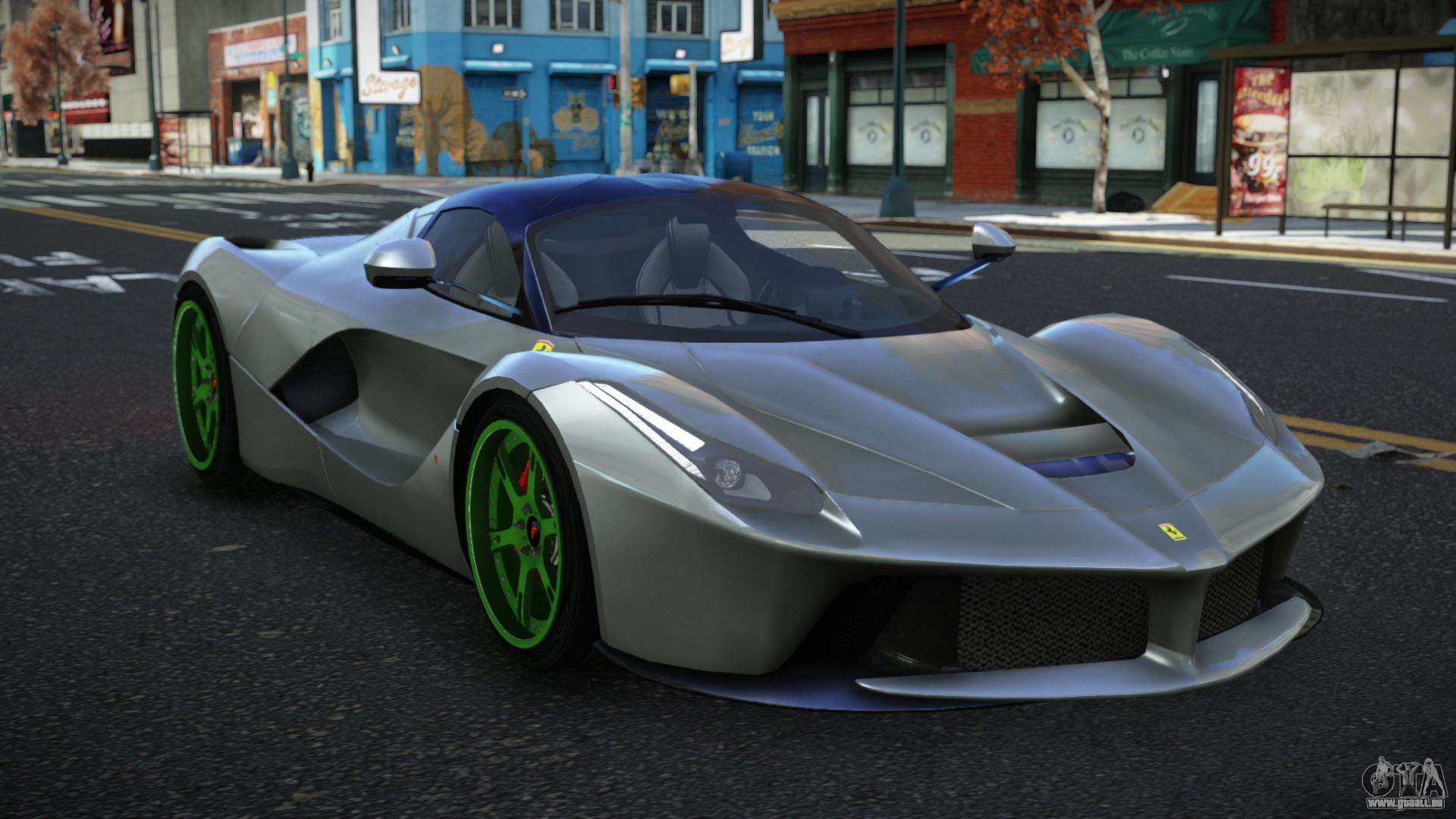 Über die untenstehenden Links können Sie den Mod für das Ferrari LaFerrari Jesmin Auto für GTA 4 kostenlos herunterladen. Standardmäßig ersetzt der Mod das Auto automatisch durch eine Banshee. Mit Hilfe unseres Installateurs können Sie das Auto durch ein anderes Standardfahrzeug ersetzen.