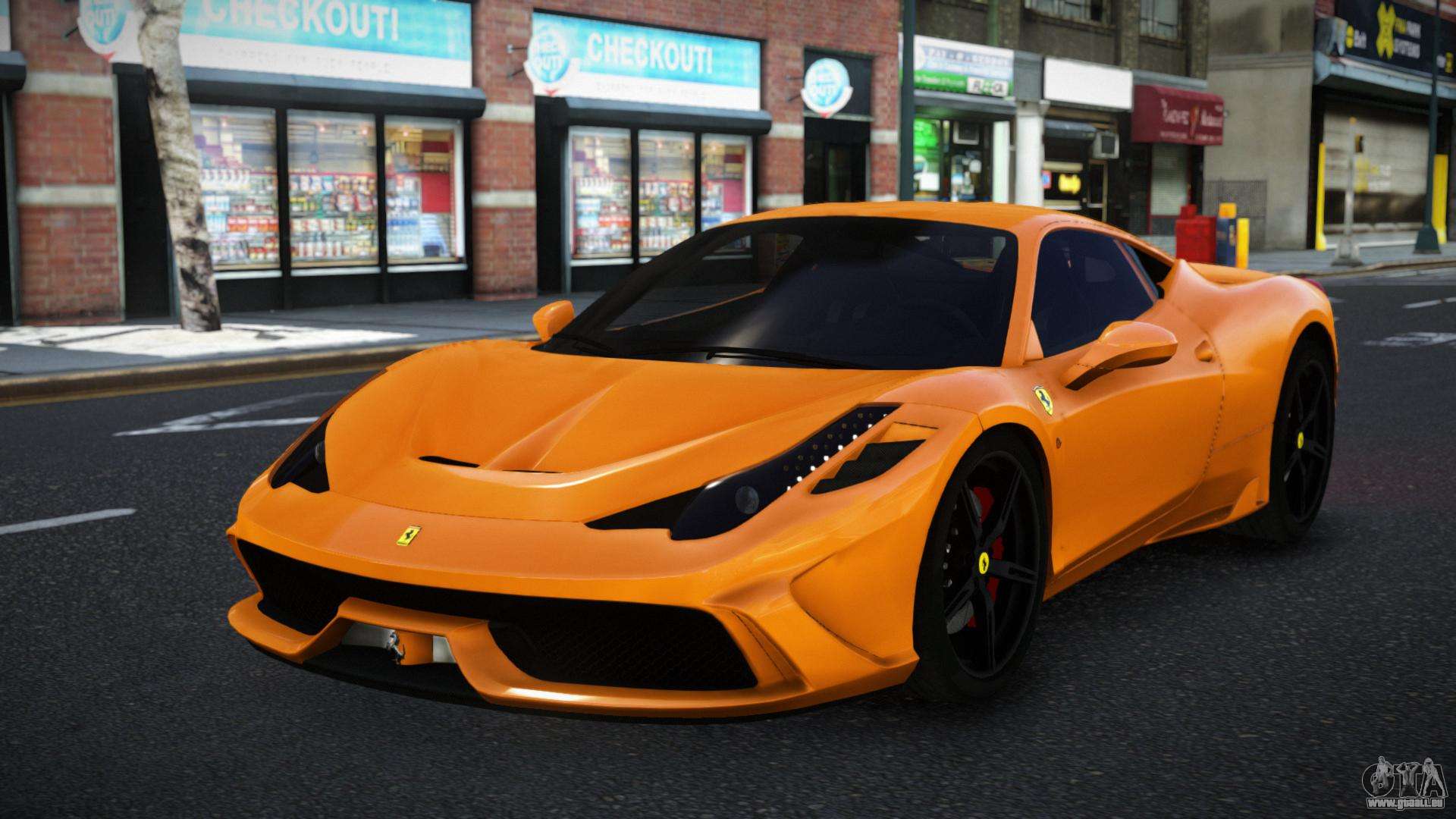 Über die untenstehenden Links können Sie den Ferrari 458 Doroqezeq Auto-Mod für GTA 4 kostenlos herunterladen. Standardmäßig ersetzt der Mod das Auto automatisch durch einen Turismo. Mit Hilfe unseres Installateurs können Sie das Auto durch ein anderes Standardfahrzeug ersetzen.