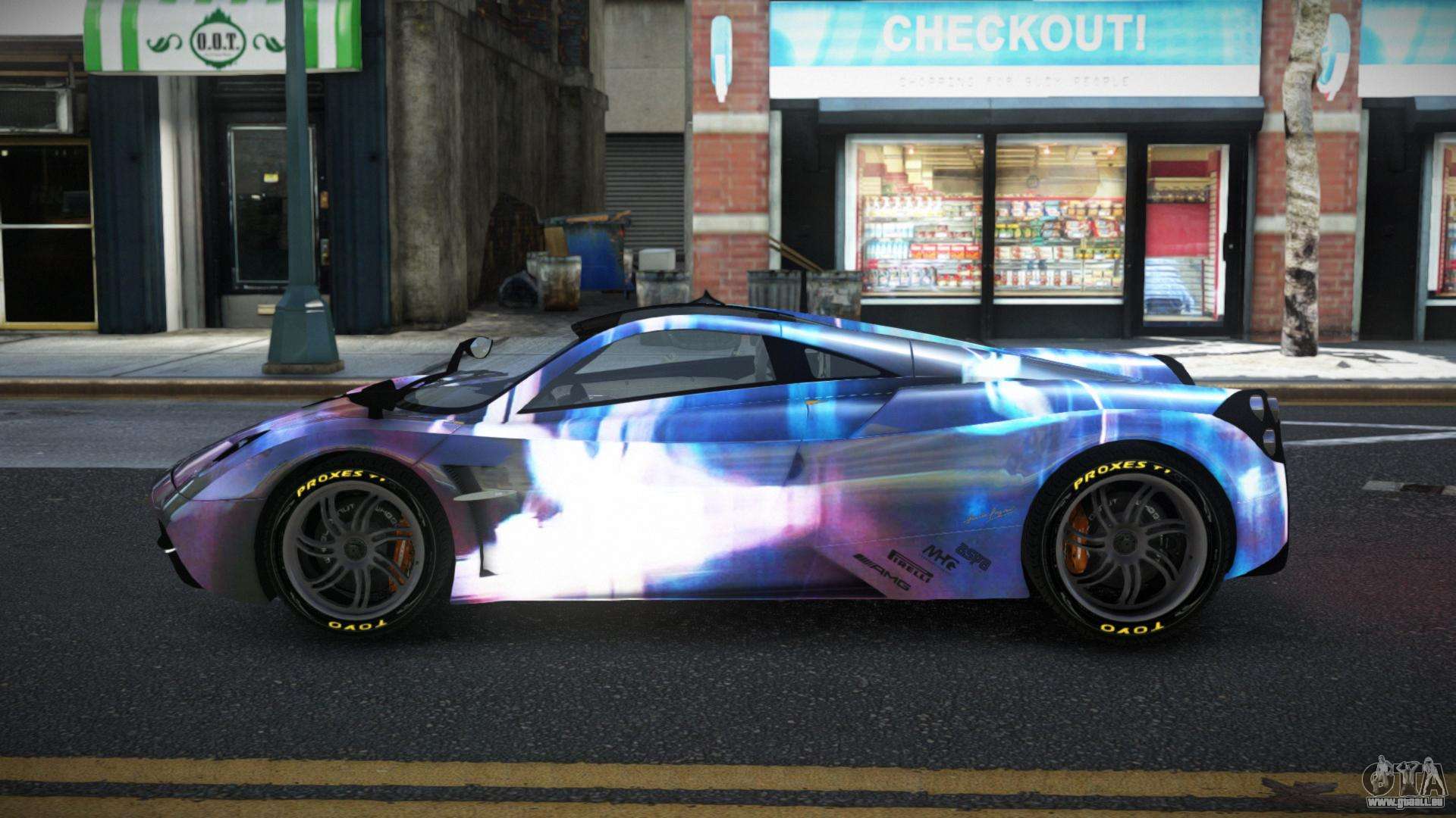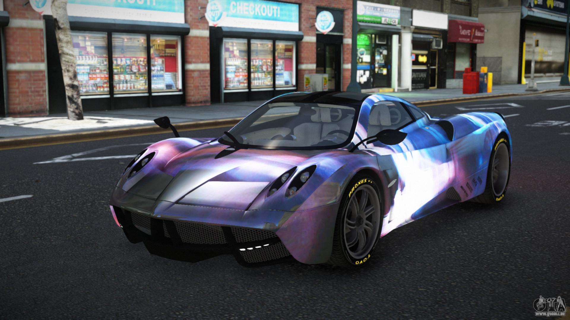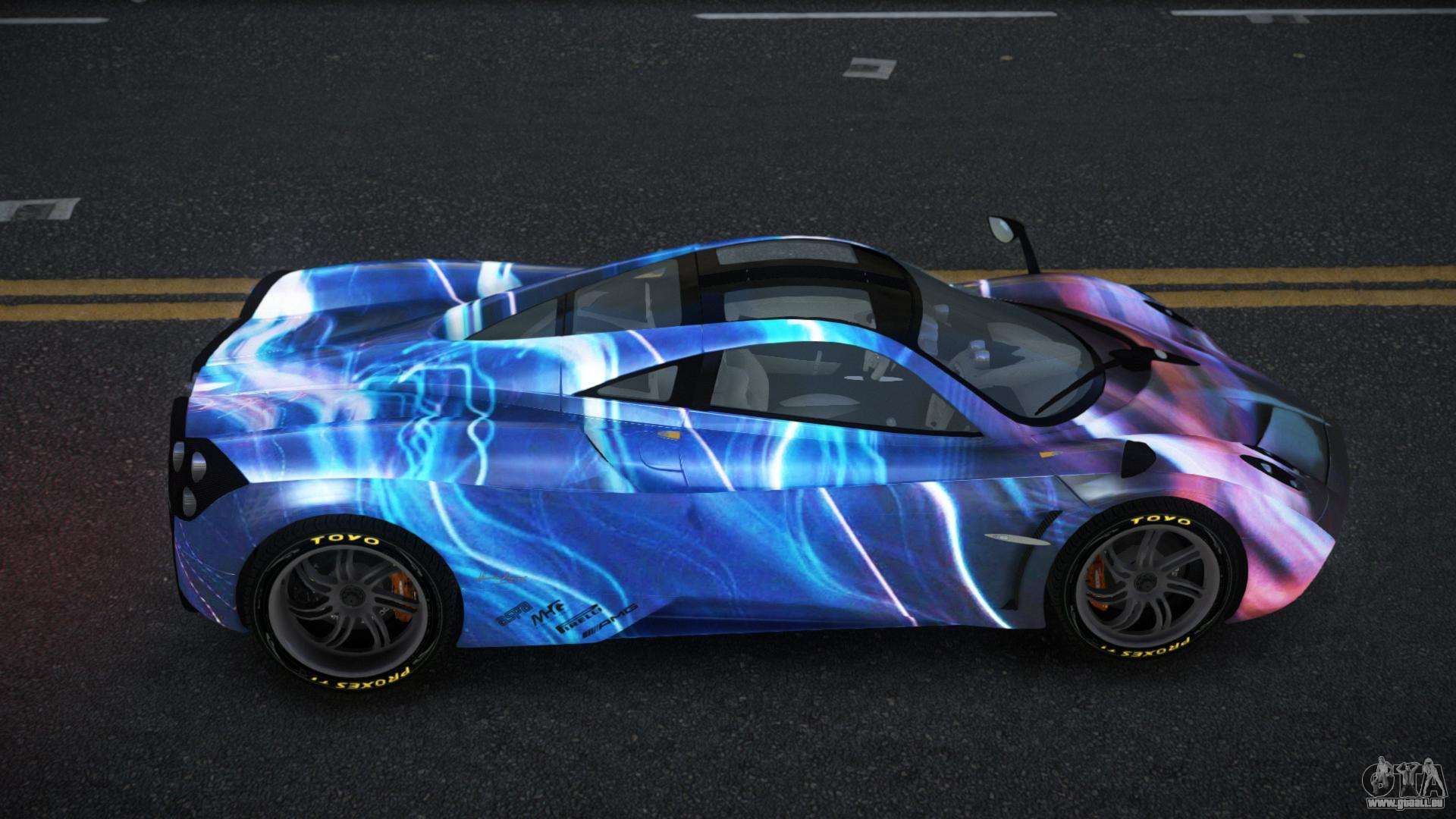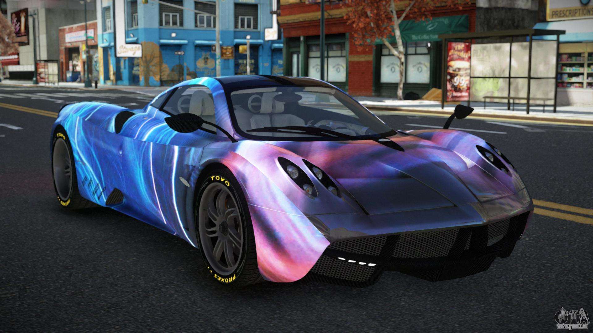Der Pagani Huayra Ganso S13 Mod für GTA 4 kann unten über die Links heruntergeladen werden. Die Modifikation wird standardmäßig automatisch installiert, um den Banshee zu ersetzen, und mit Hilfe unseres Installateurs kannst du sie auch durch jedes Standard-Spielfahrzeug ersetzen.