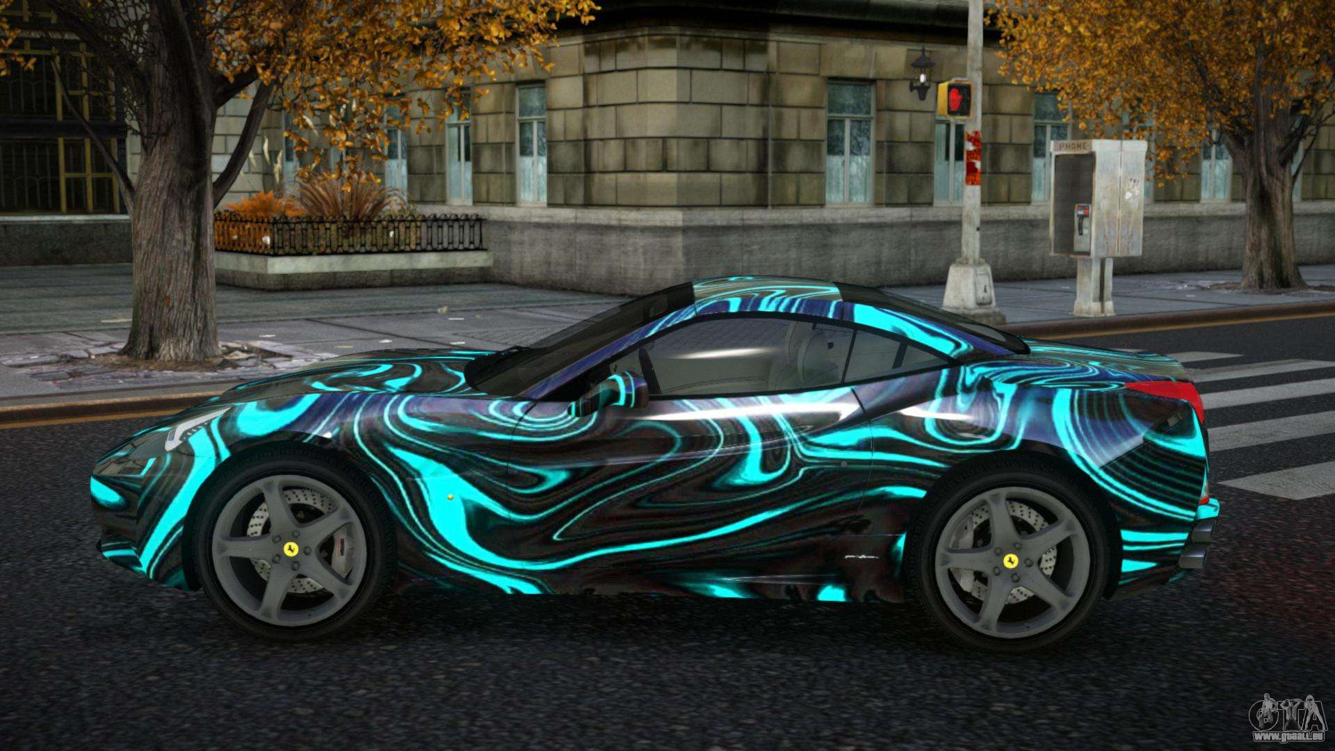 Über die untenstehenden Links können Sie den Ferrari California Zietay S10 Auto-Mod für GTA 4 kostenlos herunterladen. Standardmäßig ersetzt der Mod das Auto automatisch durch eine Banshee. Mit Hilfe unseres Installateurs können Sie das Auto durch ein anderes Standardfahrzeug ersetzen.