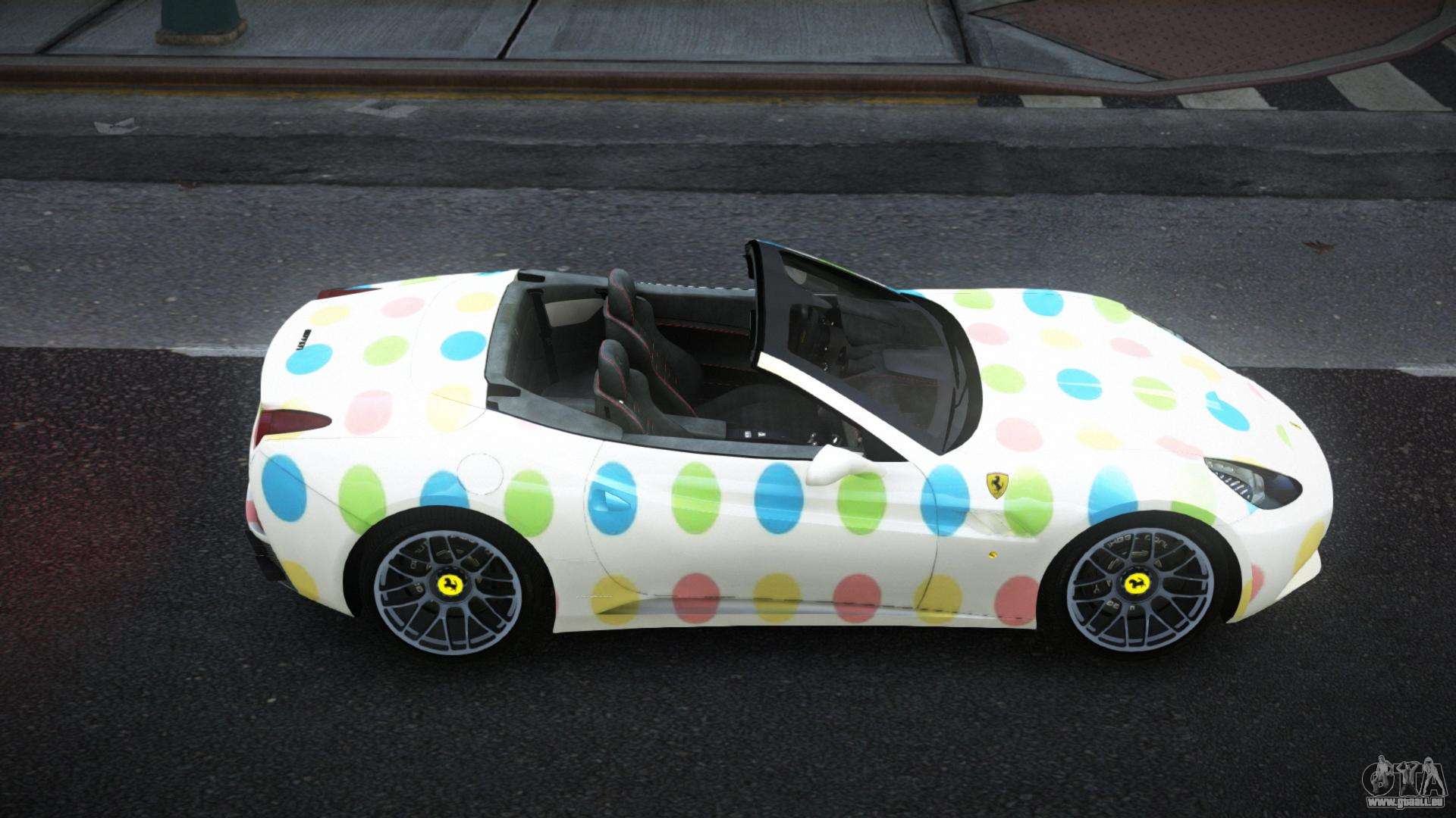 Hallo zusammen! Richten Sie Ihren Blick auf den wunderschön gestalteten Ferrari California Cabendy S12 Mod für GTA 4. Ein hochwertiges Auto wird den Autofluss diversifizieren und deinem Spiel mehr Schwung verleihen.