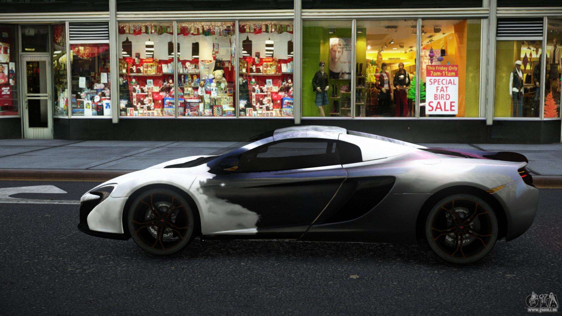 Du kannst den Mod für McLaren 650S Anvax S5 für GTA 4 kostenlos herunterladen, indem du auf den untenstehenden Link klickst. Automatische Installation, standardmäßig zum Ersatz des Banshee, oder mit Hilfe des Installers kannst du jedes andere Standardauto aus dem Spiel wählen.