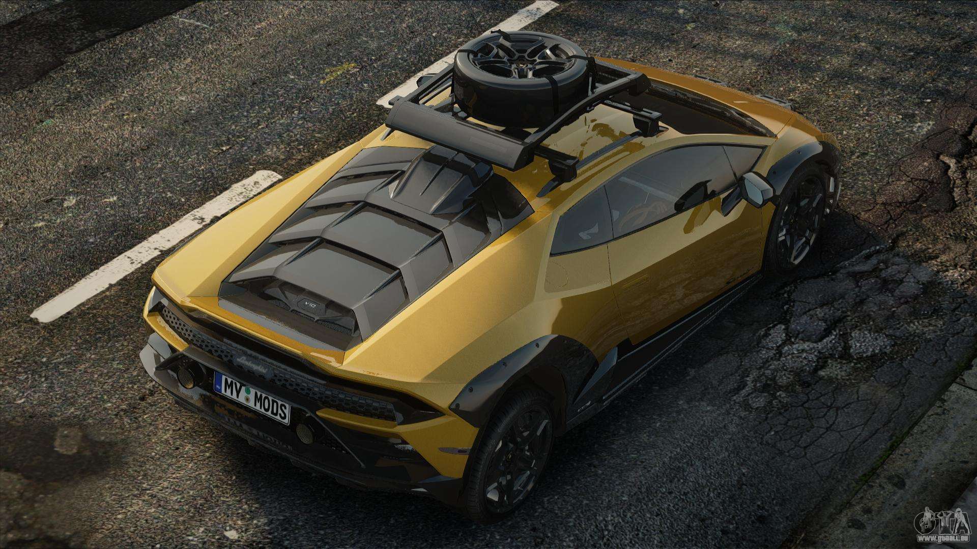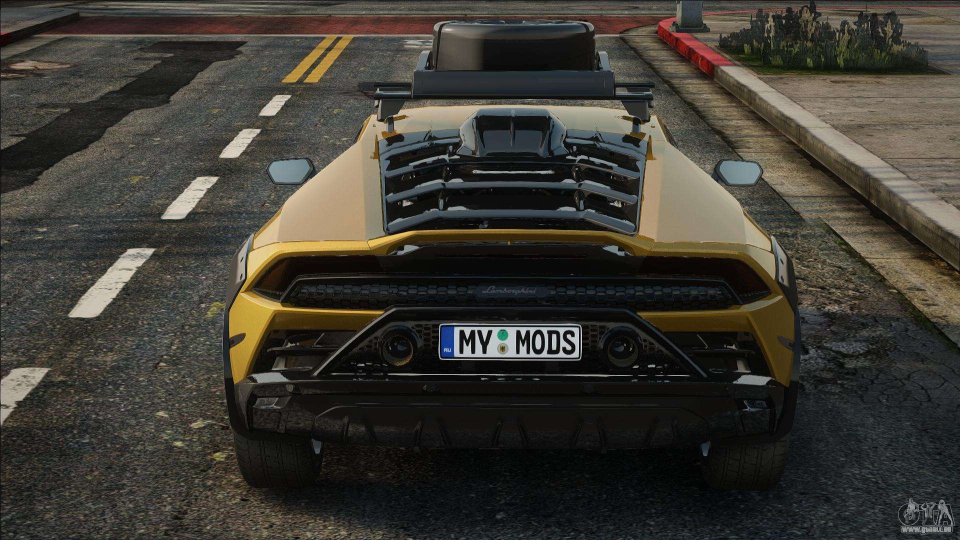 Qualitätsauto - 2021 Lamborghini Huracan Sterrato für GTA San Andreas. Die Karosserie und das Interieur des Modells sind gut detailliert. Das Auto passt perfekt ins Spiel!