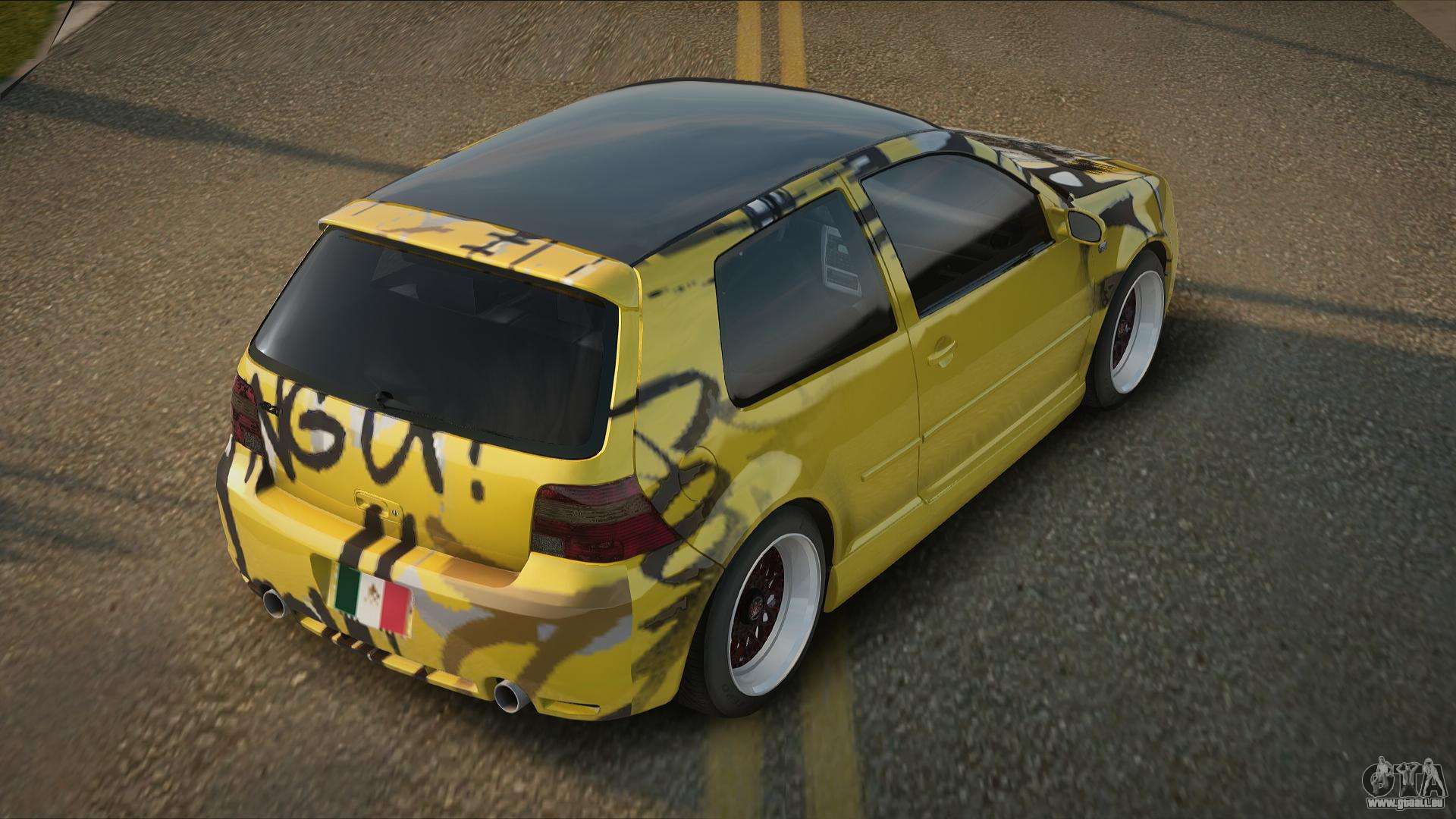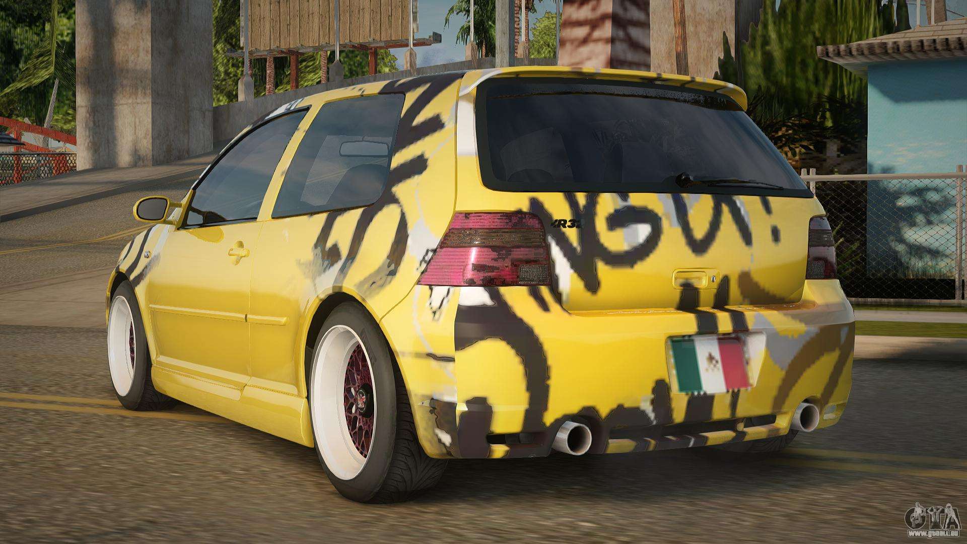 Sie können den Volkswagen Golf R32 Yellow Car Mod für GTA San Andreas kostenlos herunterladen, indem Sie auf den unten stehenden Link klicken. Automatische Installation, standardmäßig um Hermes zu ersetzen, oder mit Hilfe des Installers können Sie ein beliebiges anderes Standardauto aus dem Spiel auswählen.
