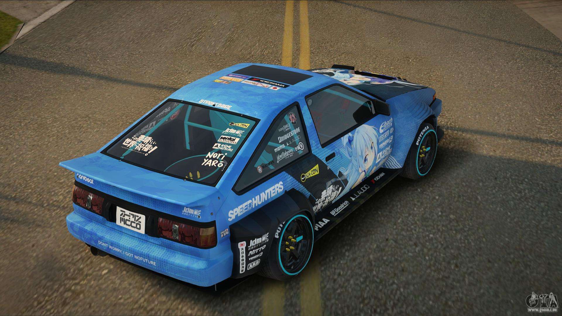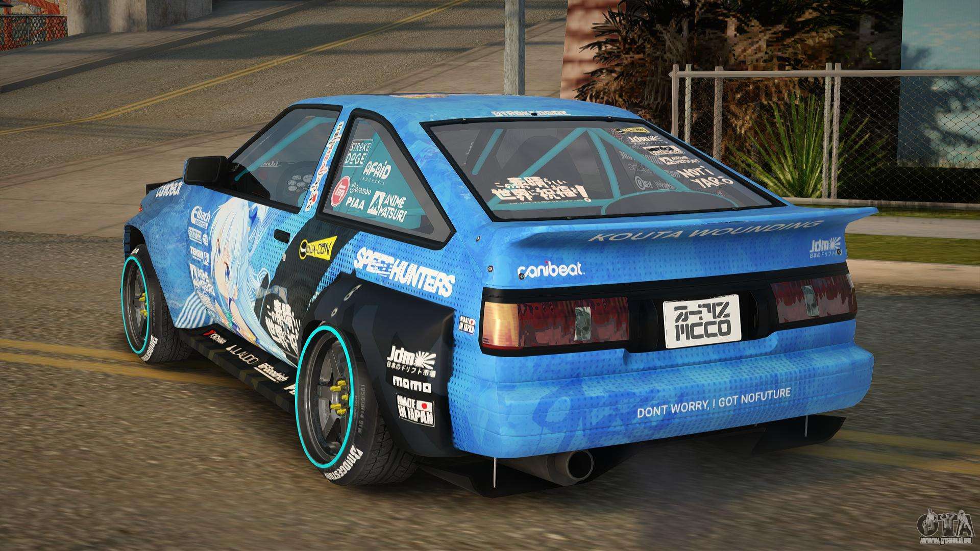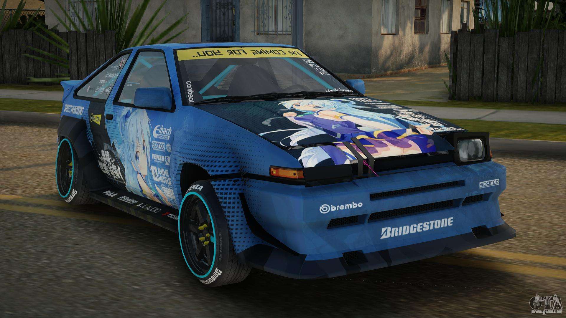 Das ist es, was Sie brauchen! Folgen Sie den untenstehenden Links, um den Toyota AE86 Audria Mod für GTA San Andreas kostenlos herunterzuladen. Die Standardinstallation besteht darin, Blista Compact zu ersetzen, oder mit Hilfe desselben Installationsprogramms können Sie es durch einen beliebigen Standardtransport ersetzen.